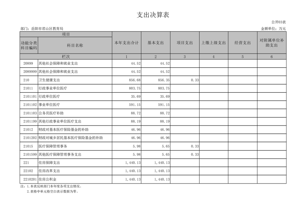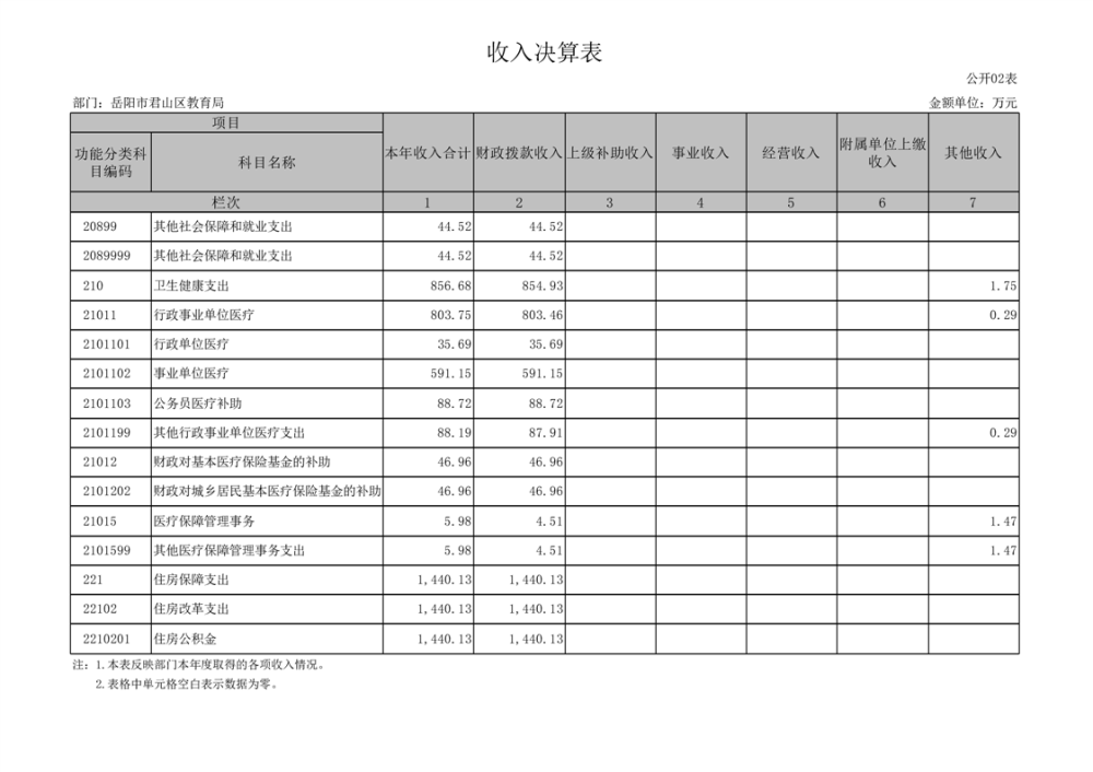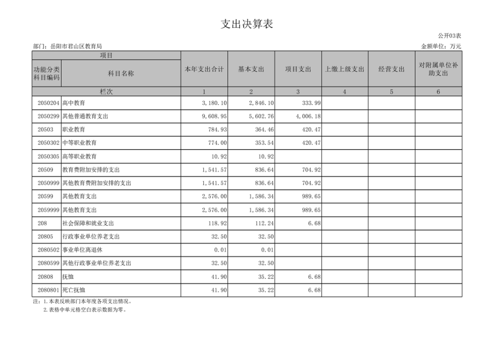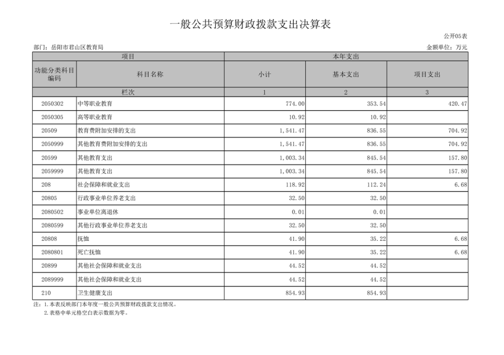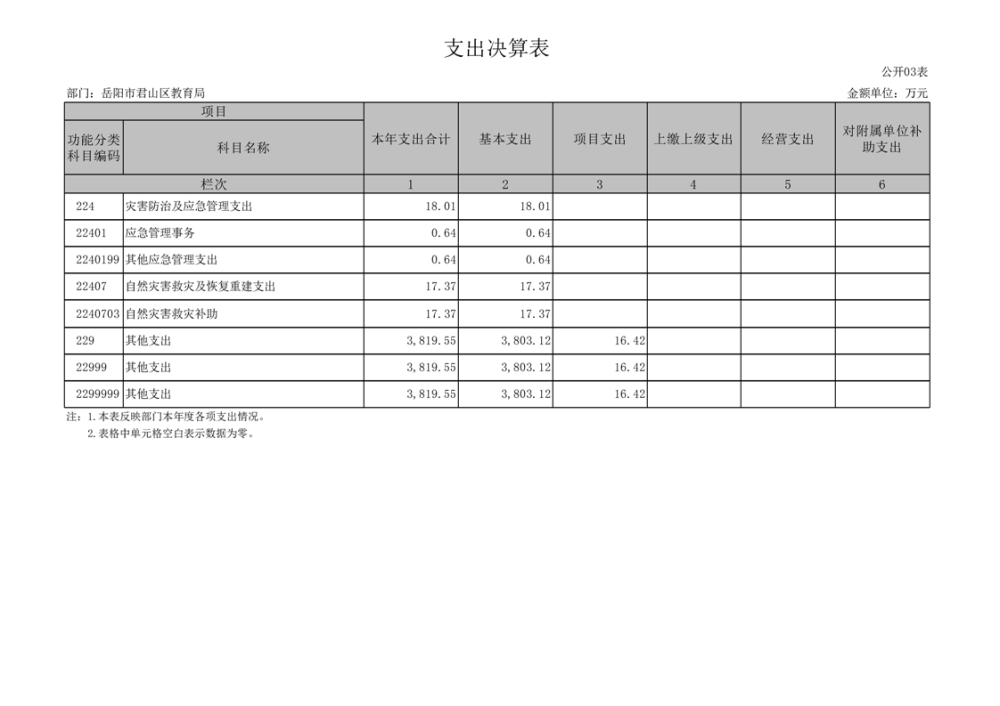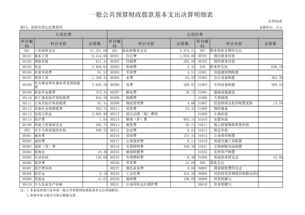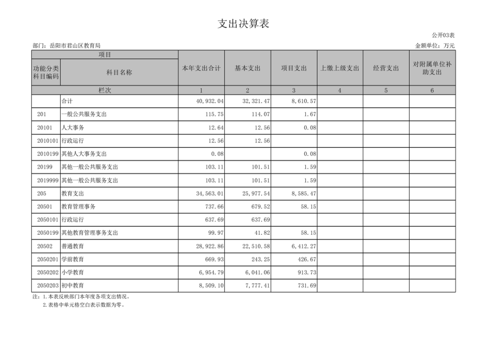 2024年度岳阳市君山区教育局(汇总)部门决算公开