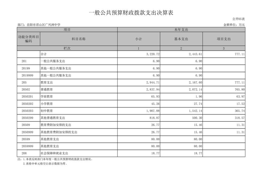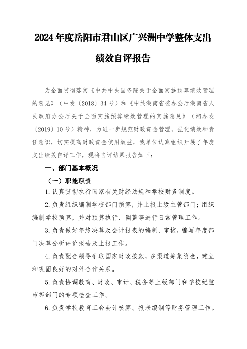 2024年度岳阳市君山区广兴洲中学部门决算公开