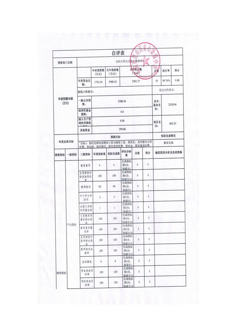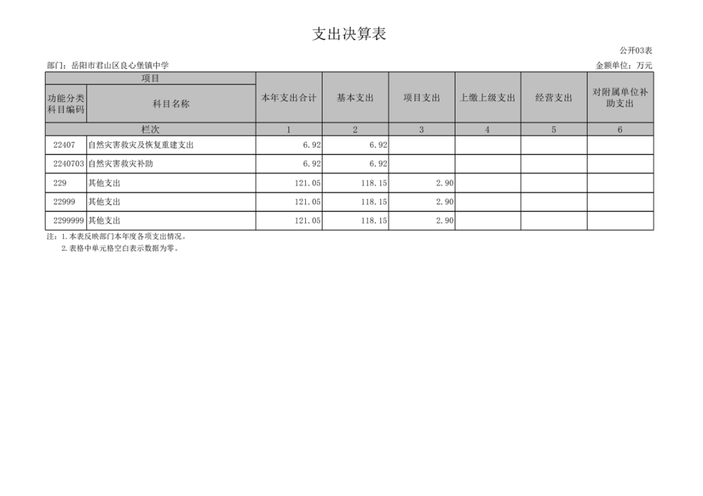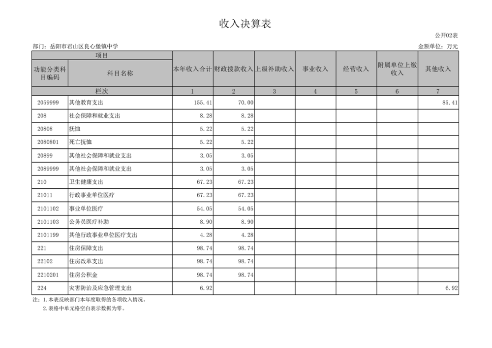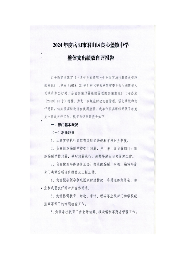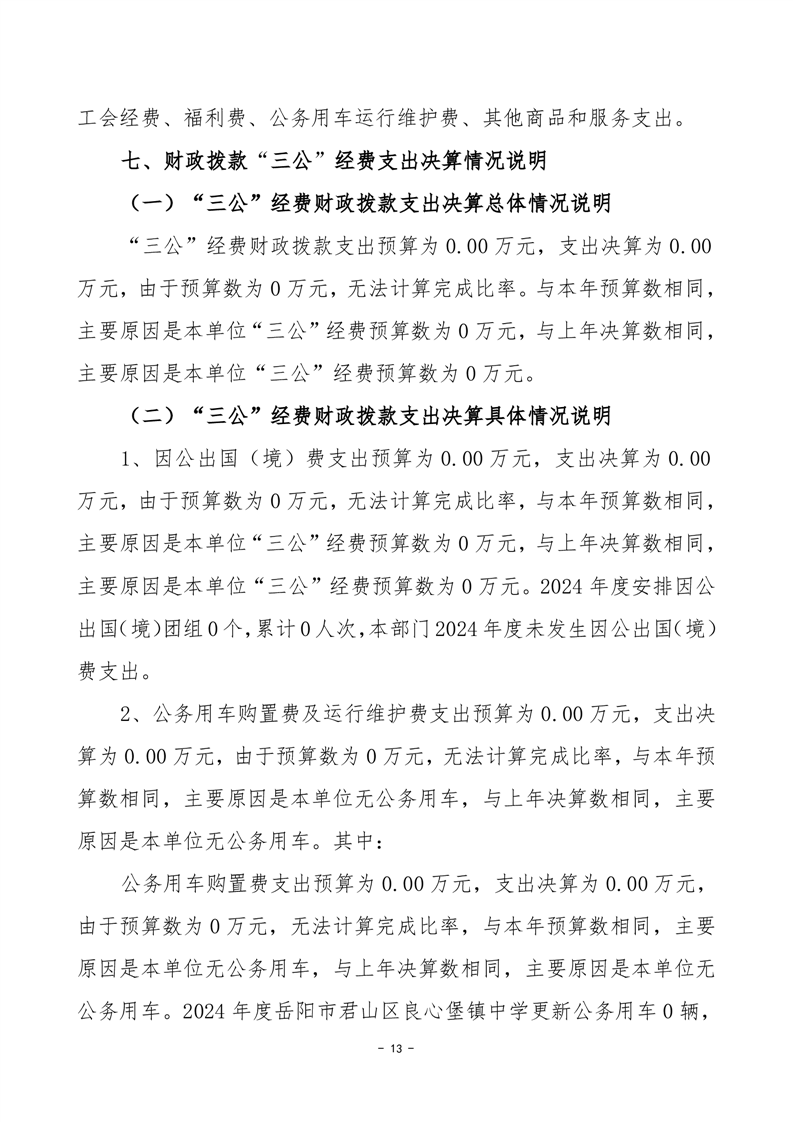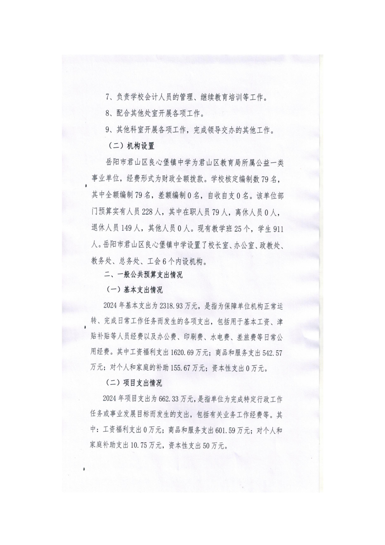 2024年度岳阳市君山区良心堡镇中学部门决算公开