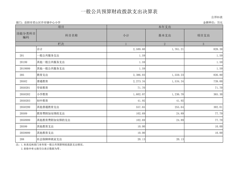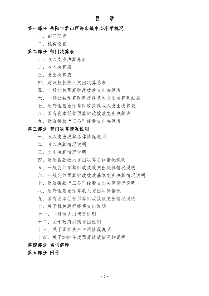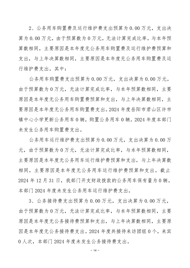 2024年度岳阳市君山区许市镇中心小学部门决算公开