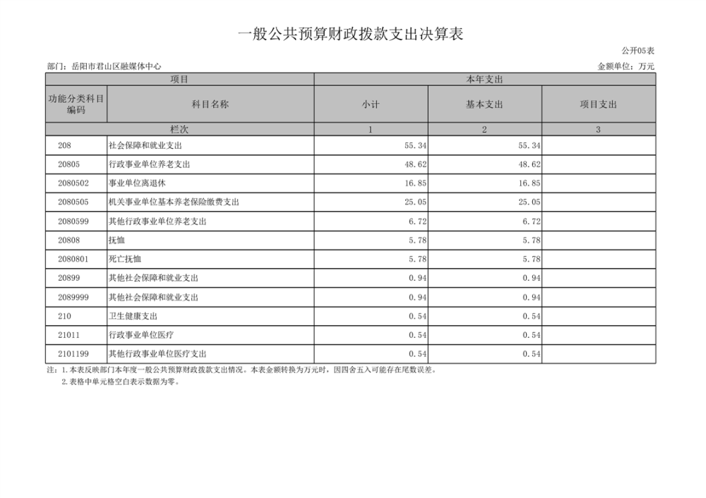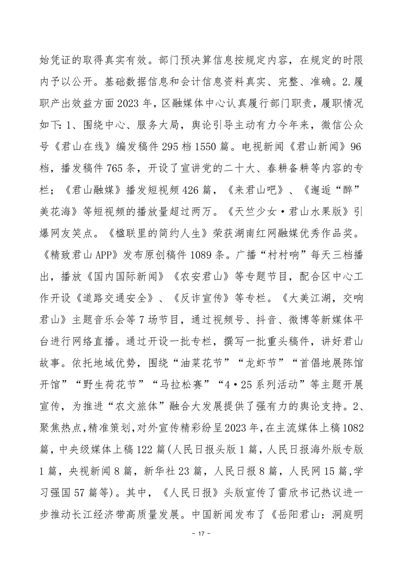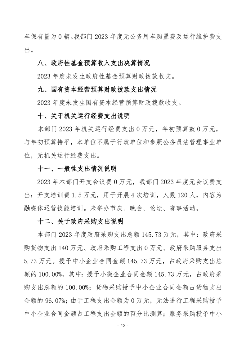 2023年度岳阳市君山区融媒体中心部门决算公开