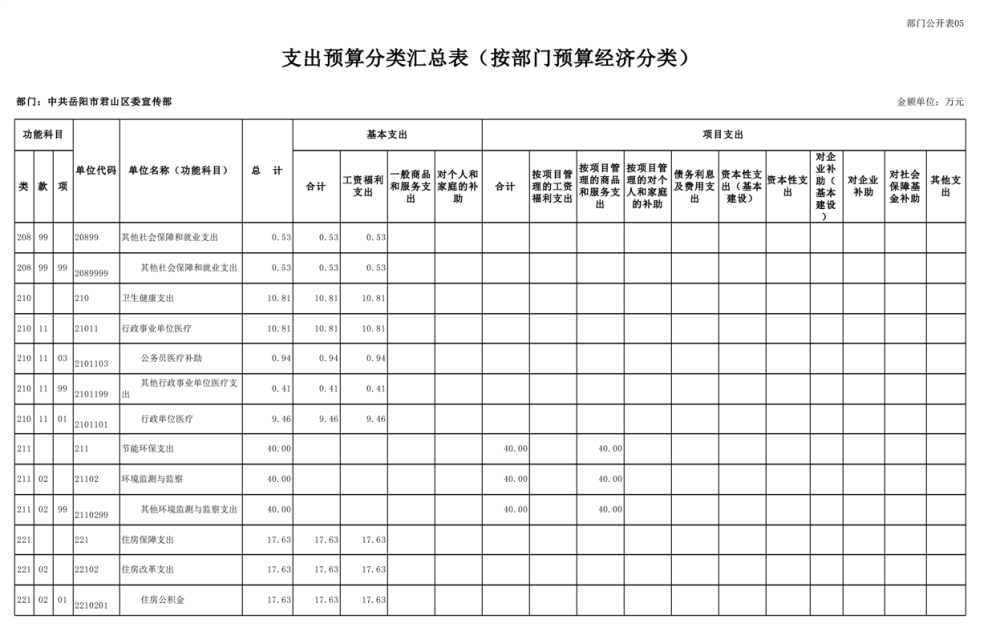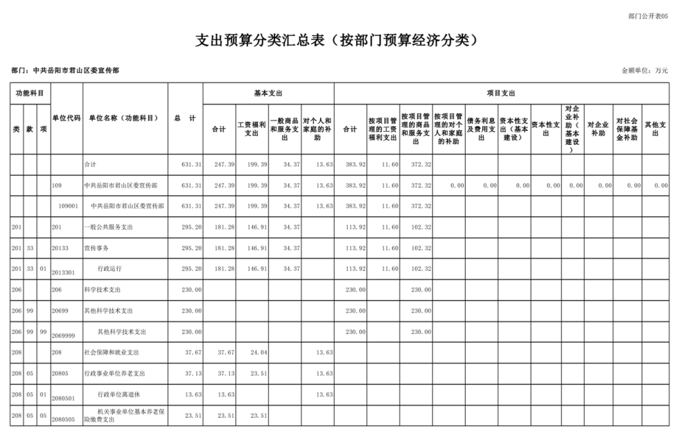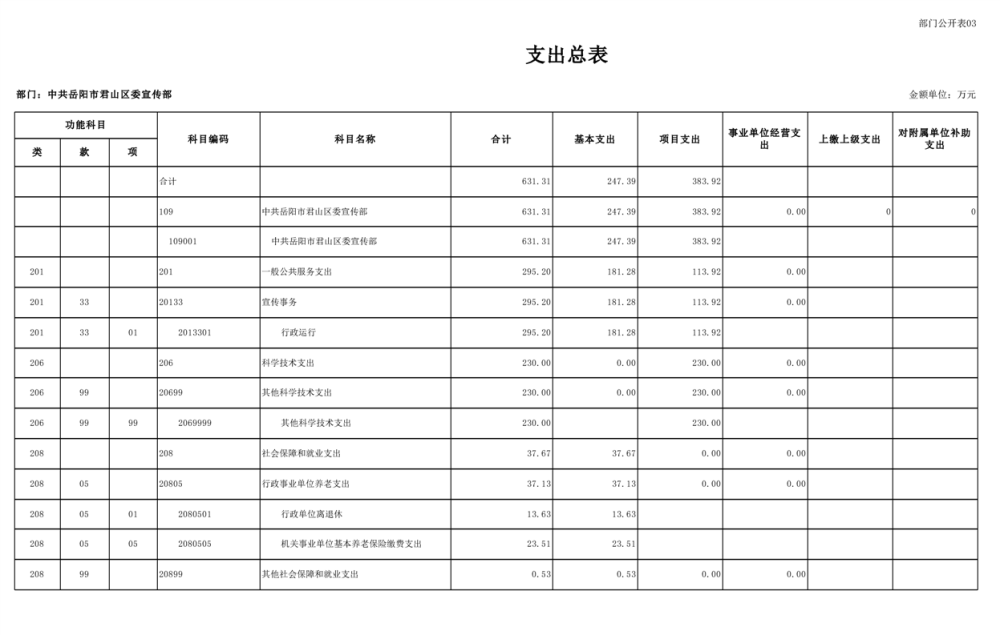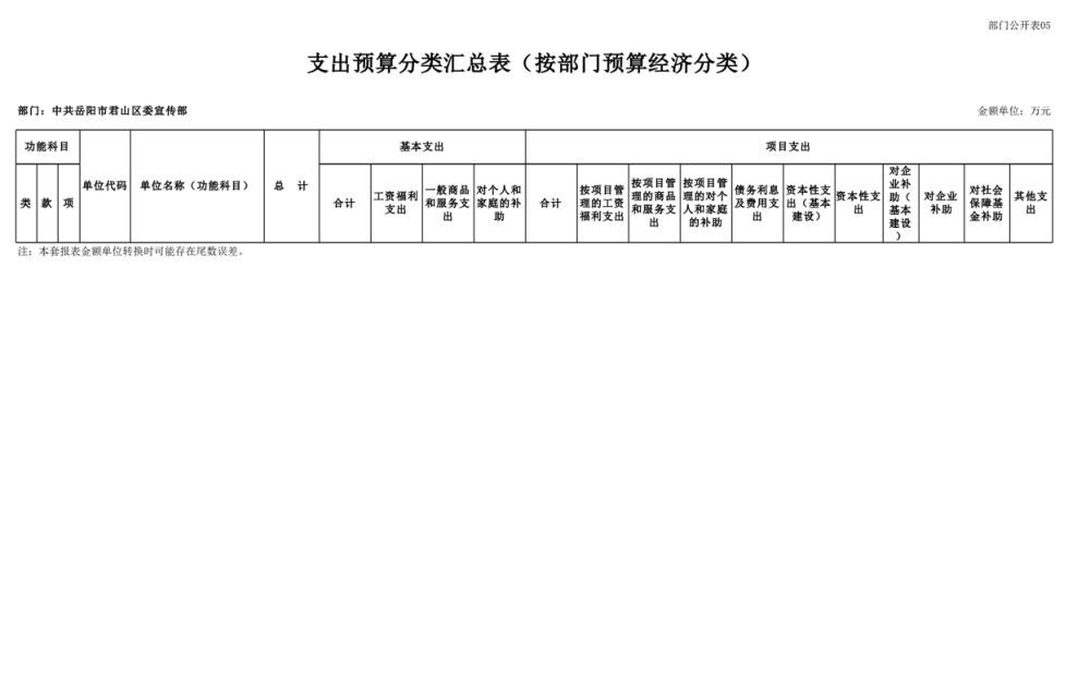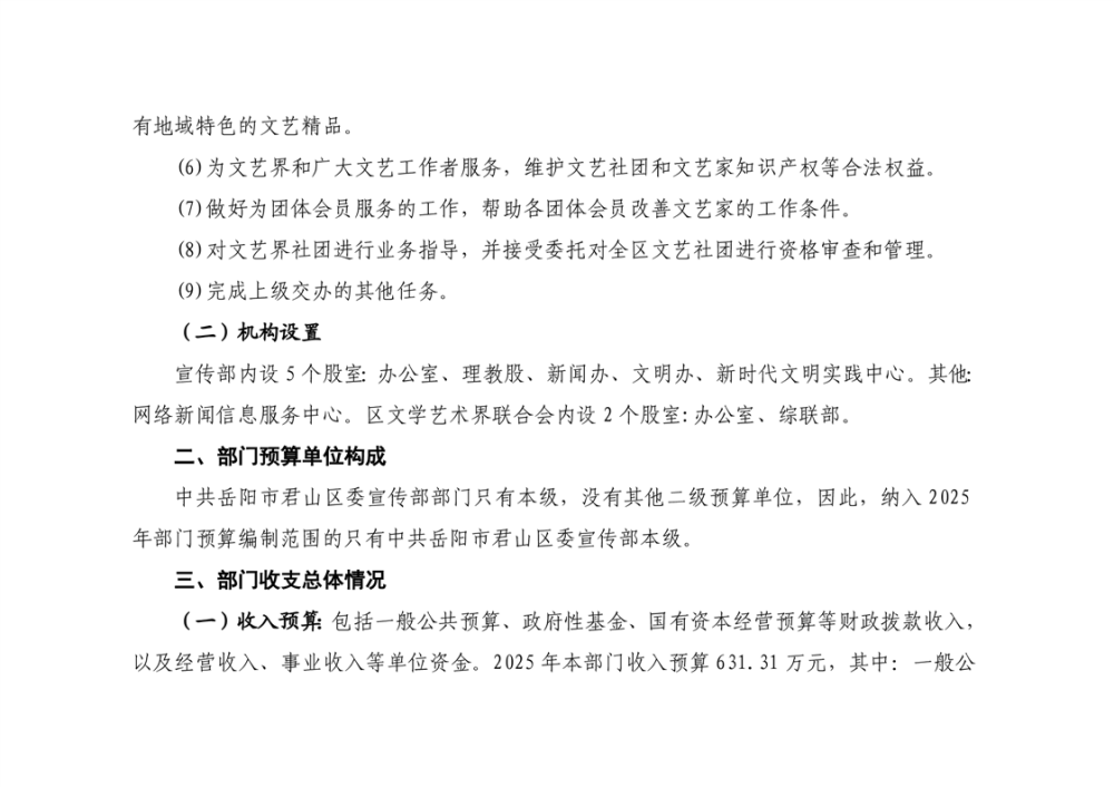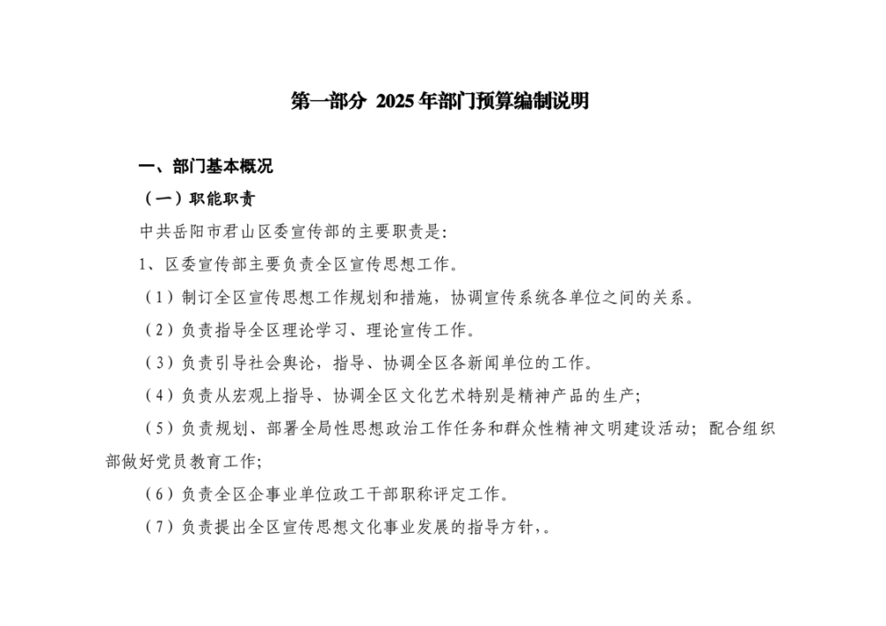 2025年中共岳阳市君山区委宣传部部门预算公开