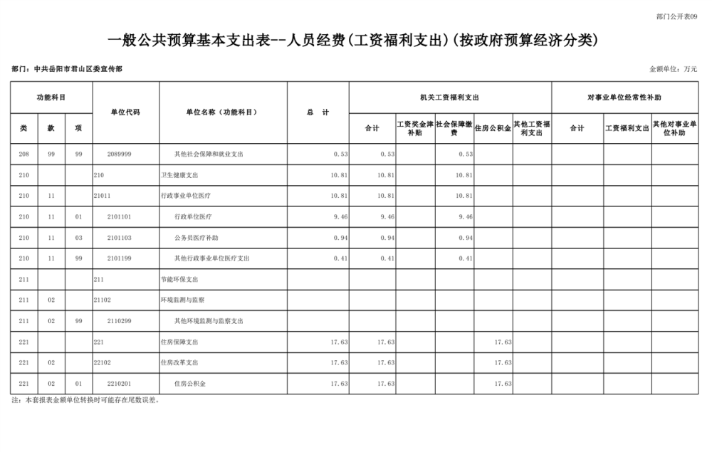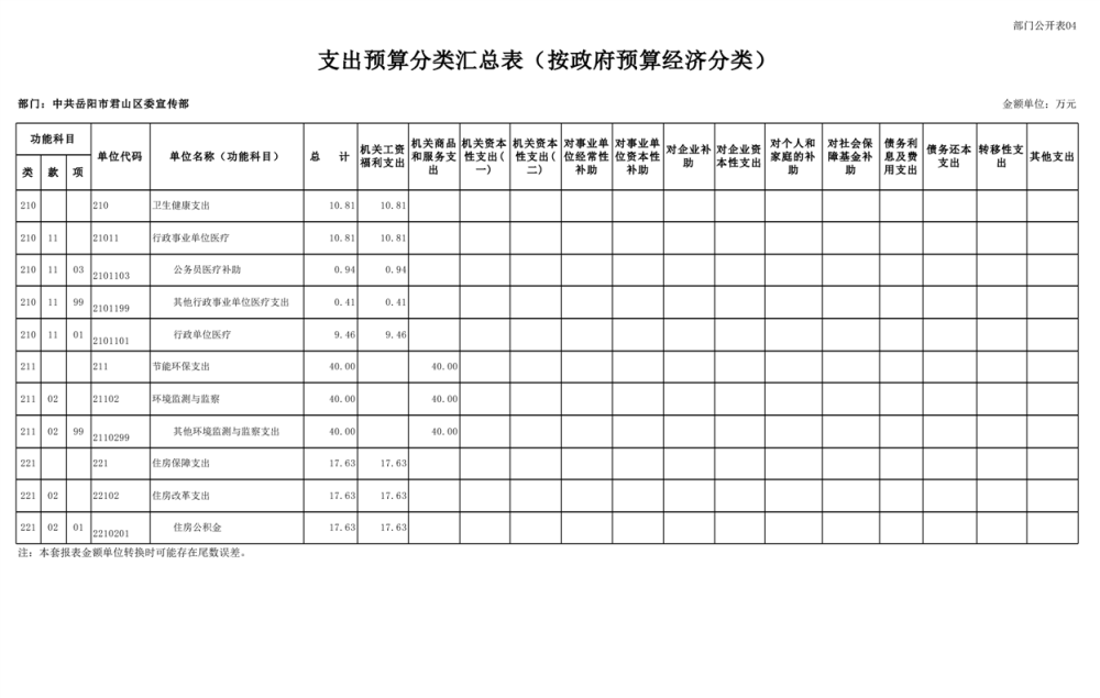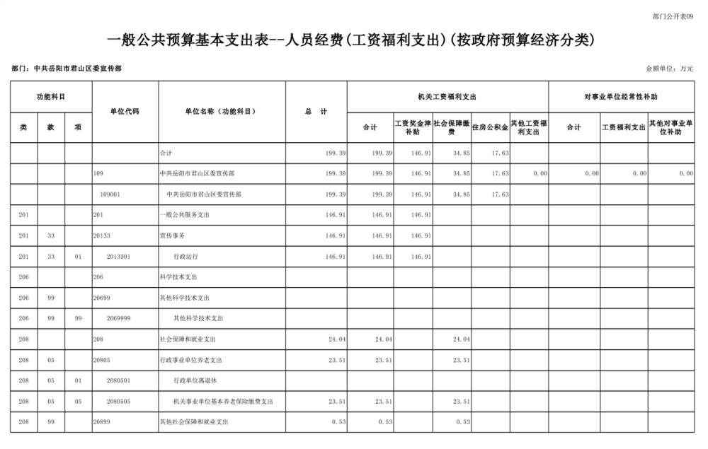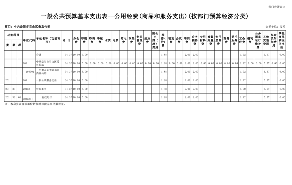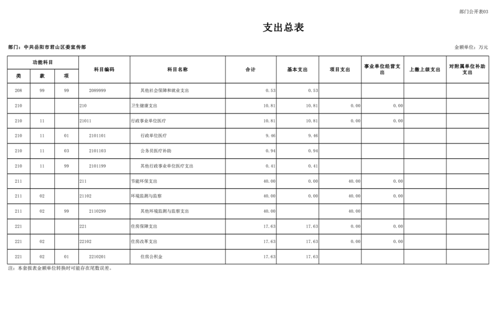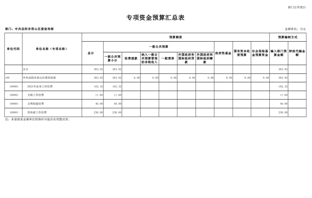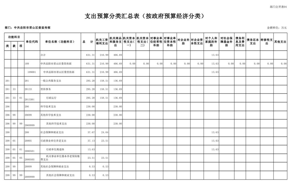 2025年中共岳阳市君山区委宣传部部门预算公开