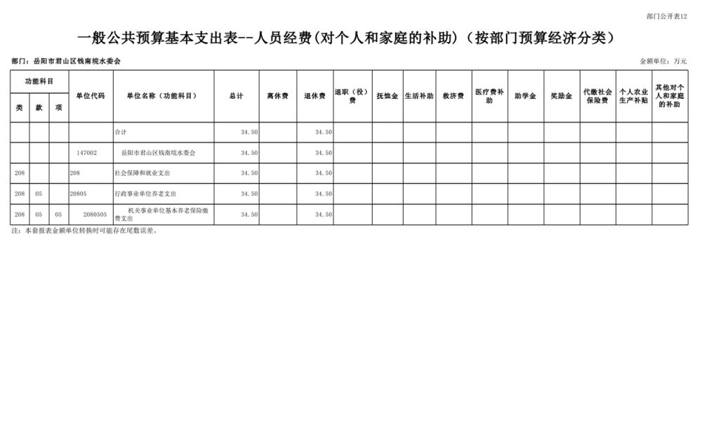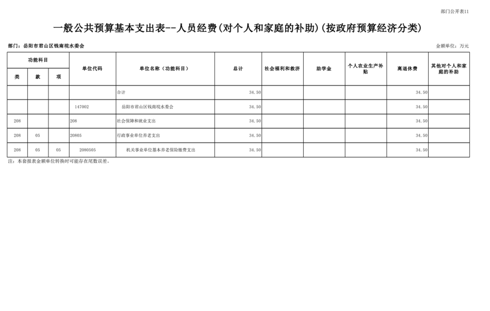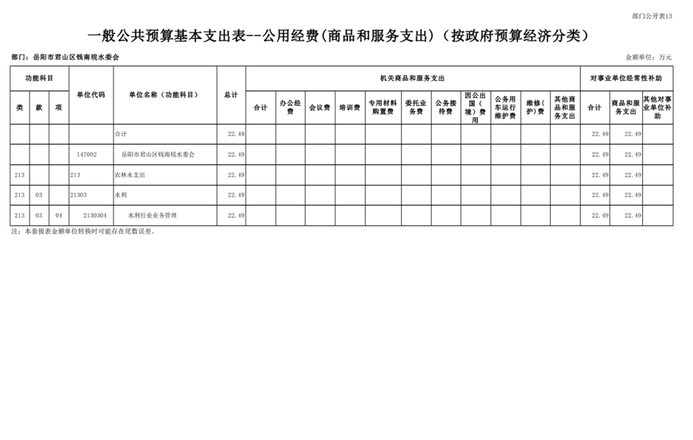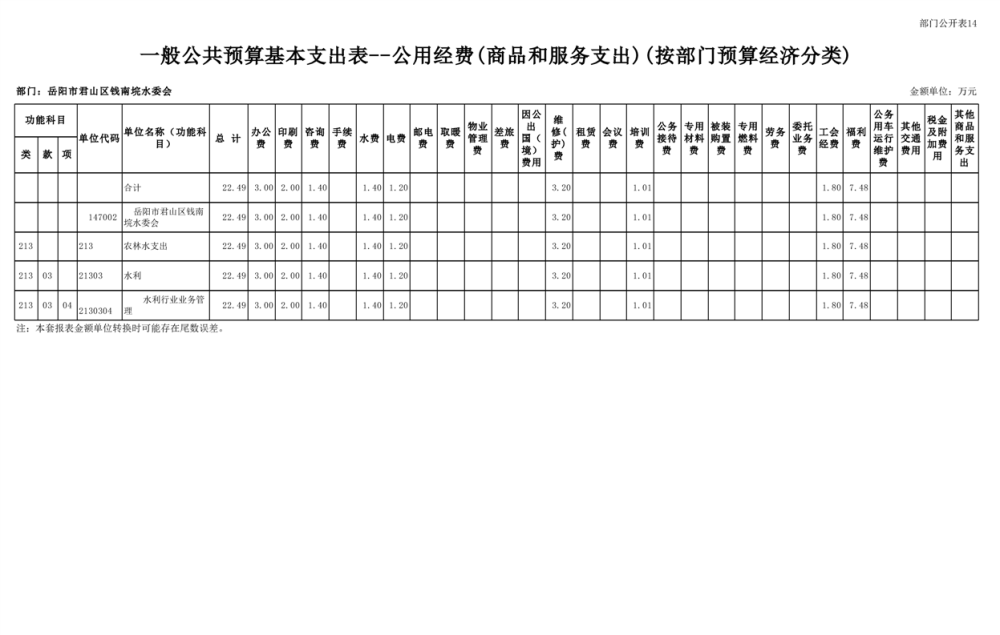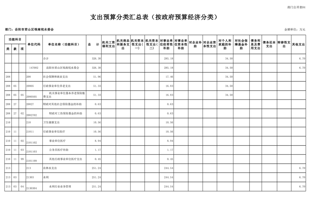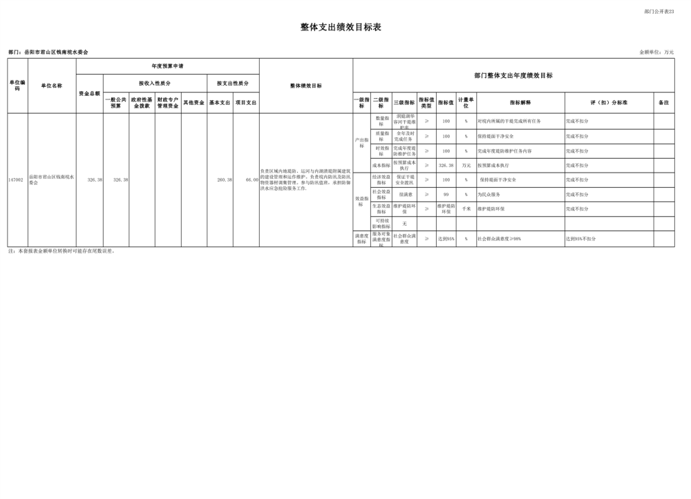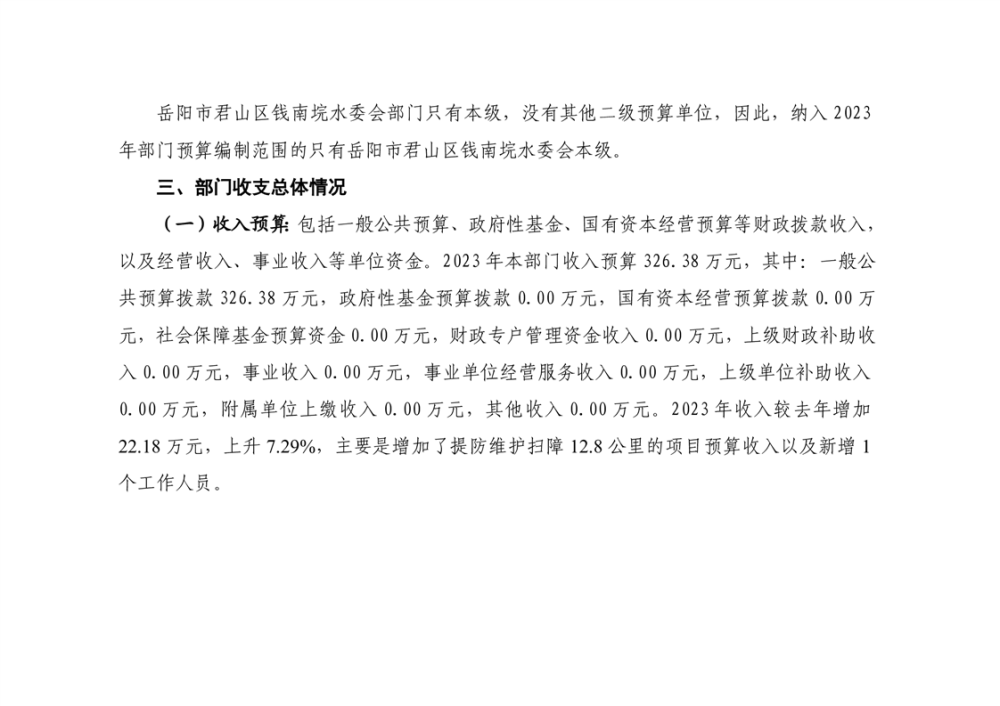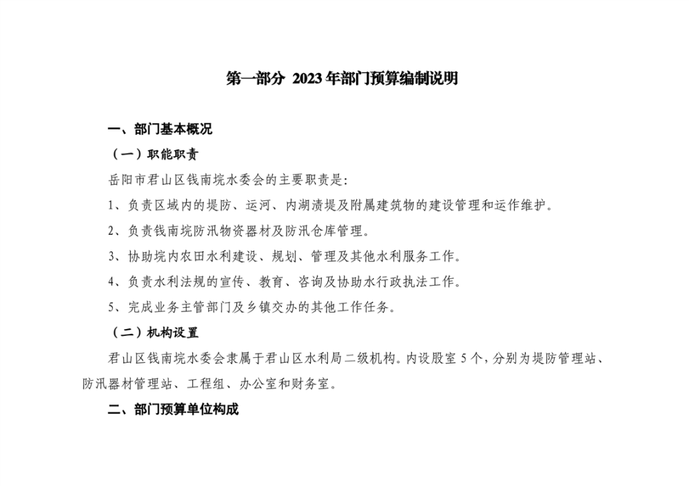 2023年岳阳市君山区钱南垸水委会部门预算公开说明