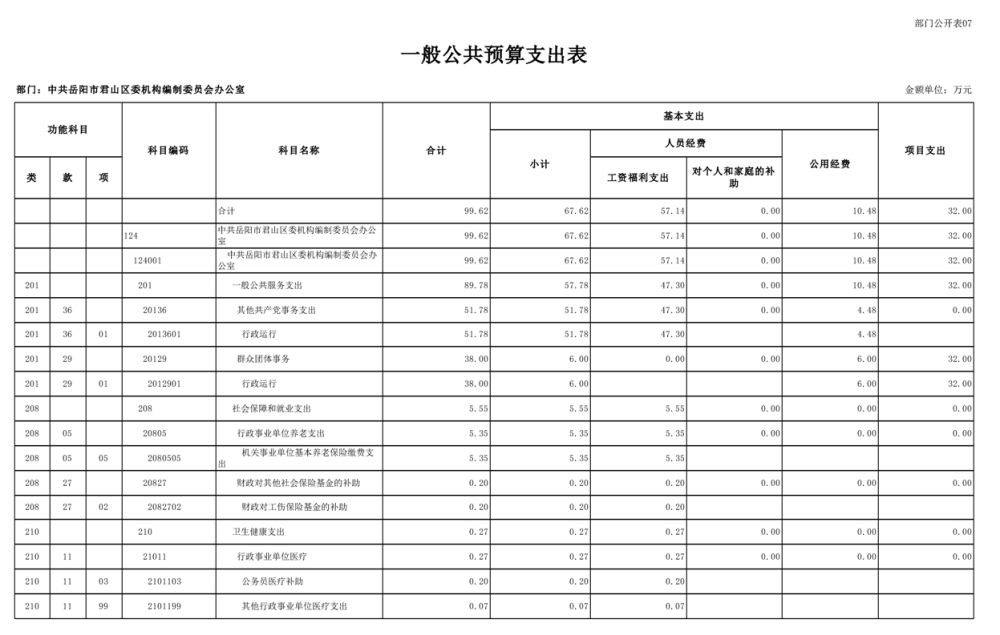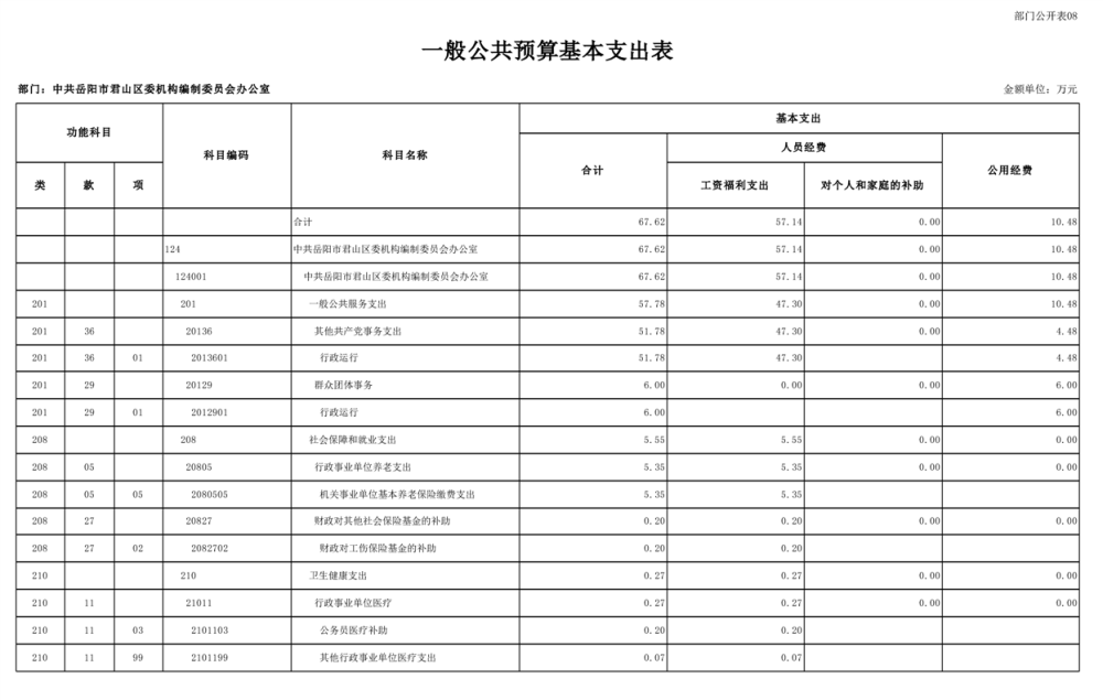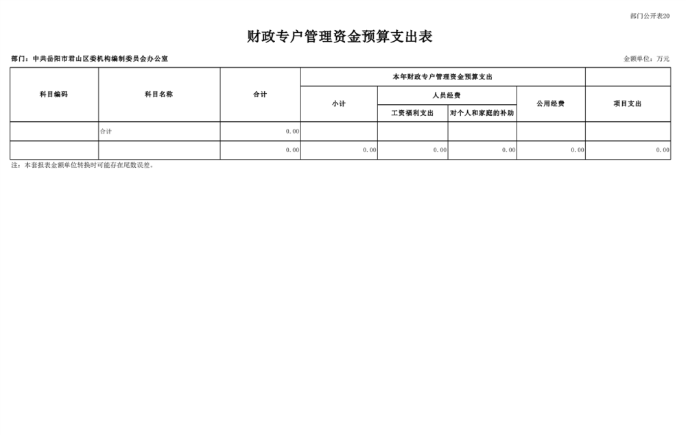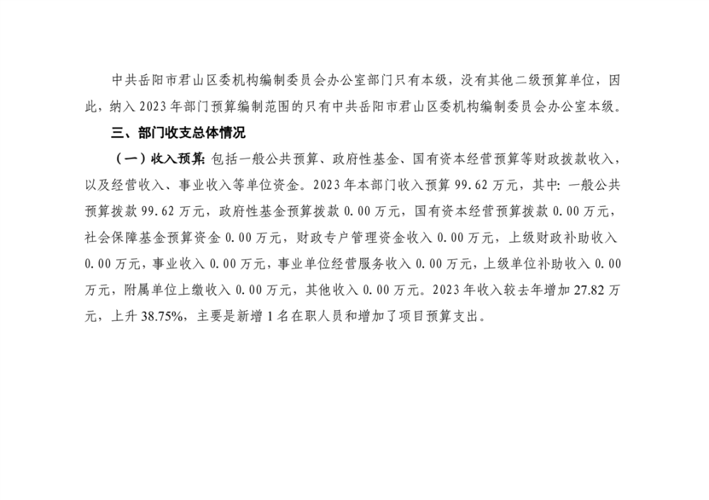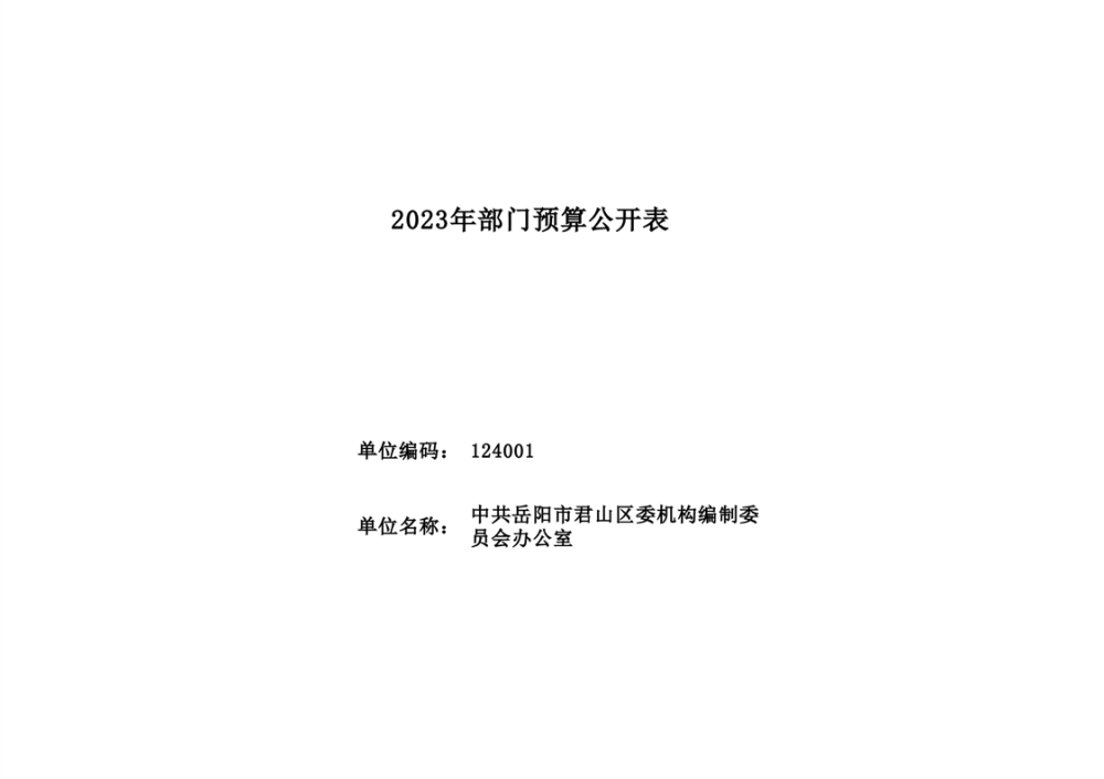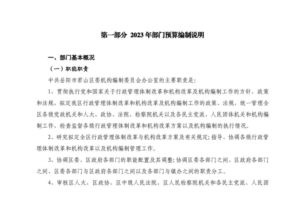 2023年中共岳阳市君山区委机构编制委员会办公室部门预算公开说明