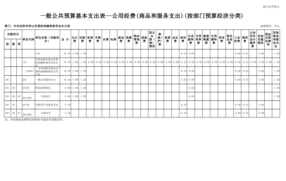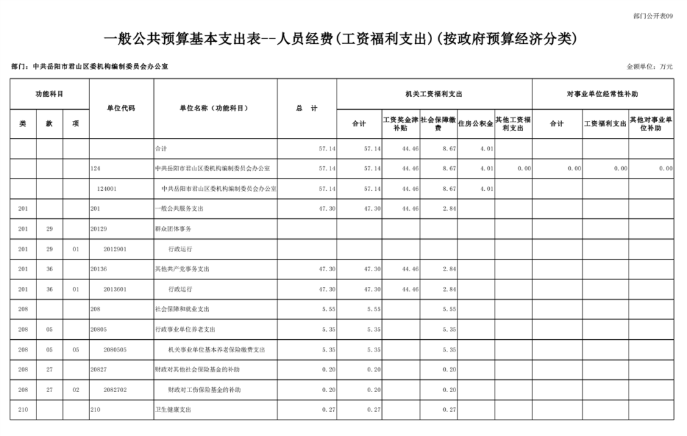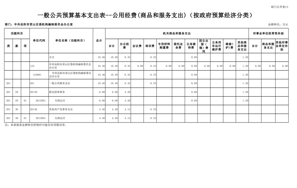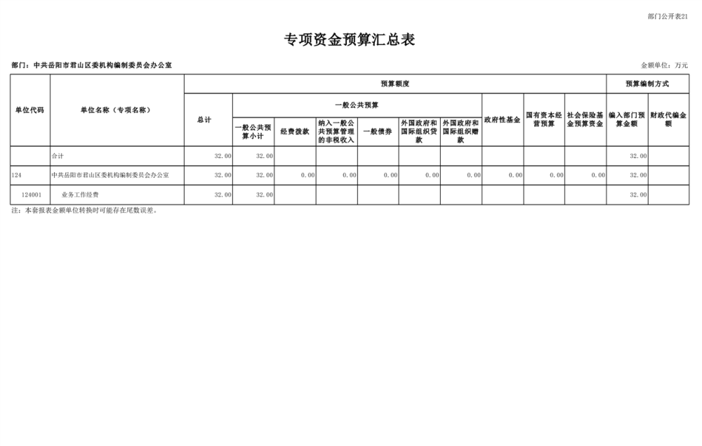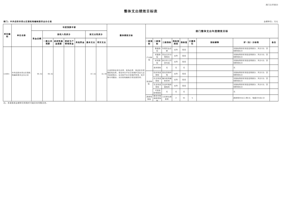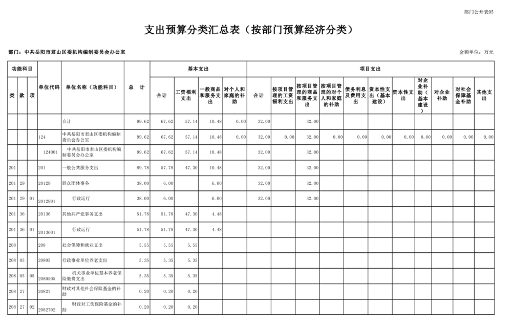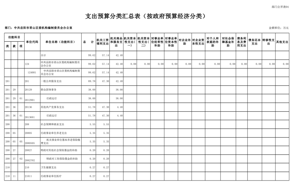 2023年中共岳阳市君山区委机构编制委员会办公室部门预算公开说明