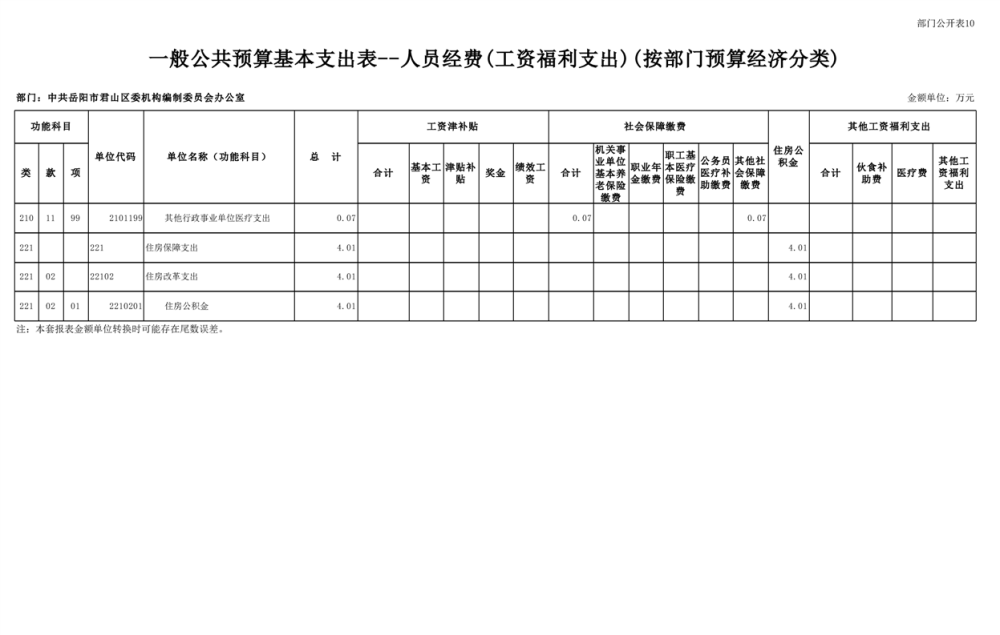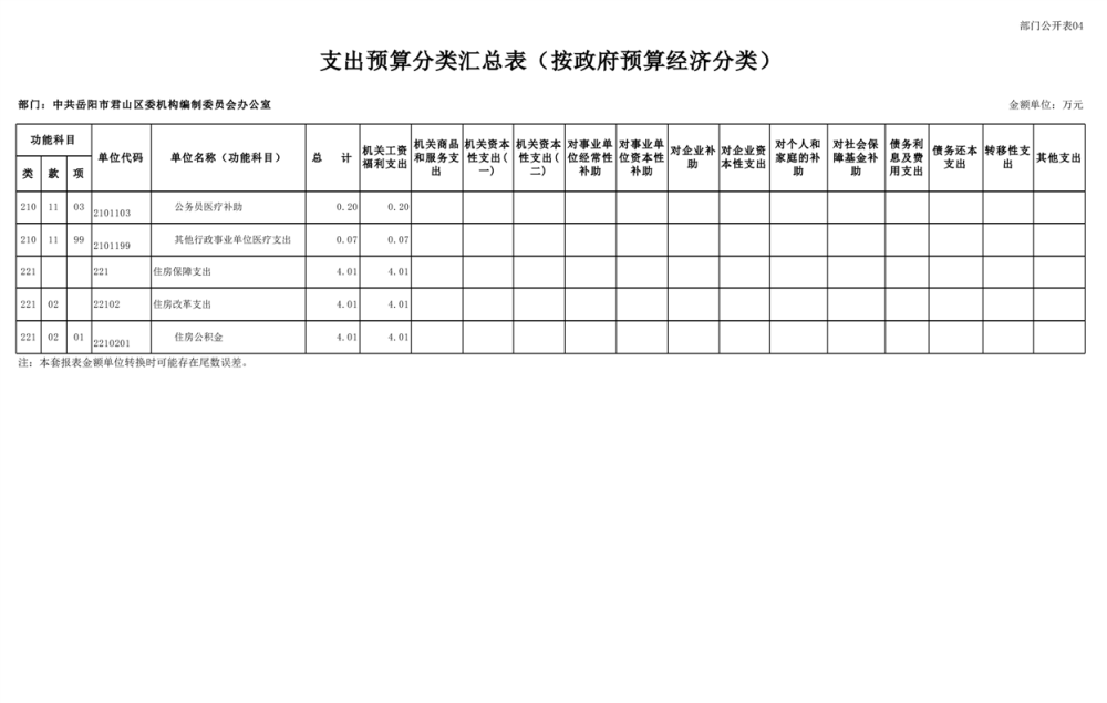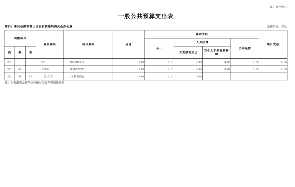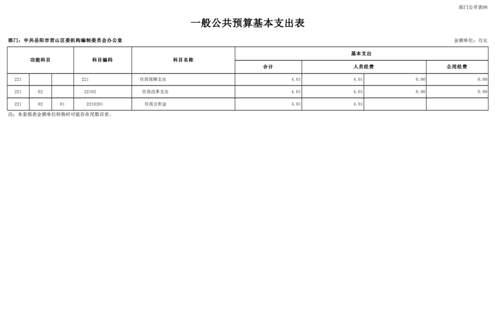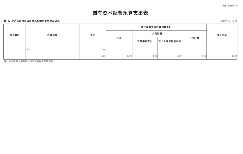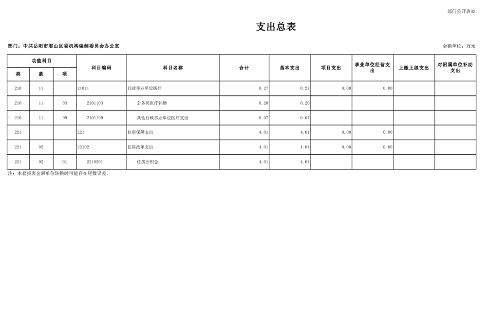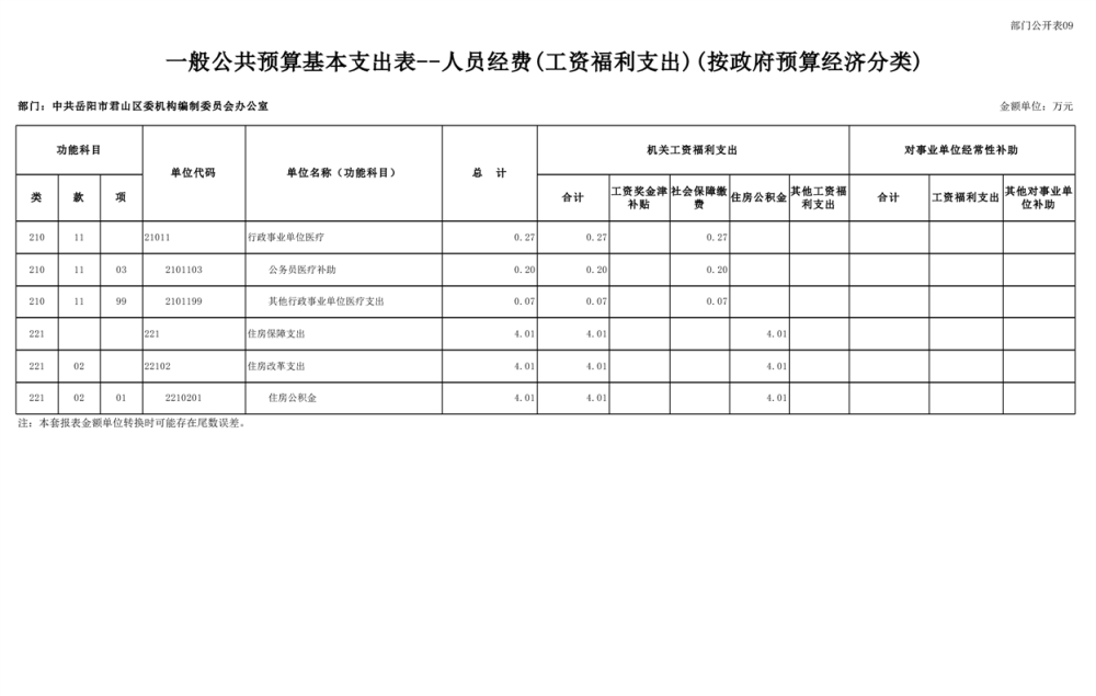 2023年中共岳阳市君山区委机构编制委员会办公室部门预算公开说明