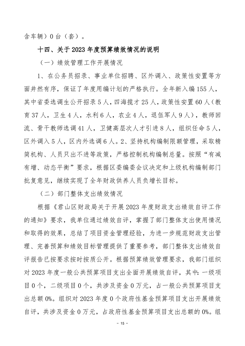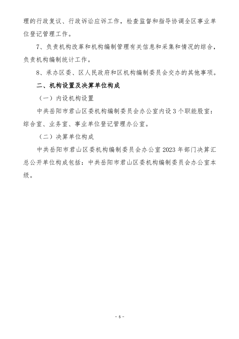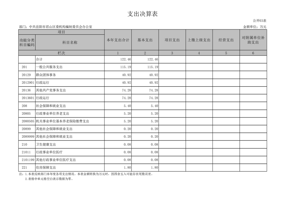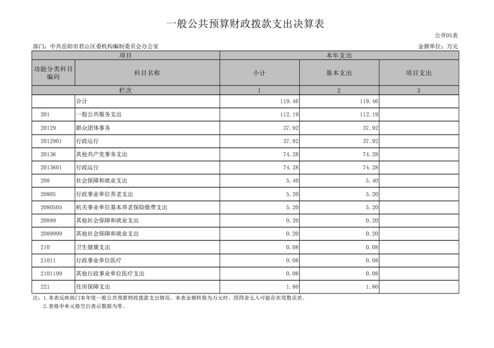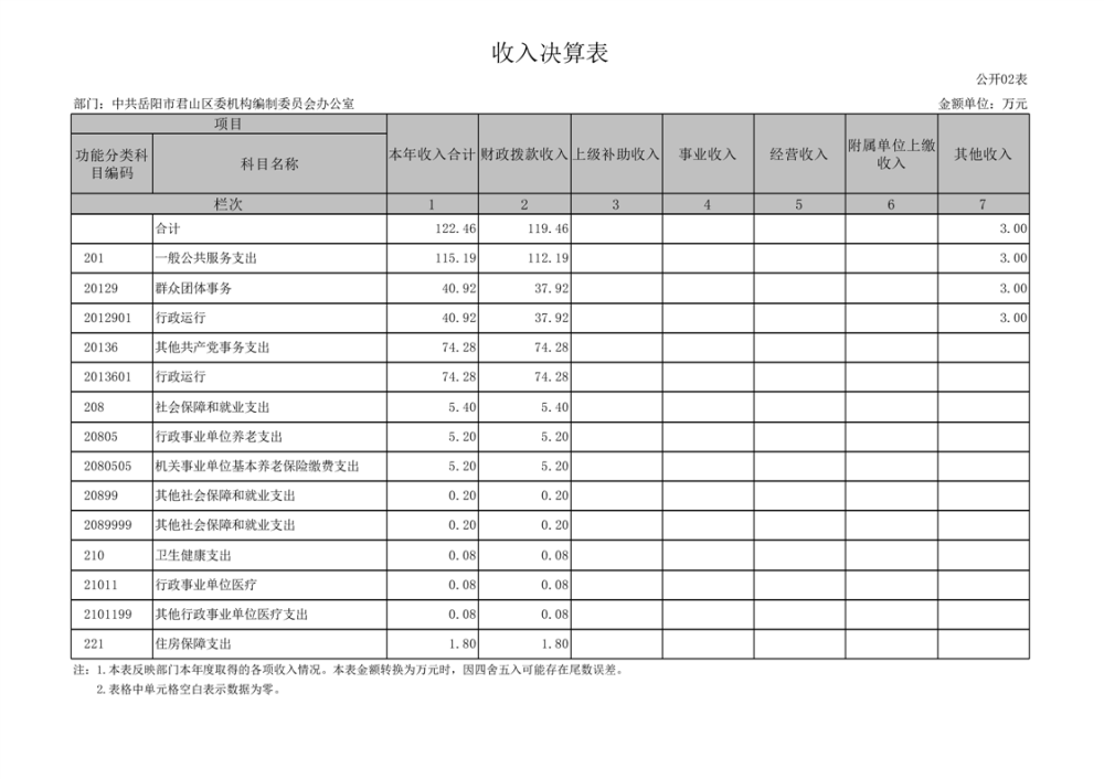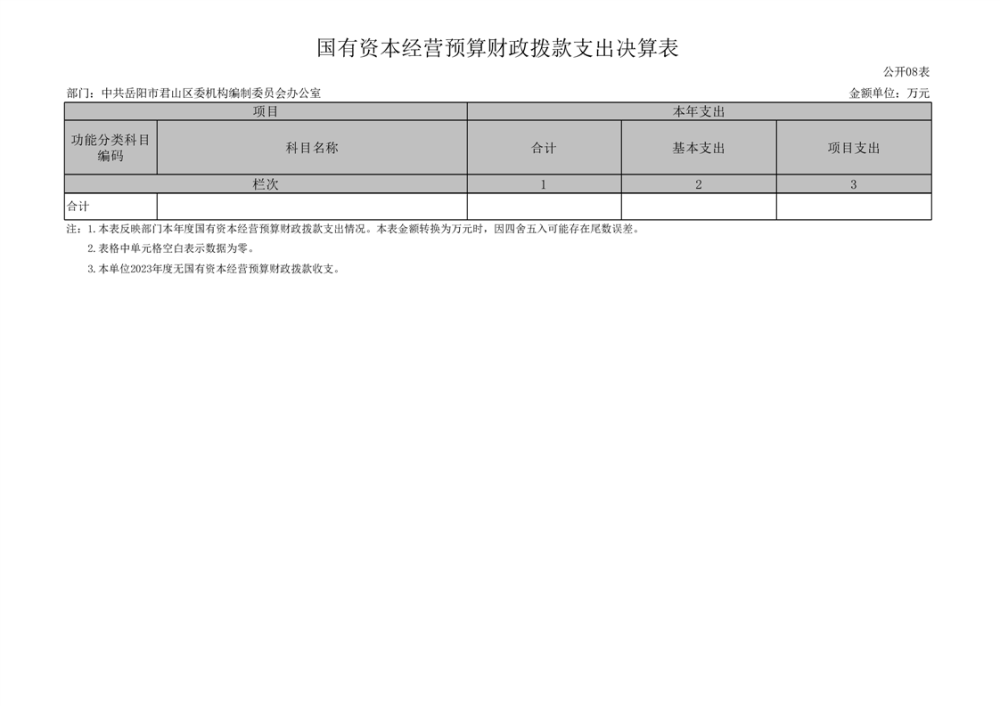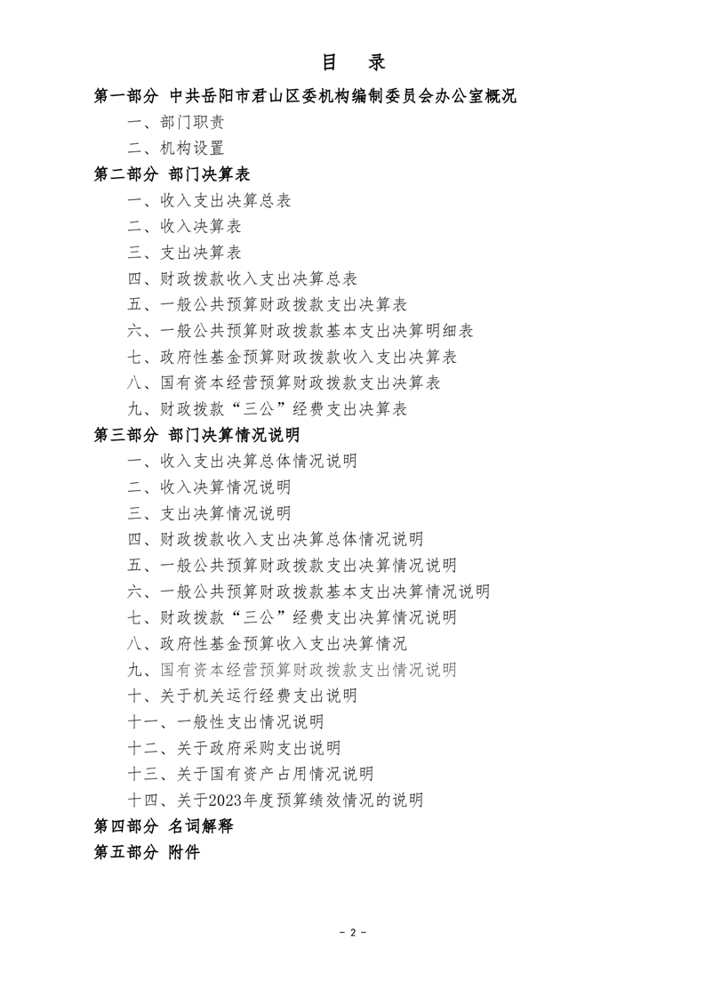 2023年度中共岳阳市君山区委机构编制委员会办公室部门决算公开
