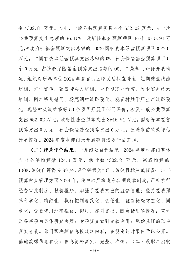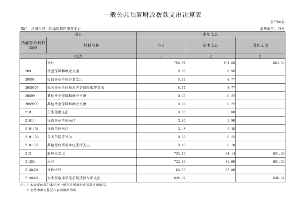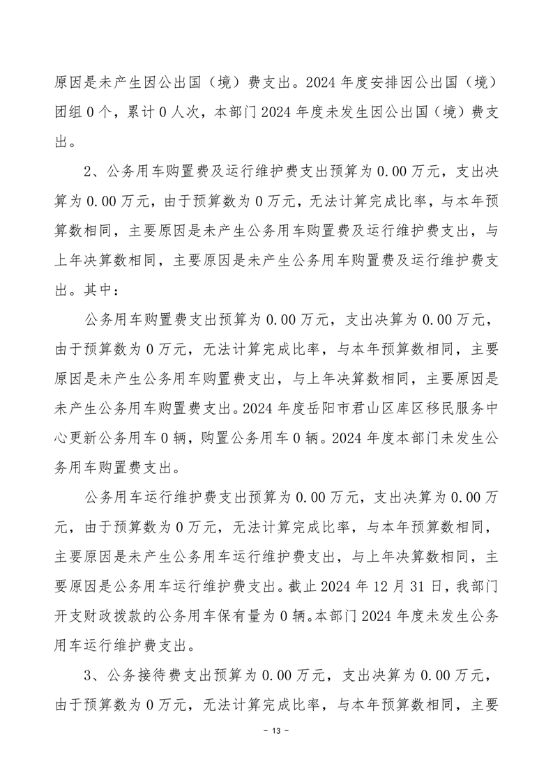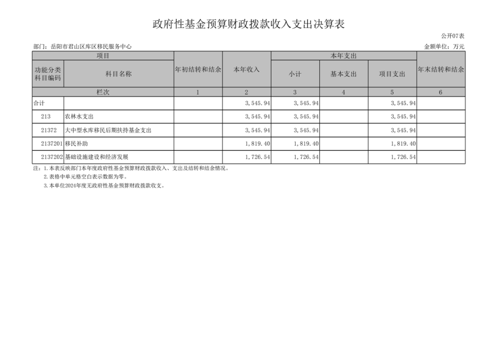 2024年度岳阳市君山区库区移民服务中心部门决算公开