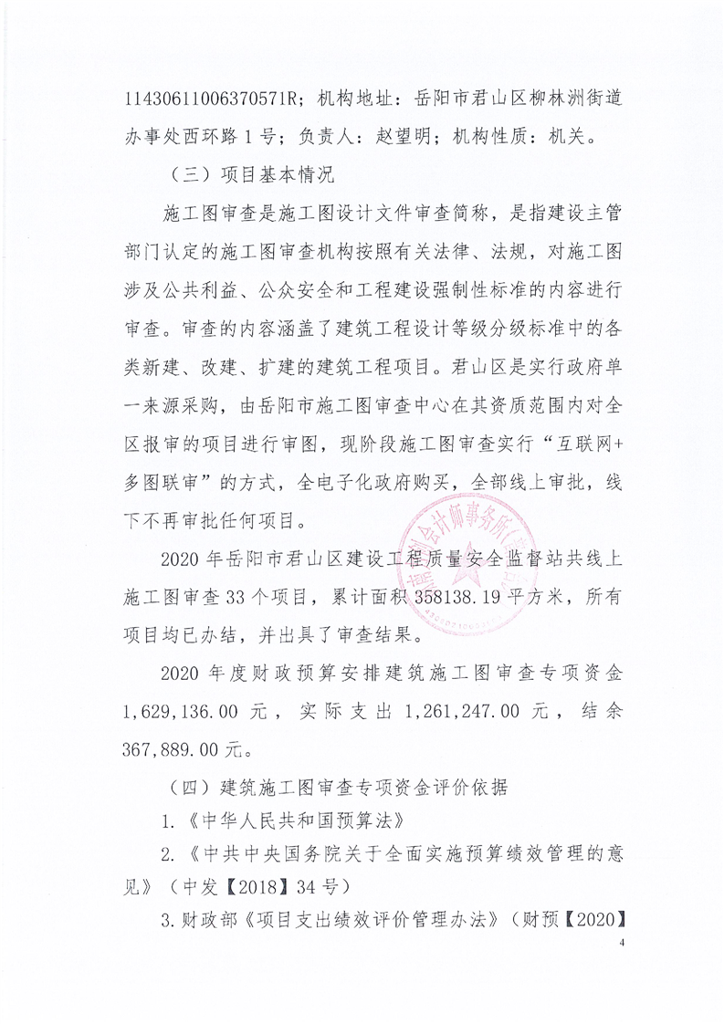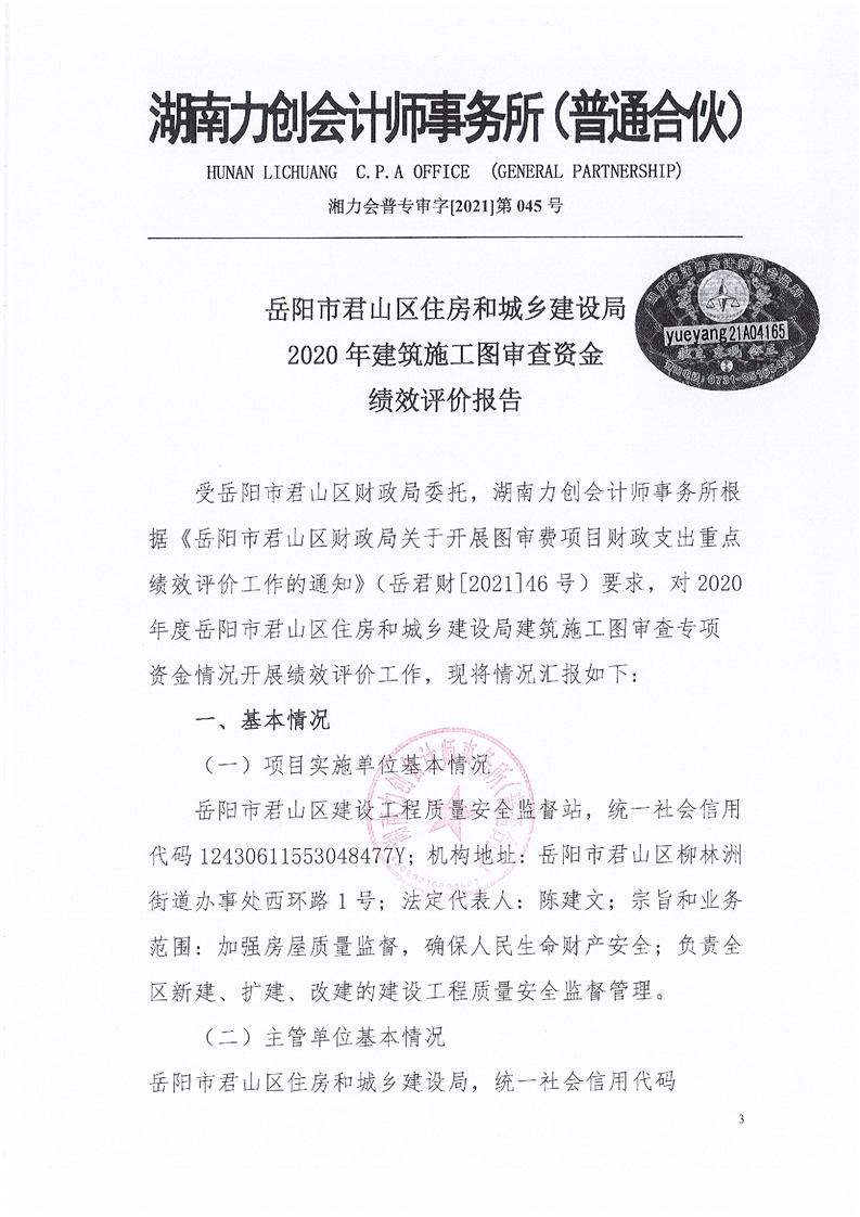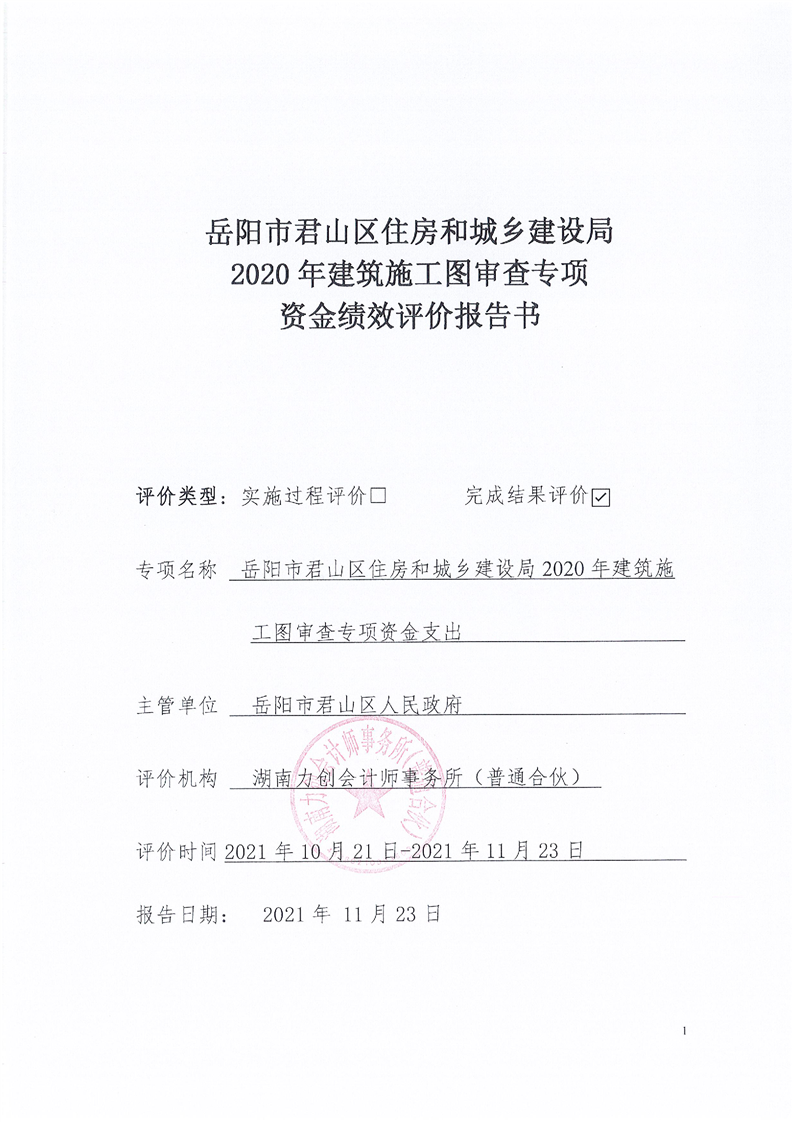君山区住房和城乡建设局2020年建筑施工图审查专项资金绩效评价报告书