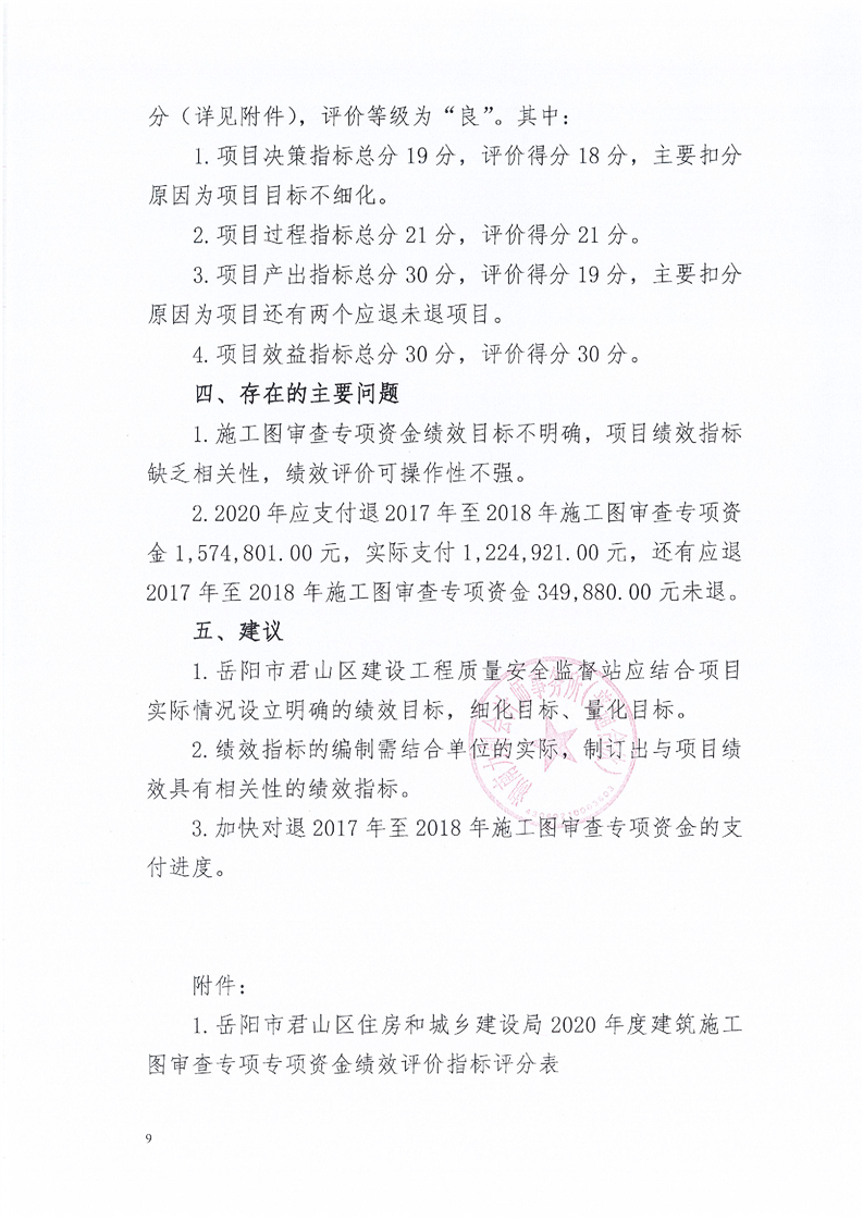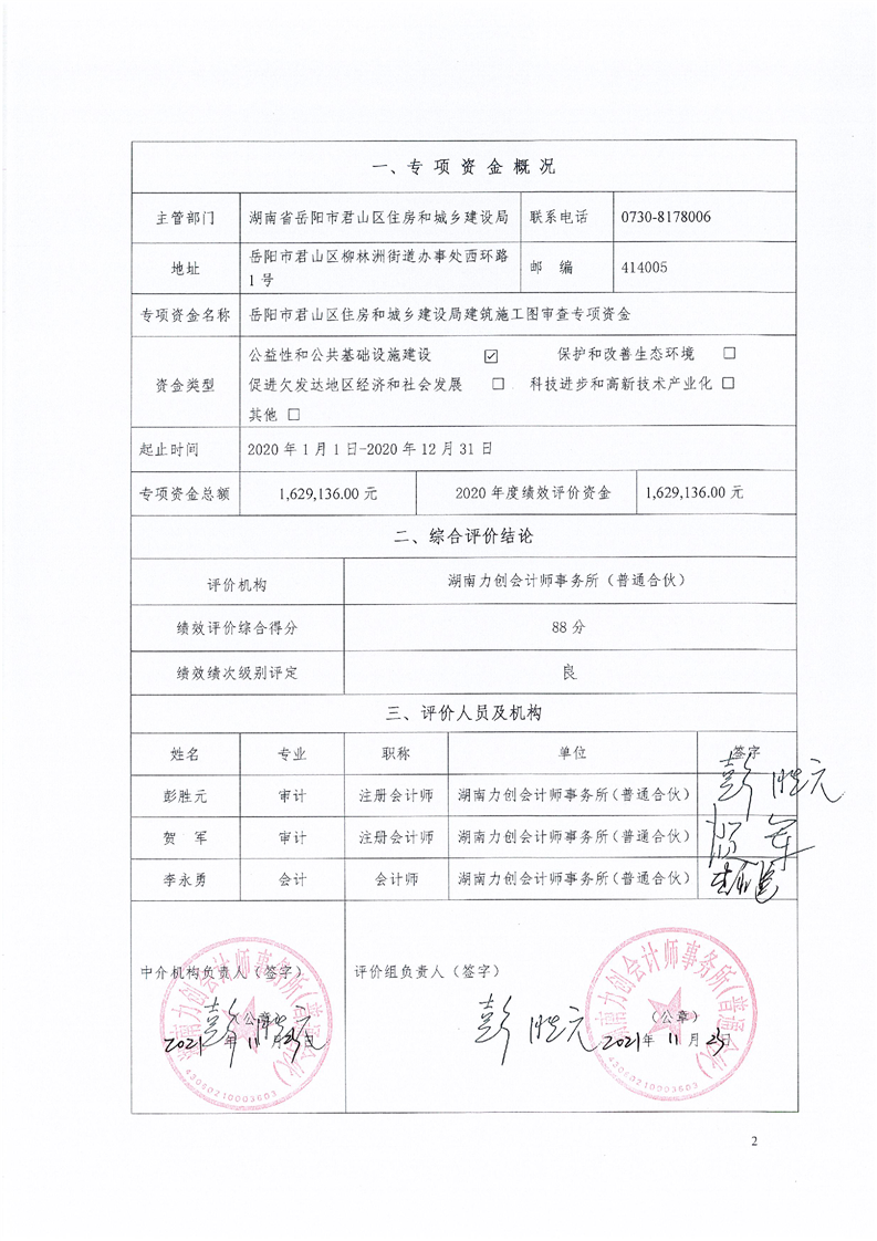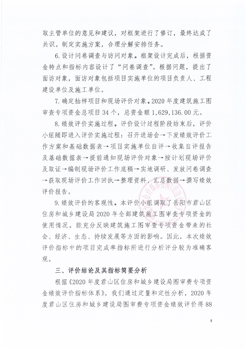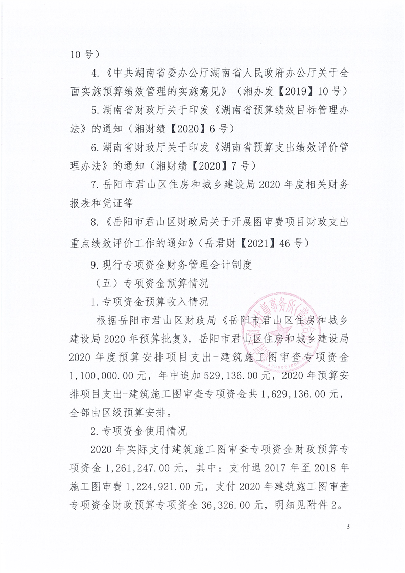 君山区住房和城乡建设局2020年建筑施工图审查专项资金绩效评价报告书