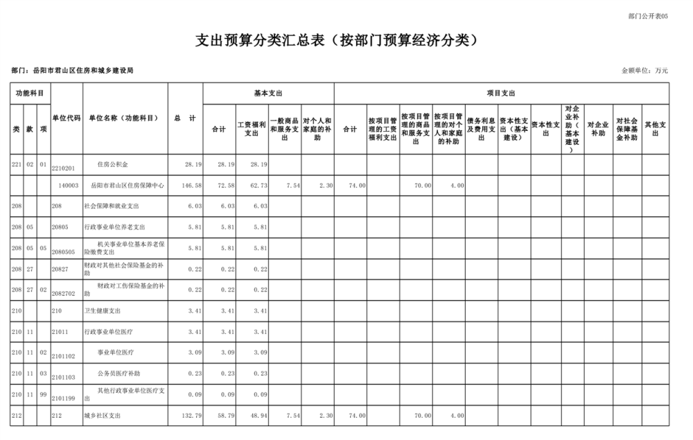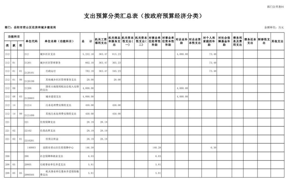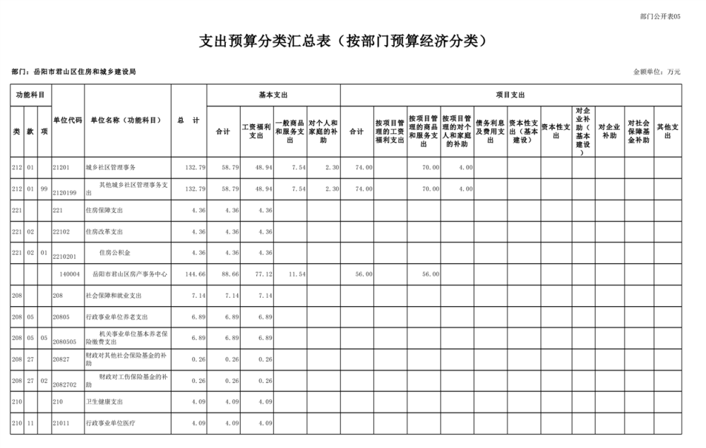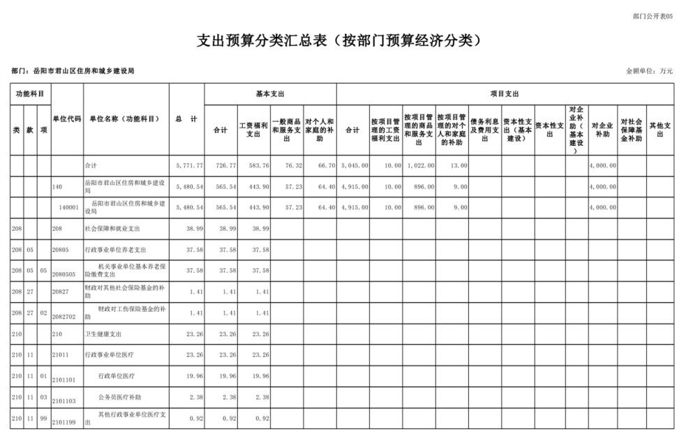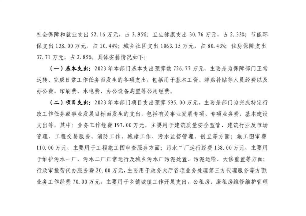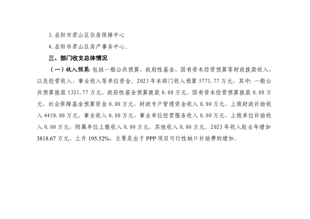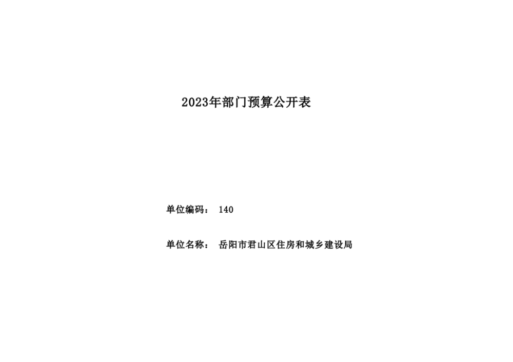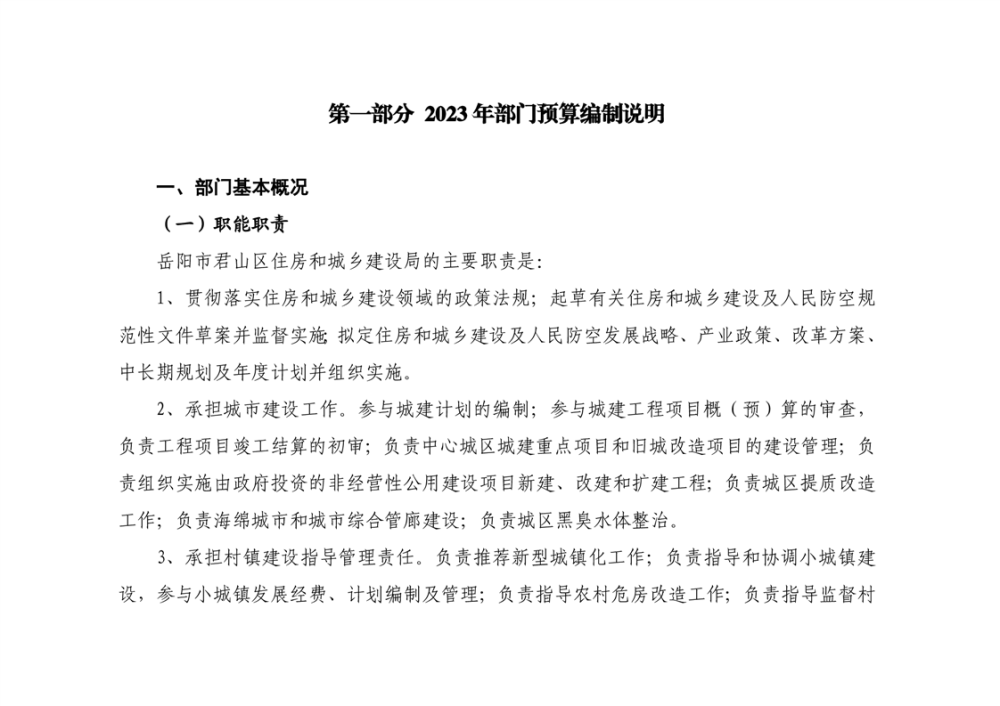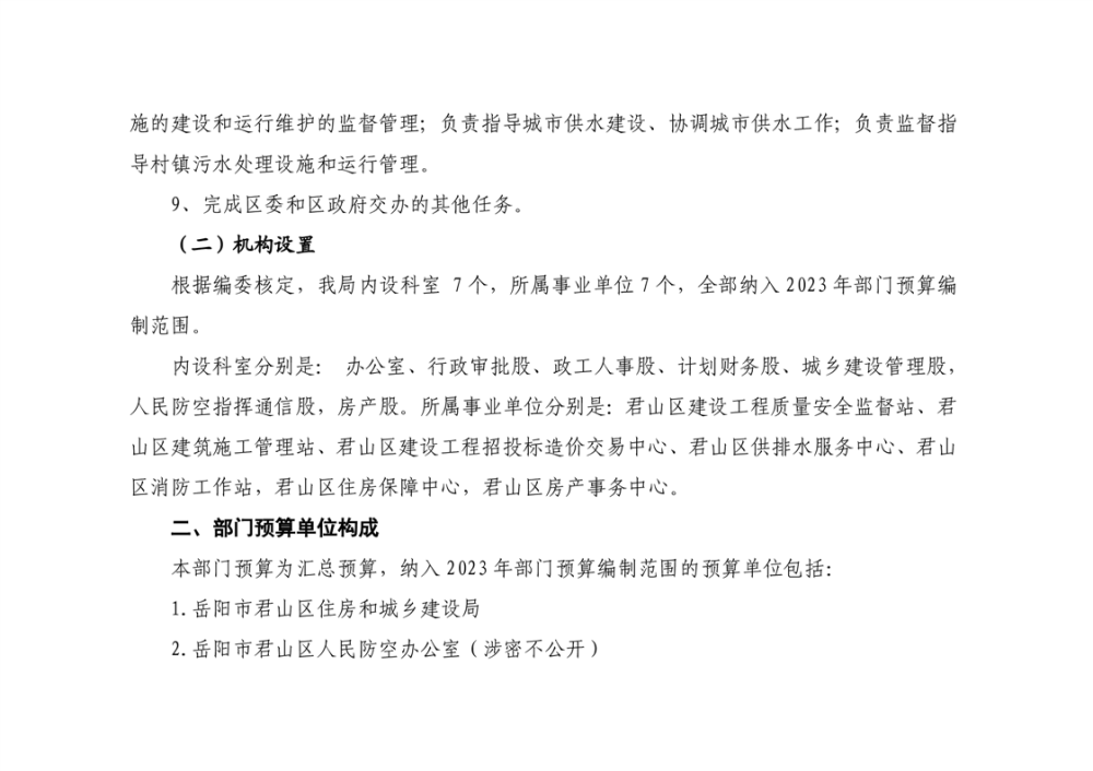 2023年君山区住房和城乡建设局(汇总)部门预算公开说明