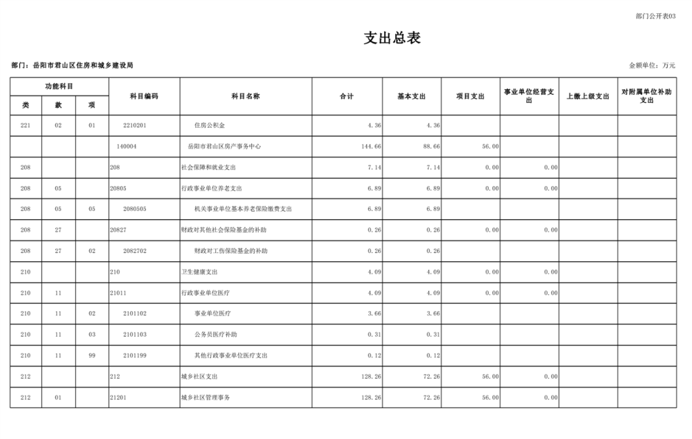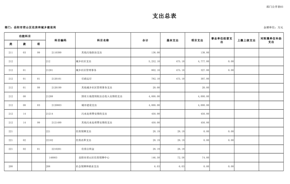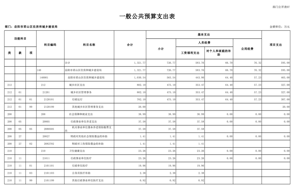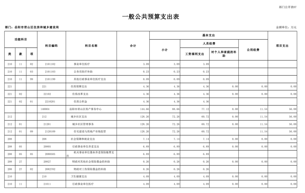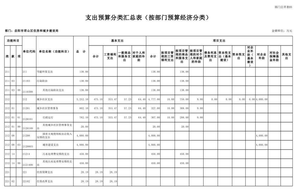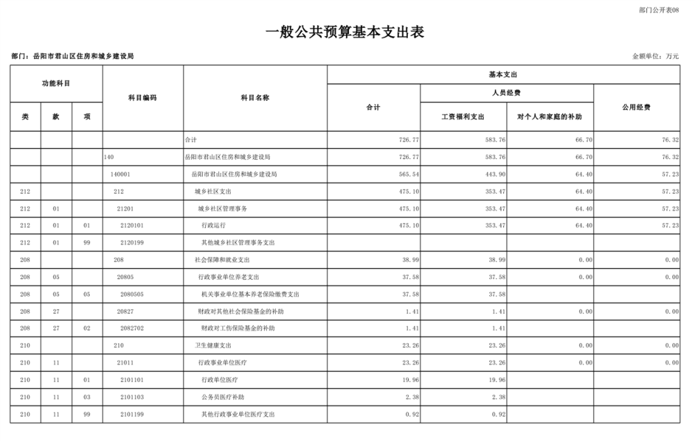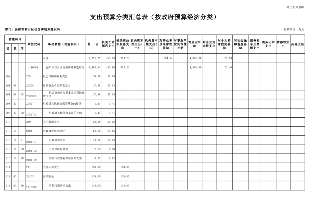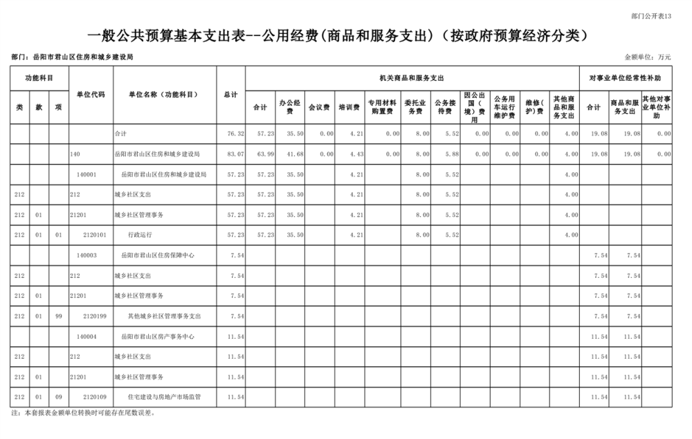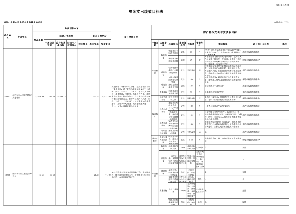 2023年君山区住房和城乡建设局(汇总)部门预算公开说明