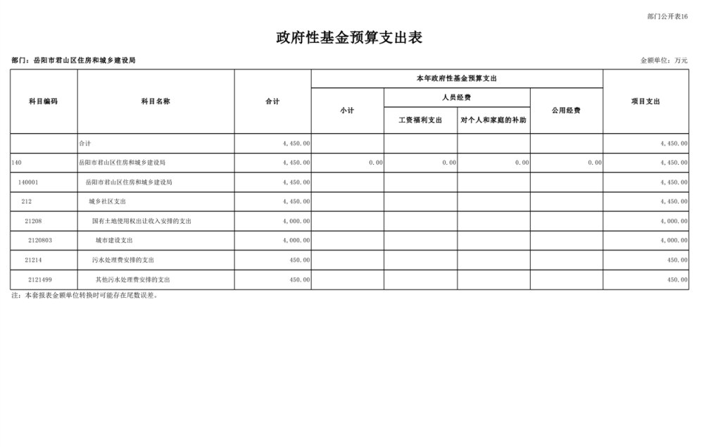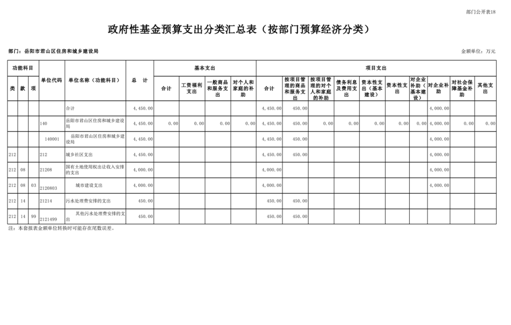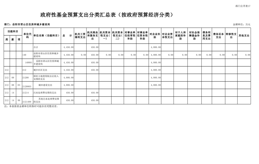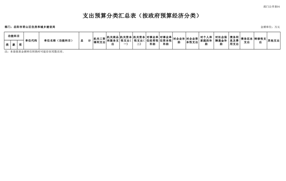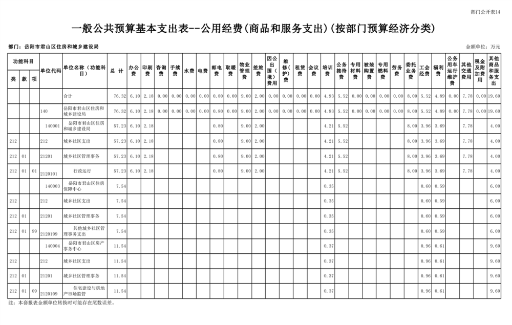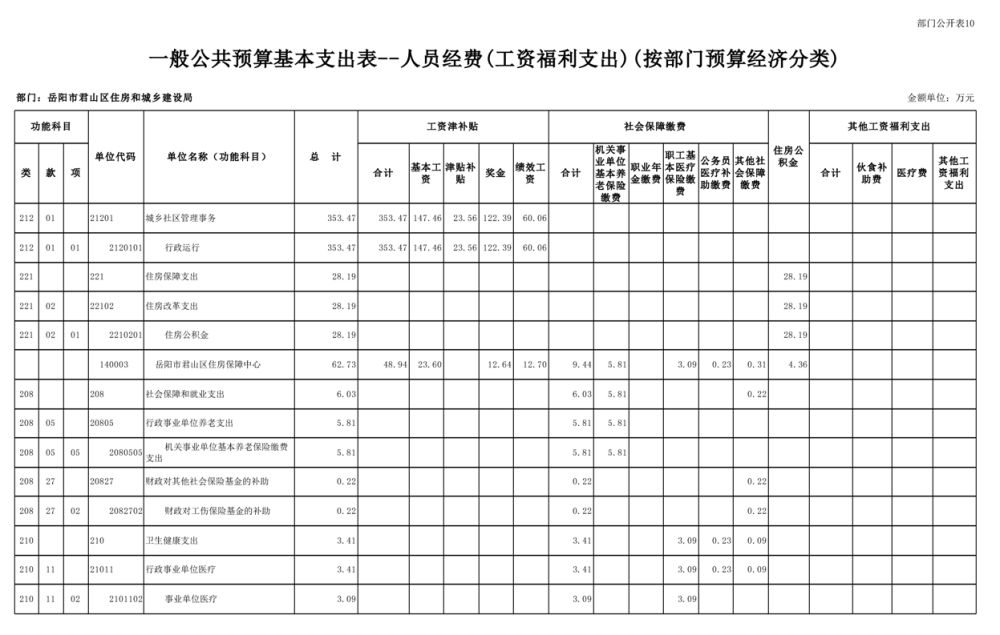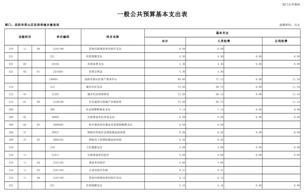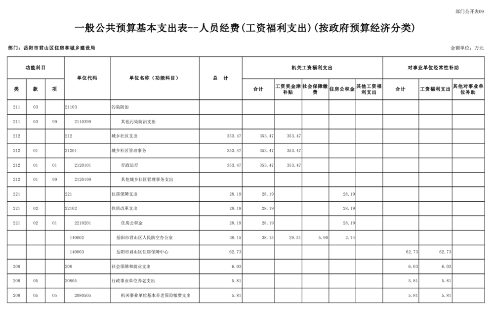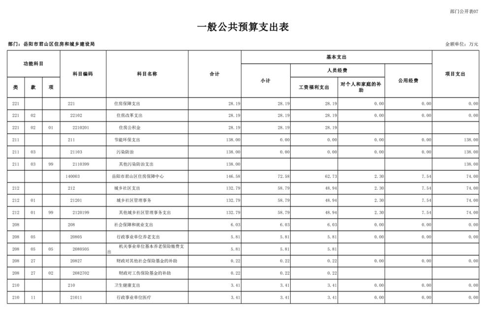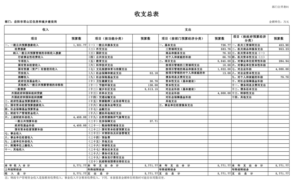 2023年君山区住房和城乡建设局(汇总)部门预算公开说明