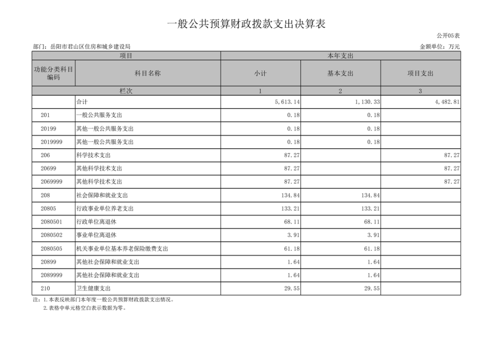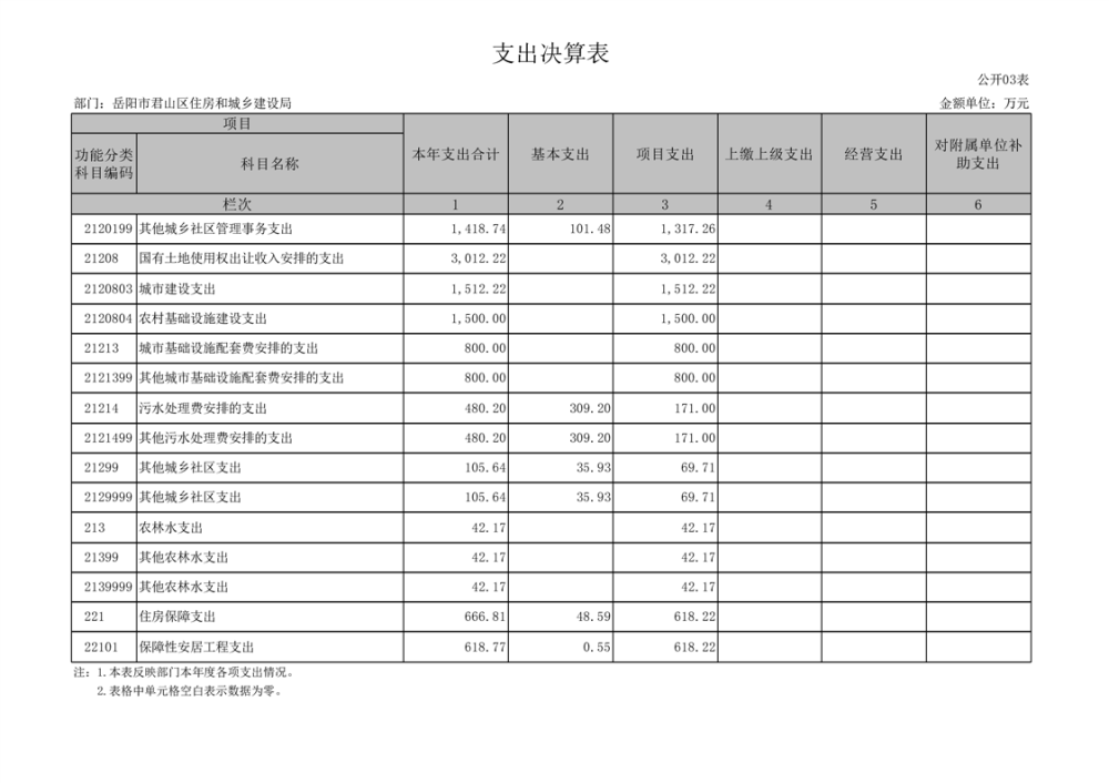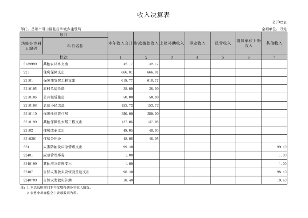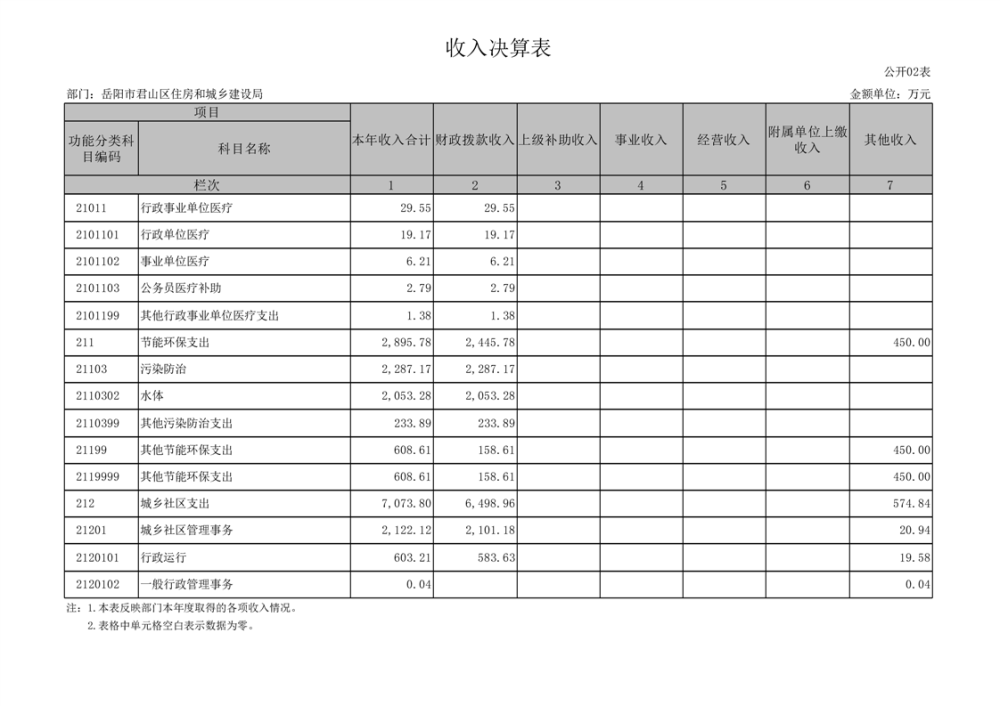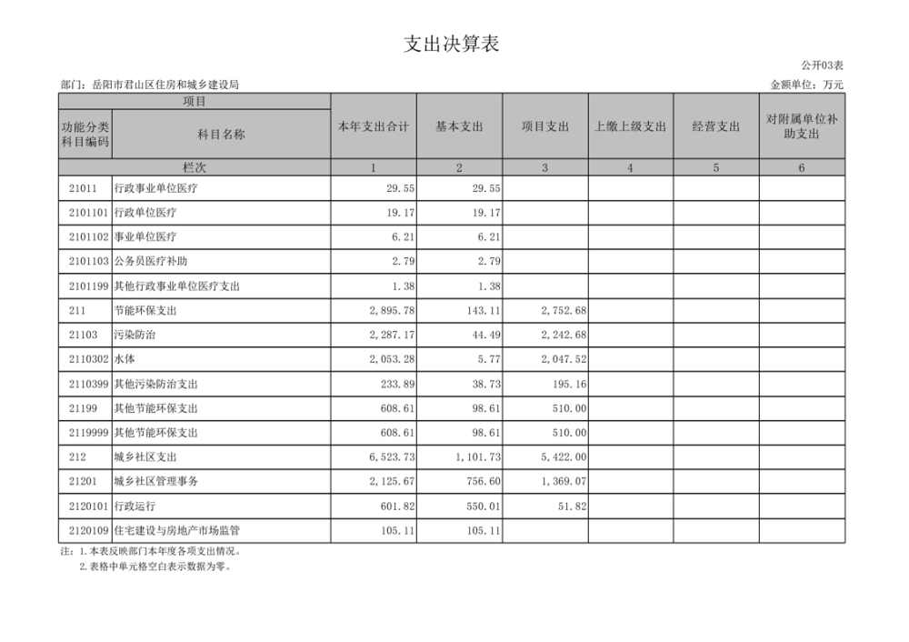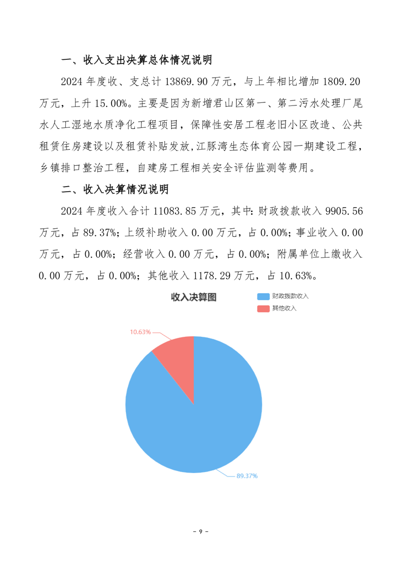 2024年度岳阳市君山区住房和城乡建设局(汇总)部门决算公开