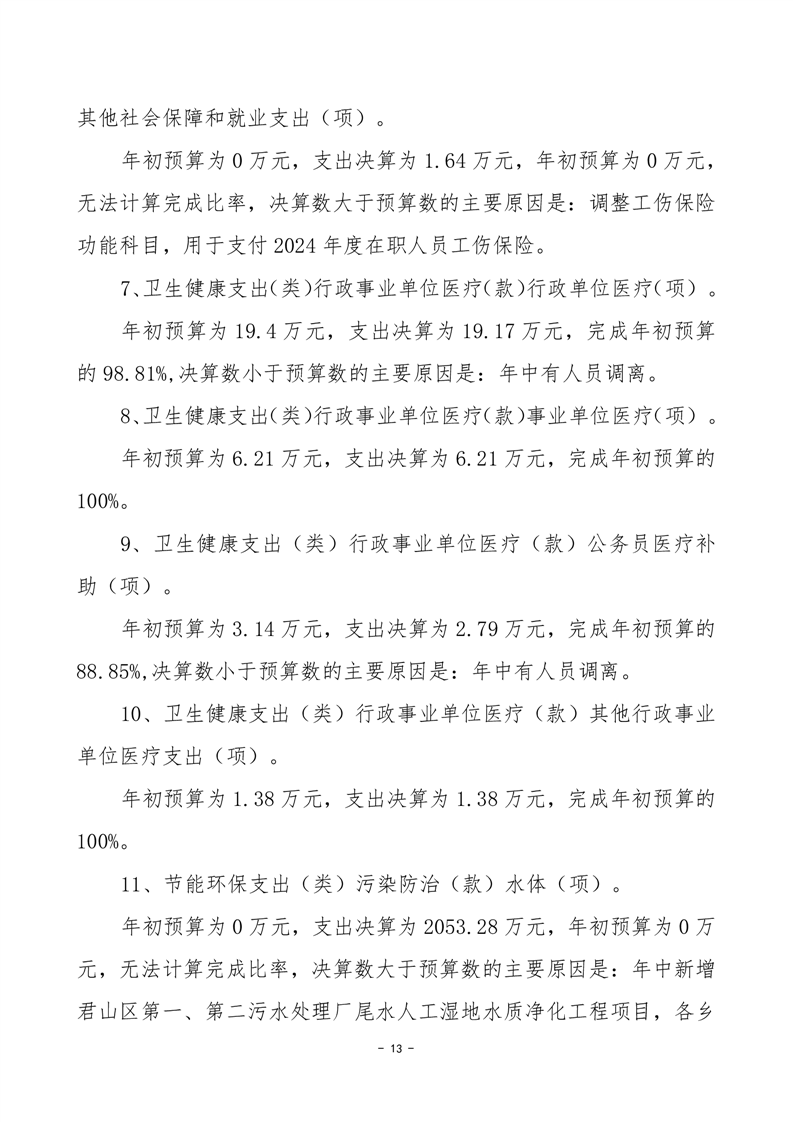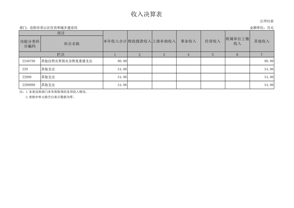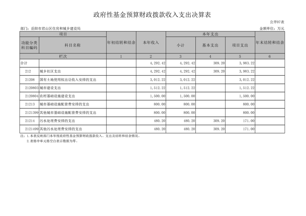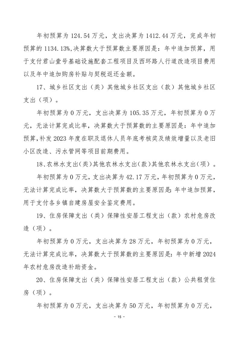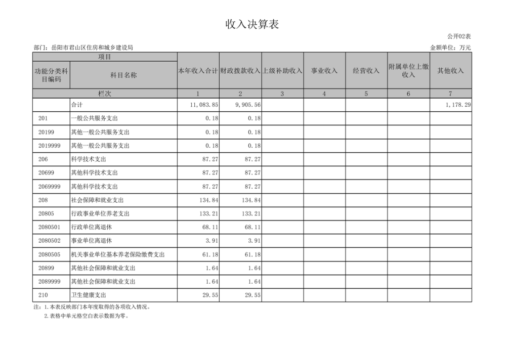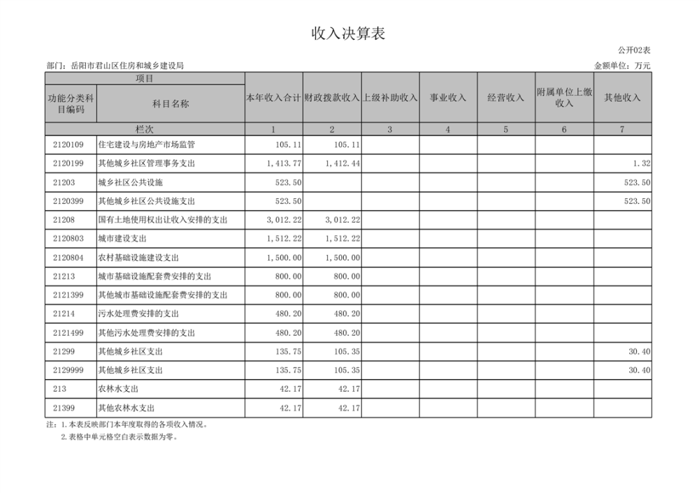 2024年度岳阳市君山区住房和城乡建设局(汇总)部门决算公开