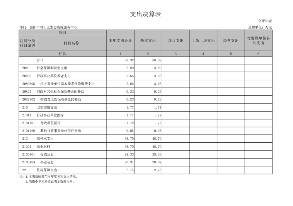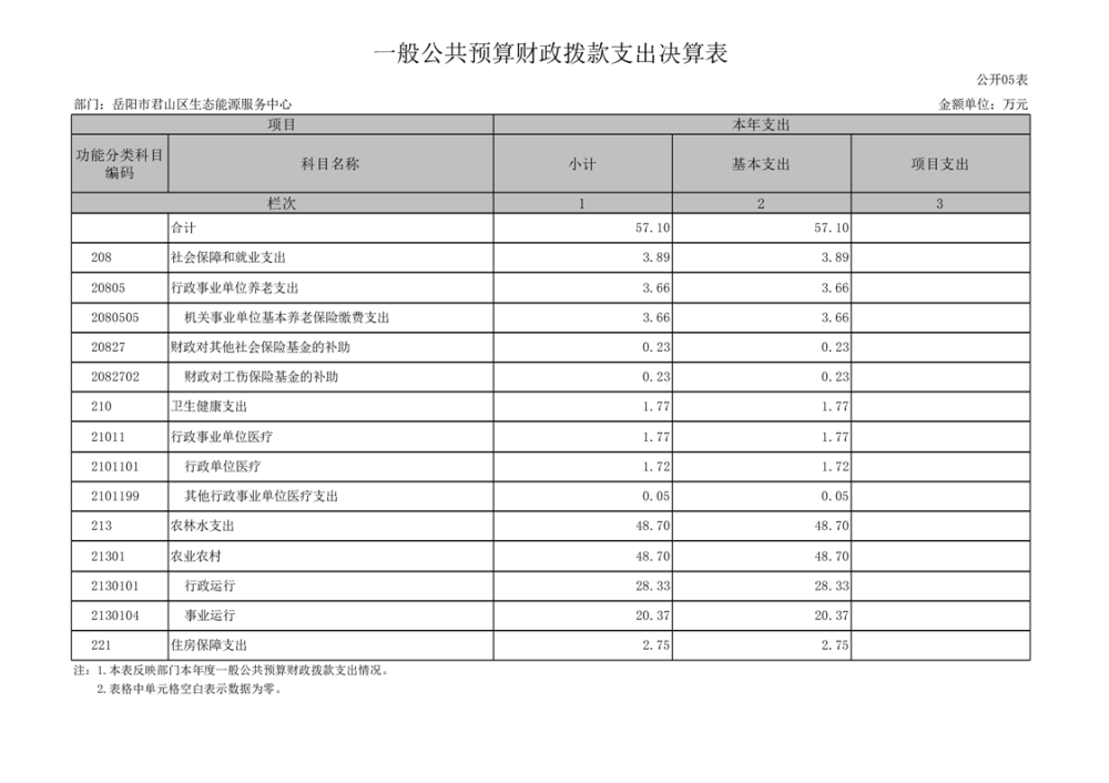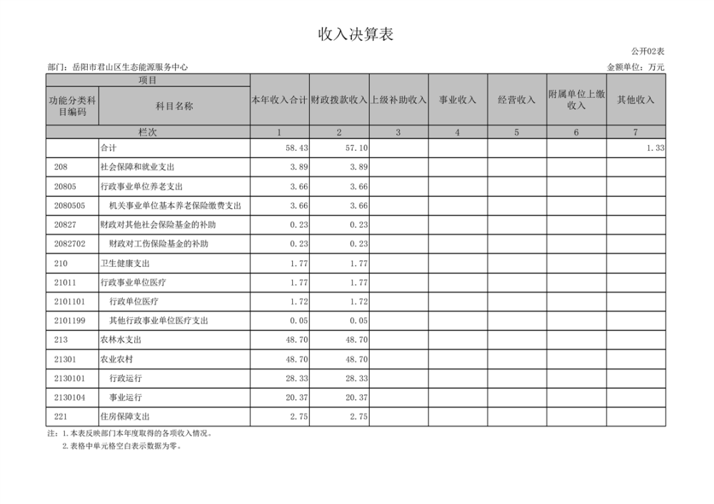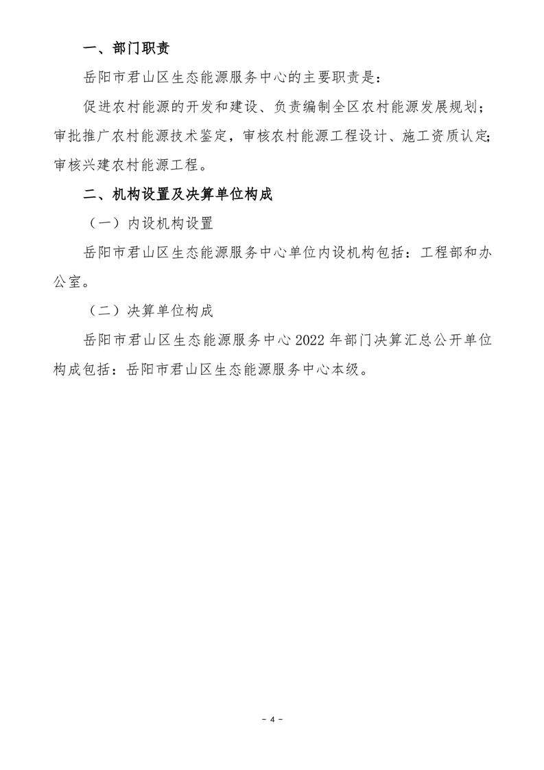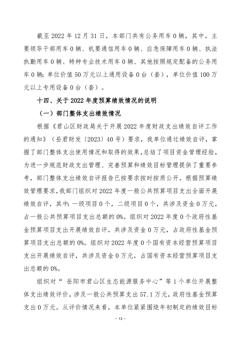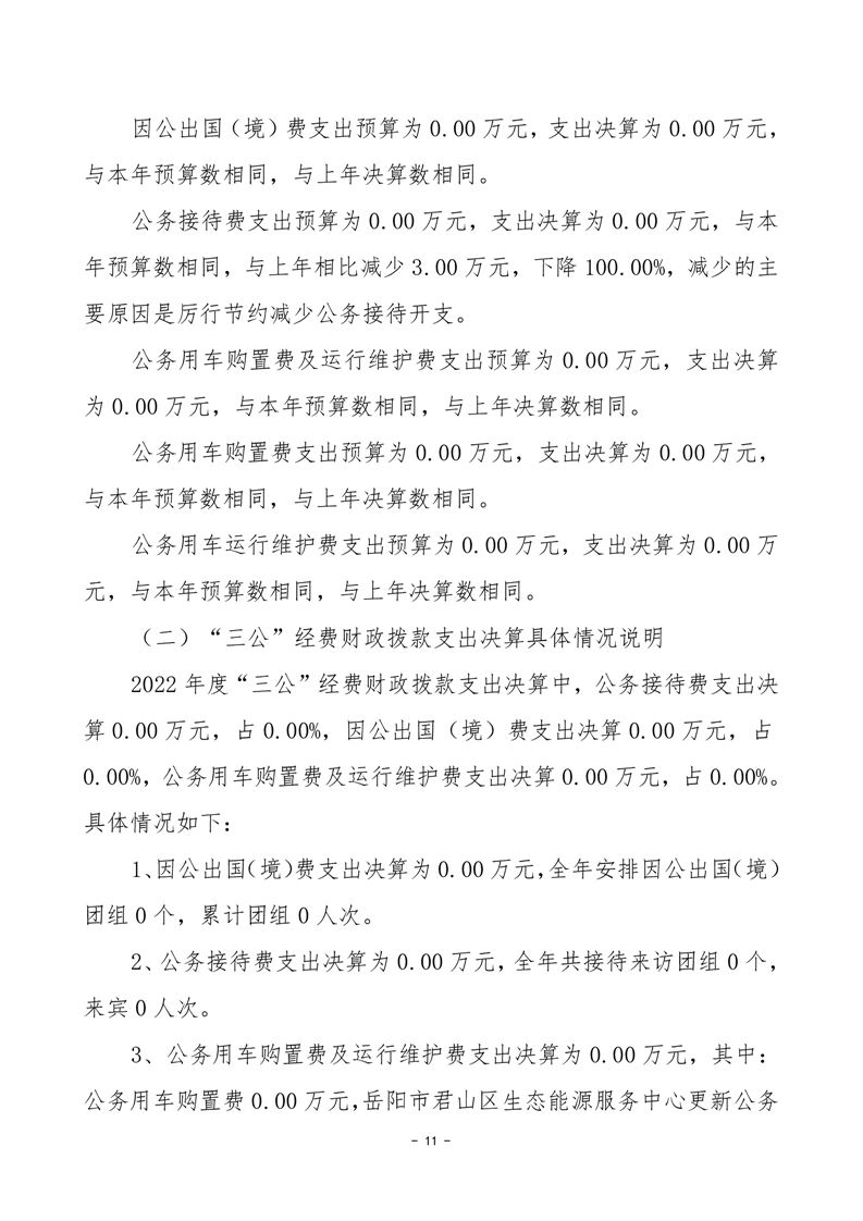 2022年度岳阳市君山区生态能源服务中心部门决算公开说明