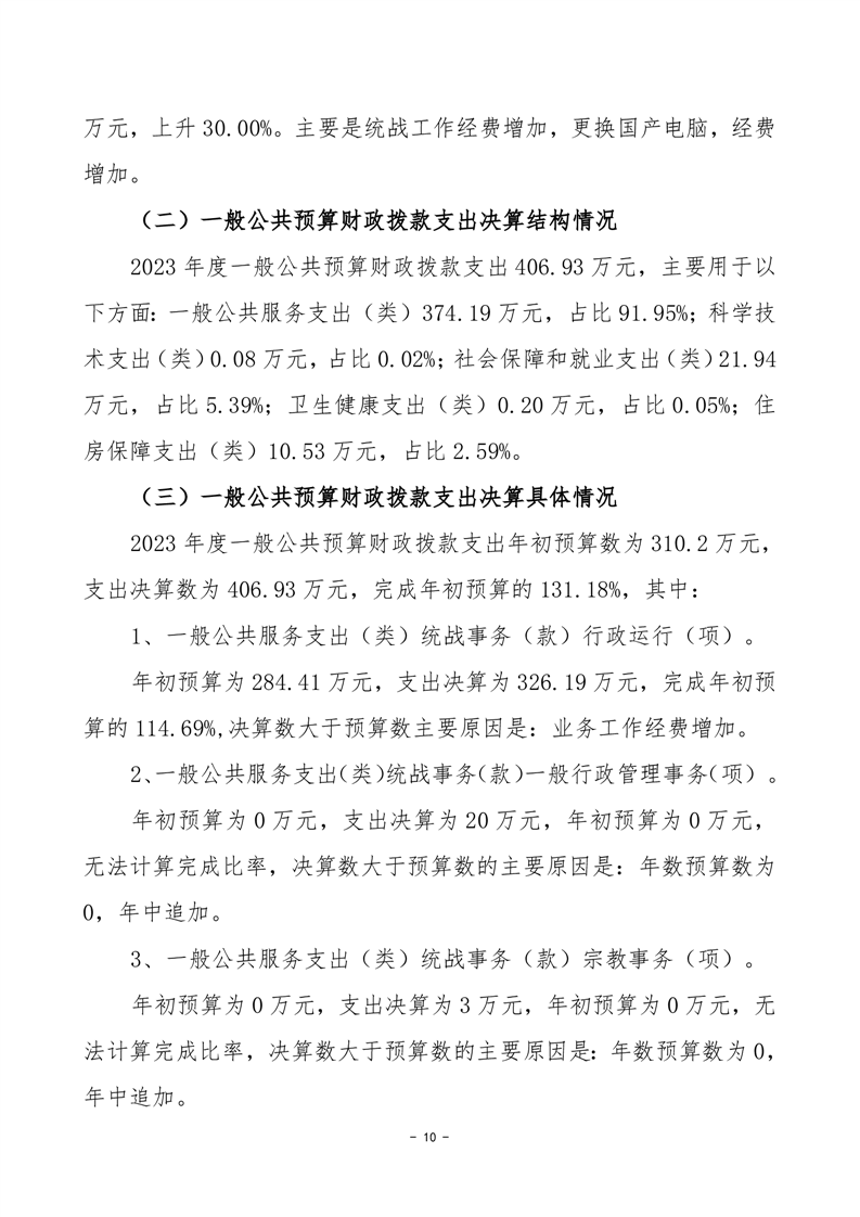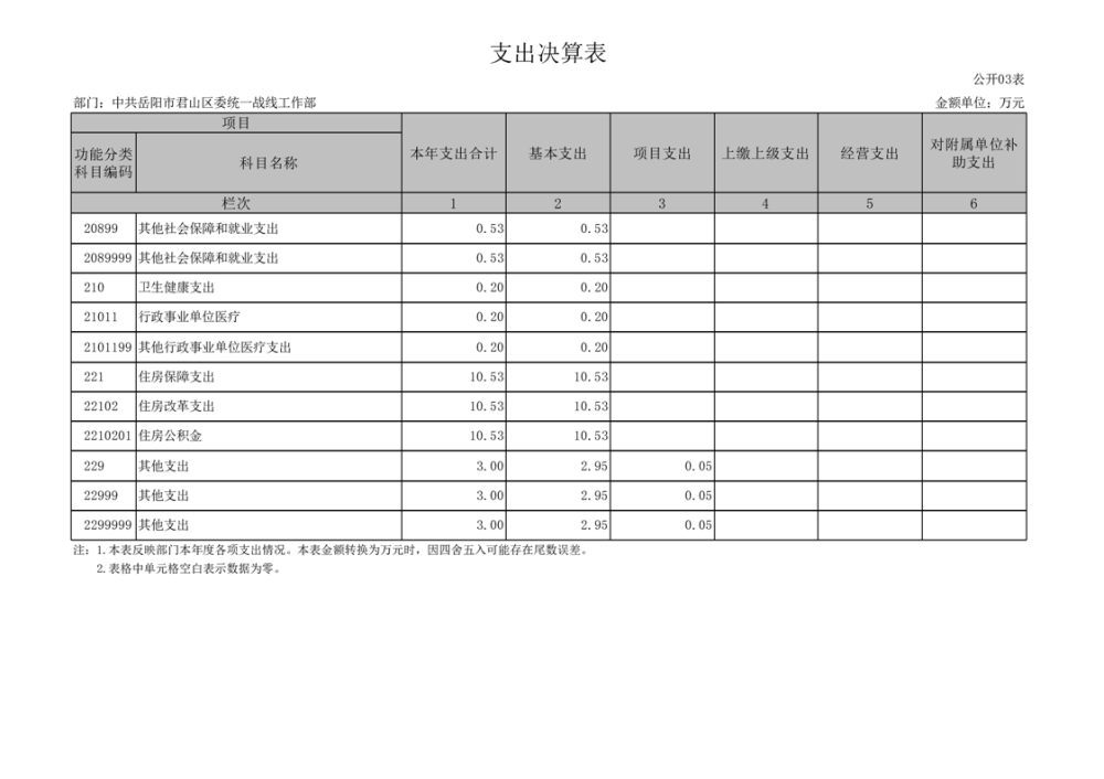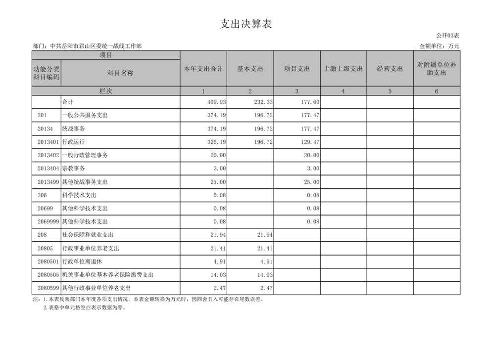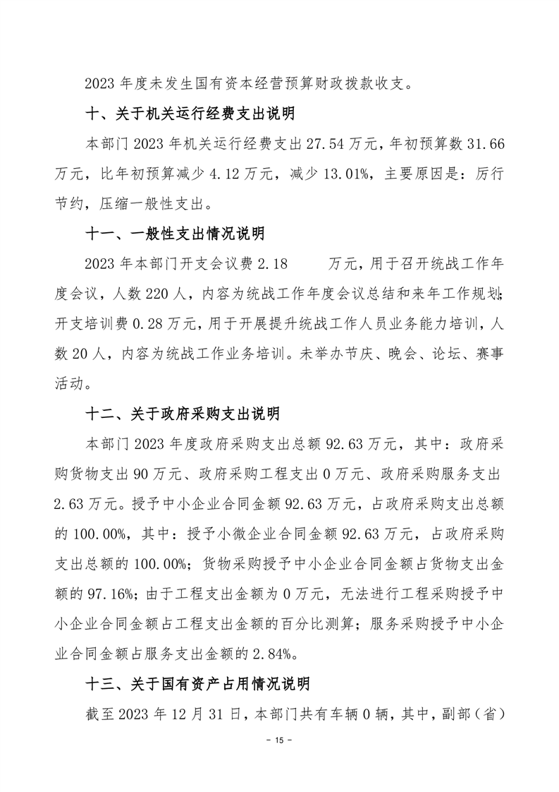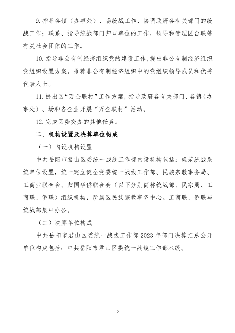 2023年度中共岳阳市君山区委统一战线工作部部门决算公开