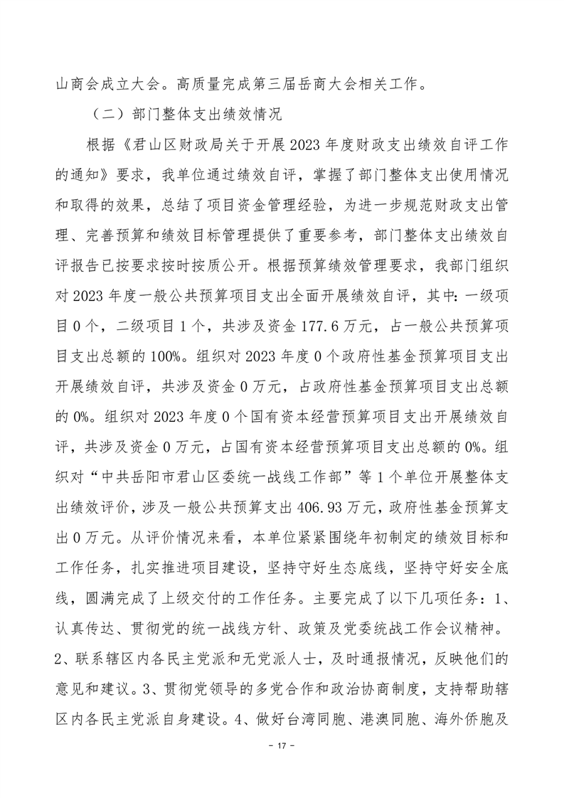 110001-中共岳阳市君山区委统一战线工作部绩效评价报告.docx