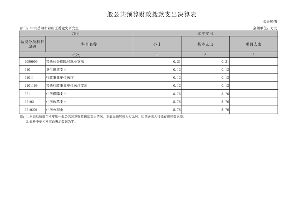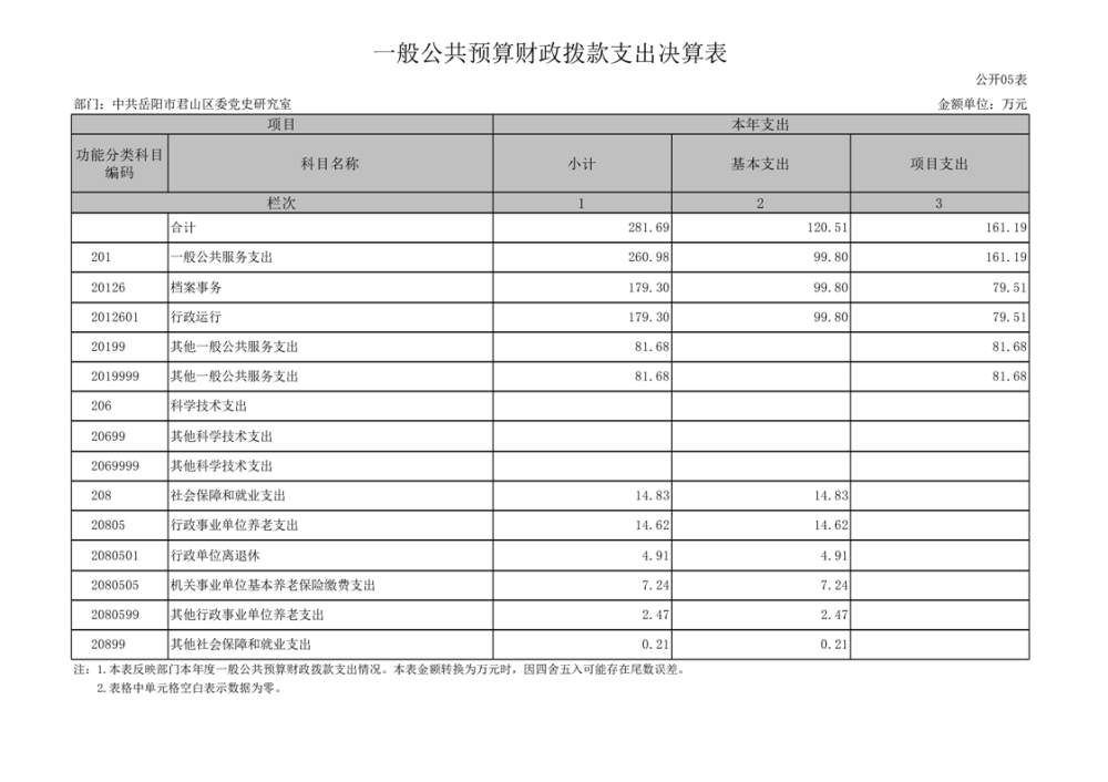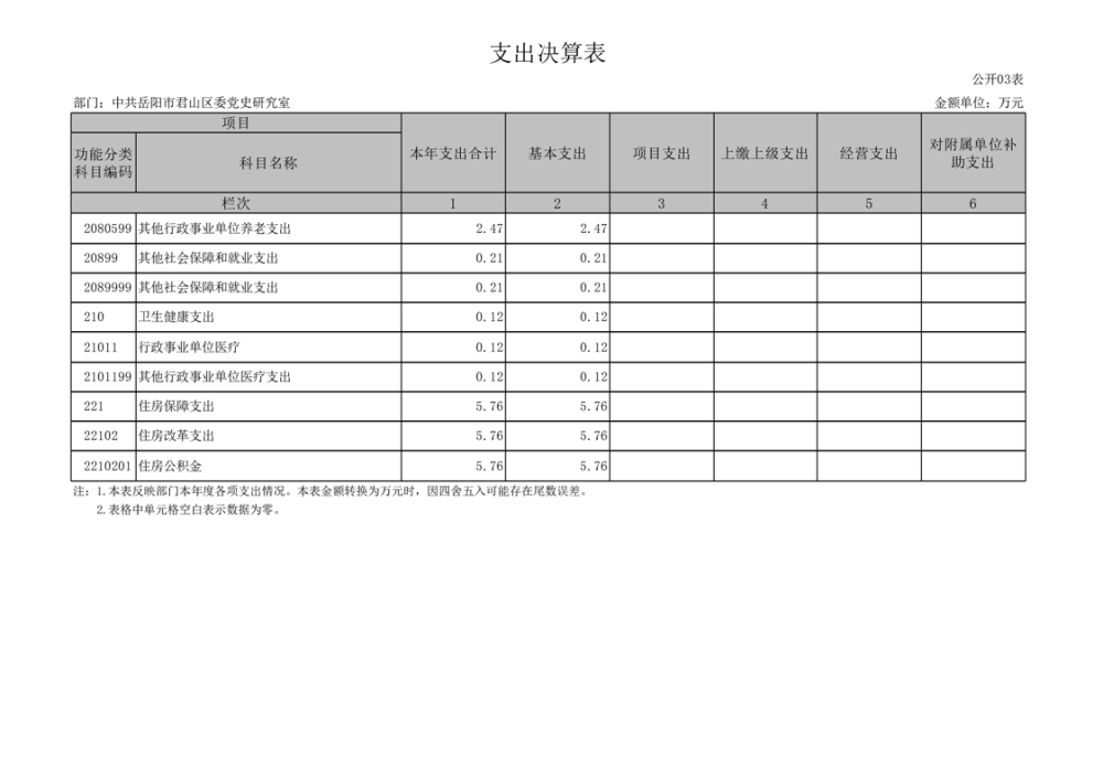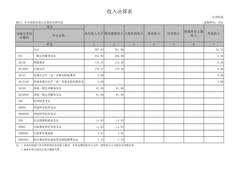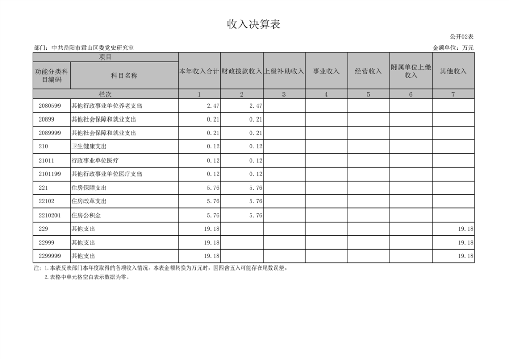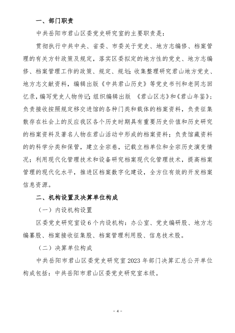 2023年度中共岳阳市君山区委党史研究室部门决算公开