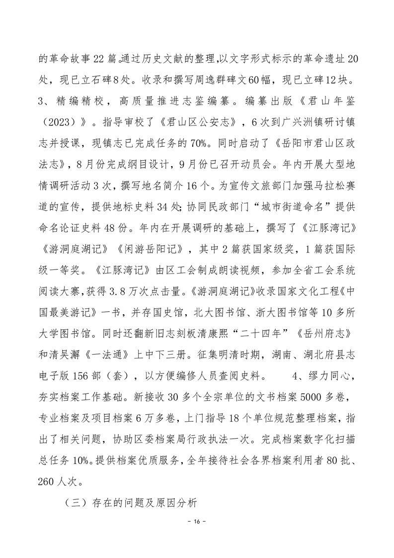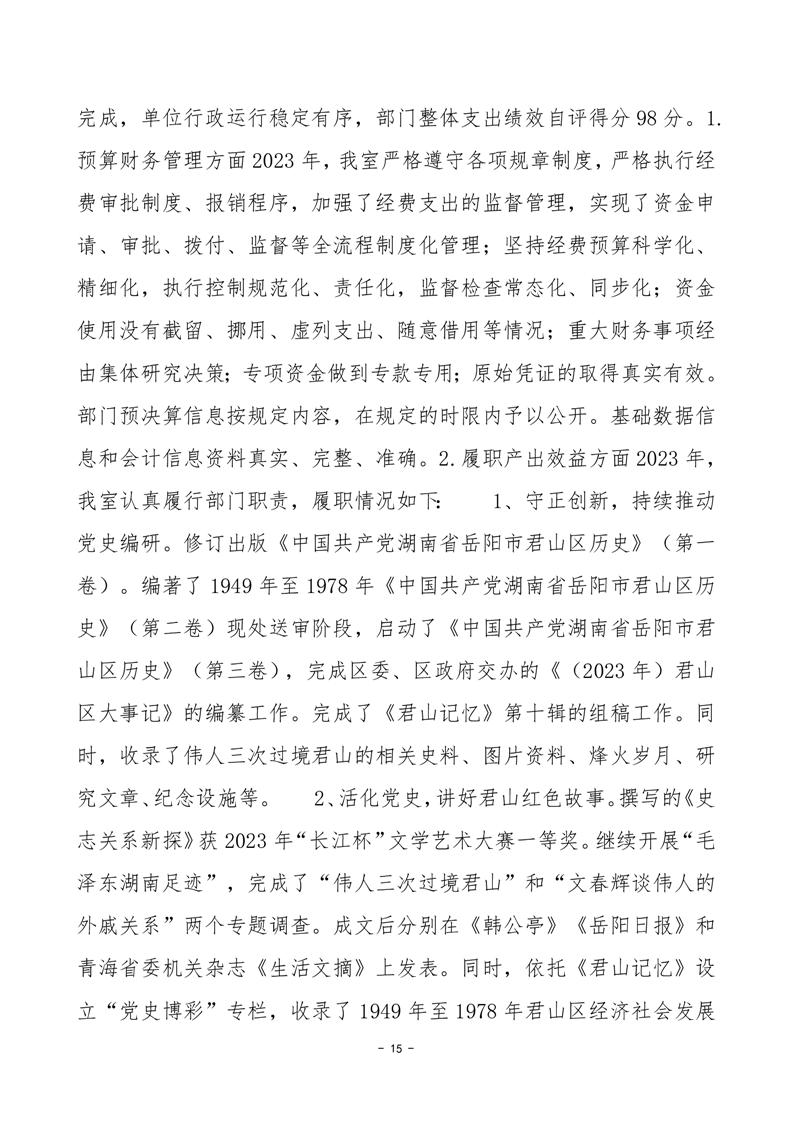 120001-中共岳阳市君山区委党史研究室自评报告(已发单位).docx