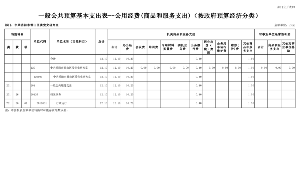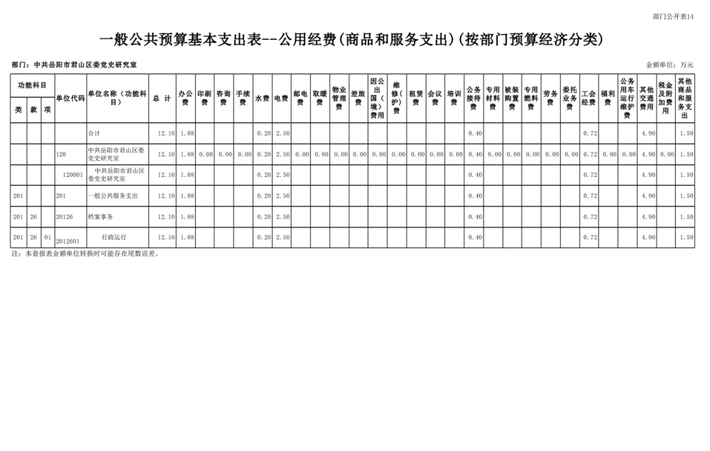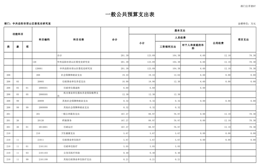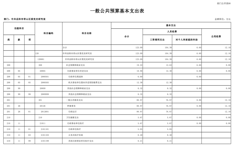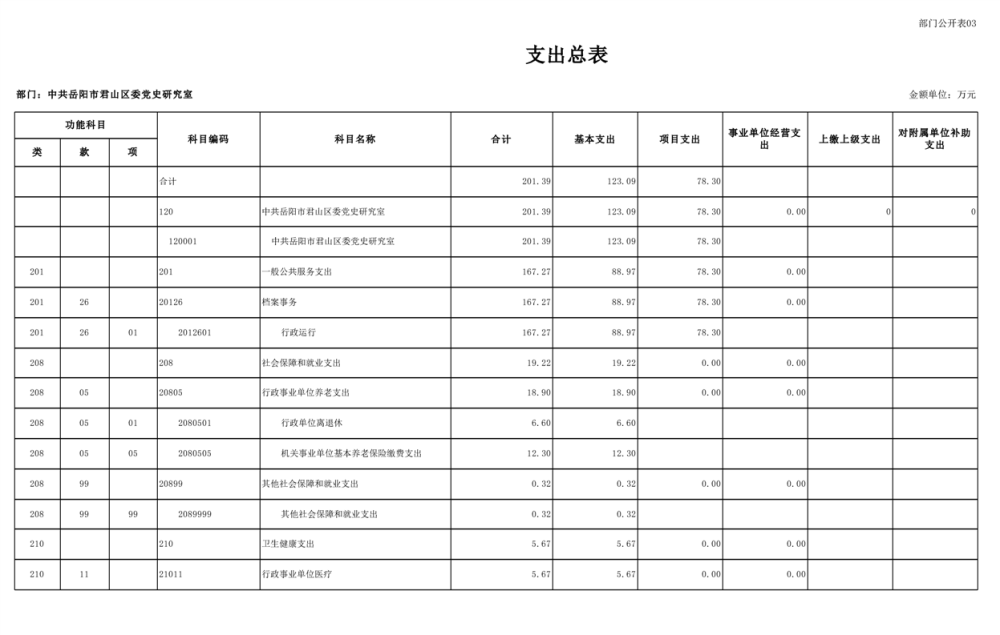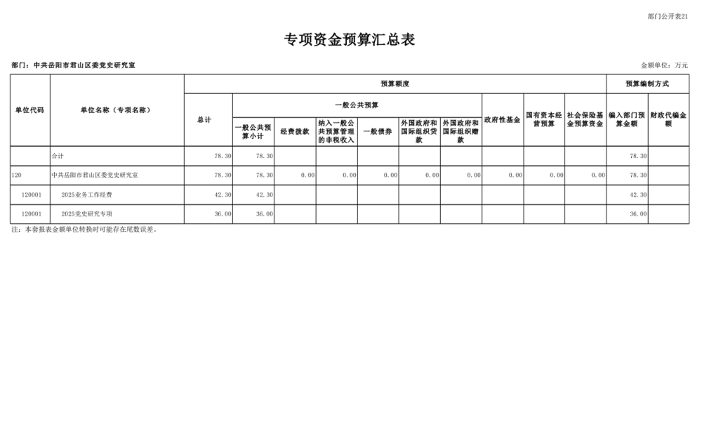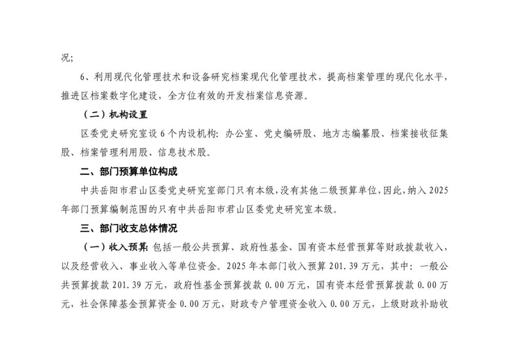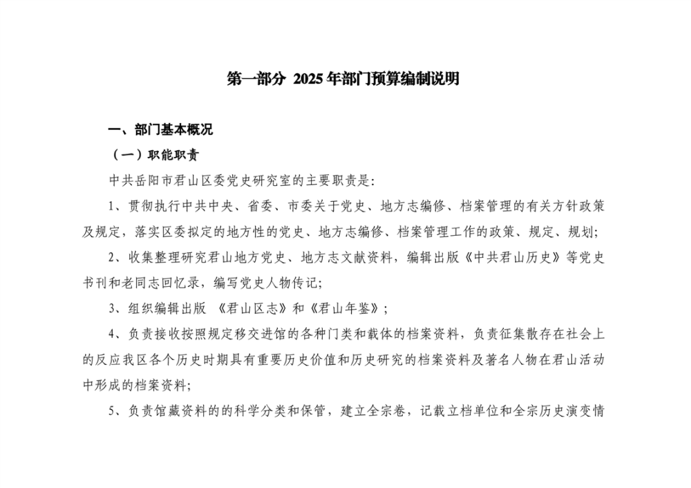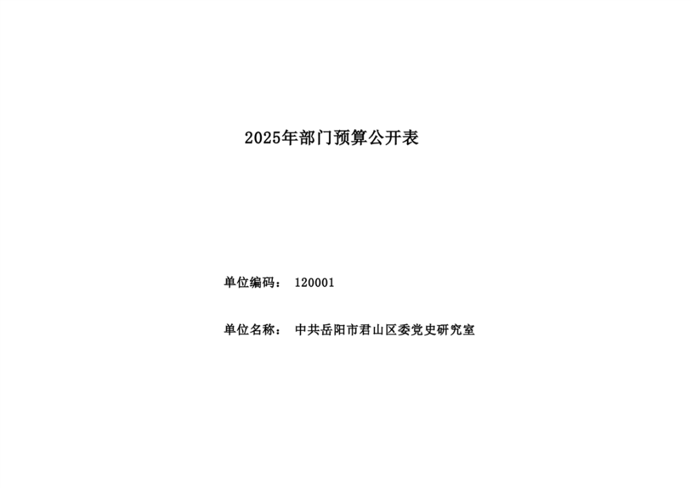 2025年中共岳阳市君山区委党史研究室部门预算公开