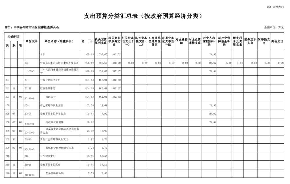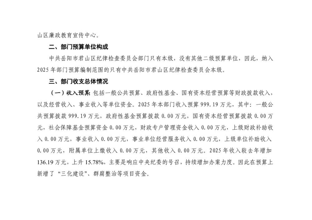 2025年中共岳阳市君山区纪律检查委员会部门预算公开