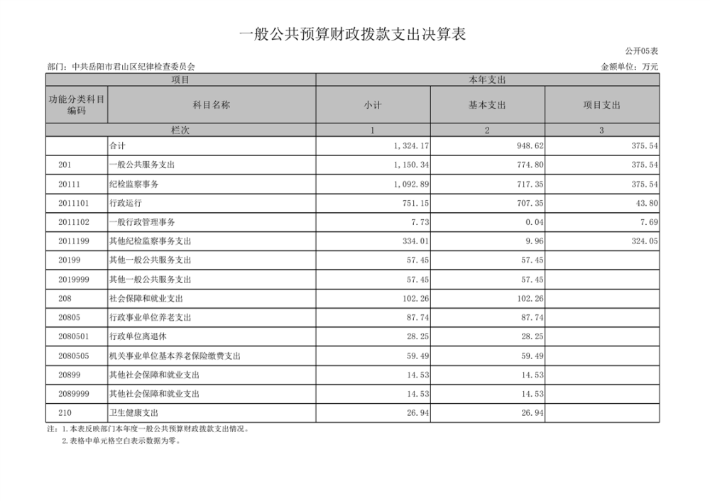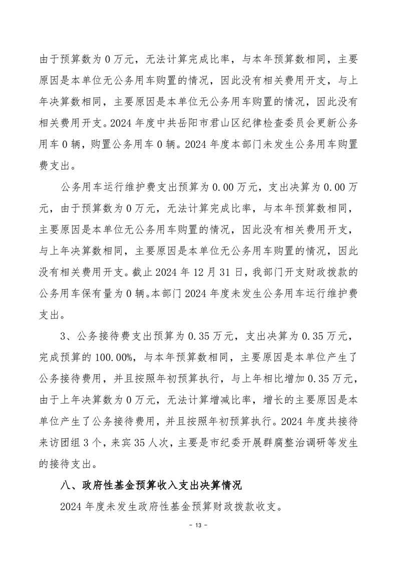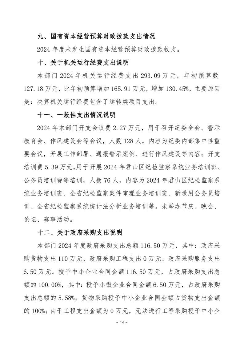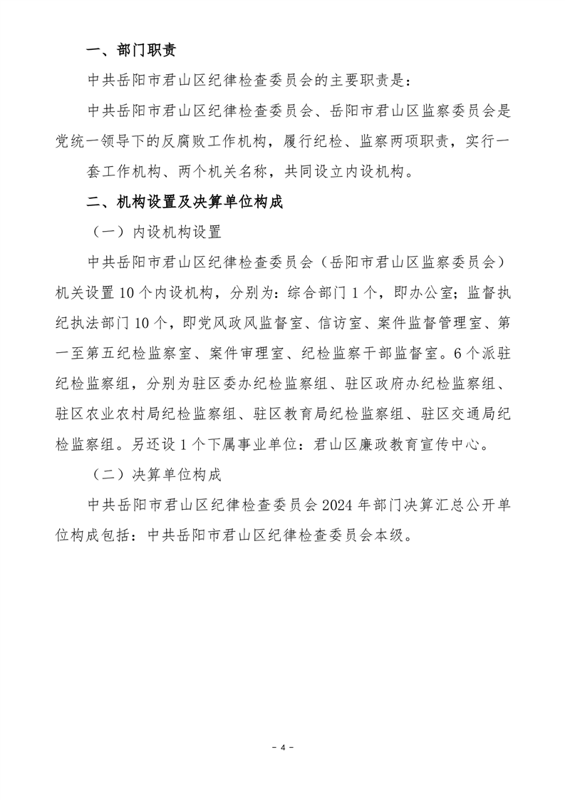 2024年度中共岳阳市君山区纪律检查委员会部门决算公开