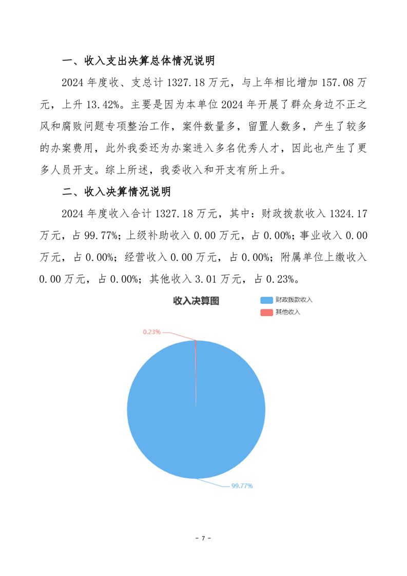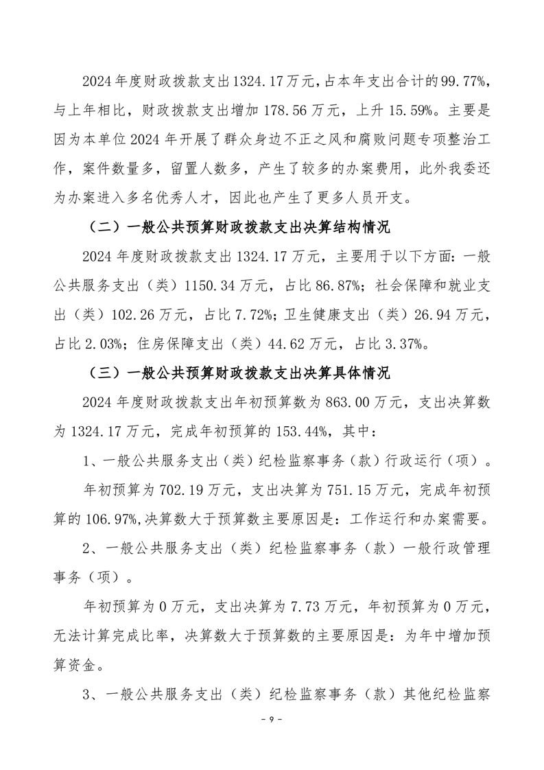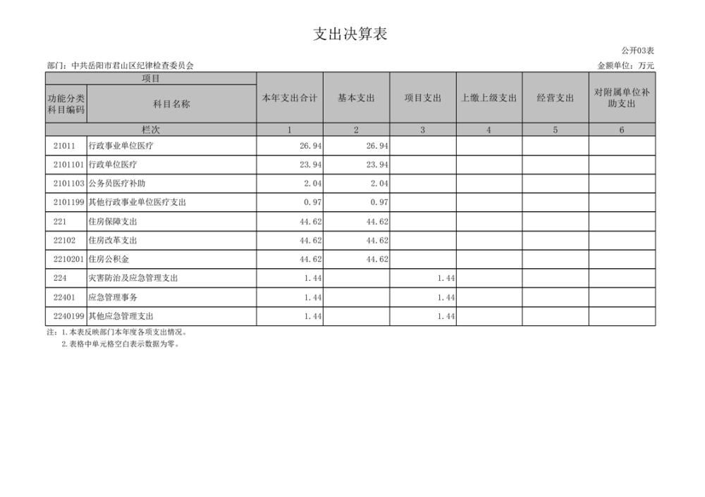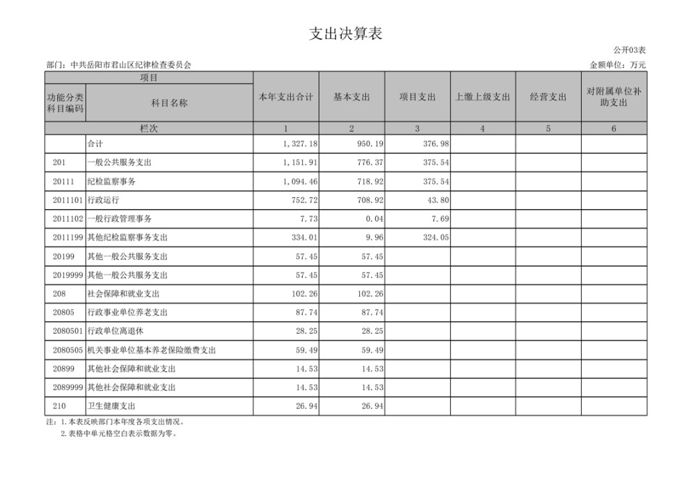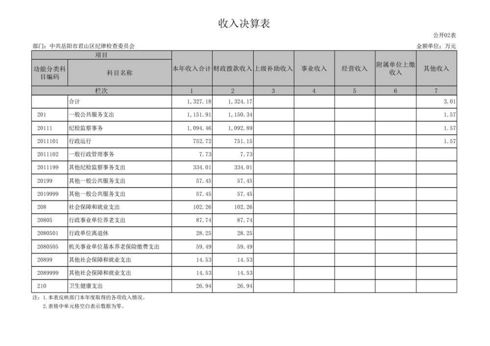 2024年度中共岳阳市君山区纪律检查委员会部门决算公开