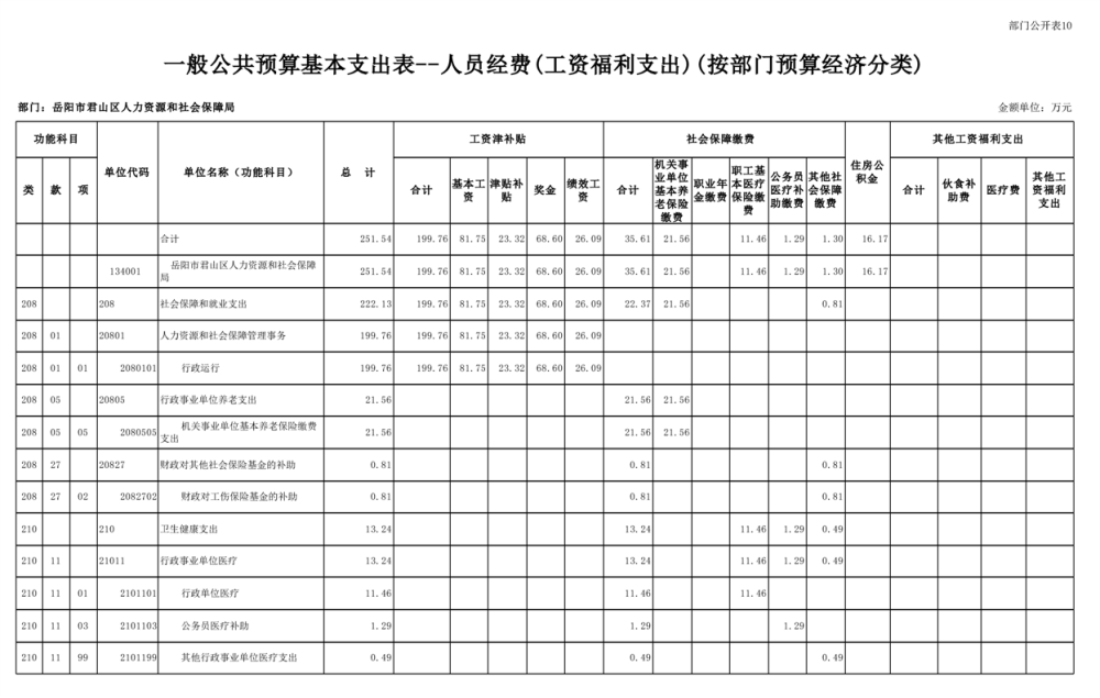 2023年岳阳市君山区人力资源和社会保障局(本级)部门预算公开说明
