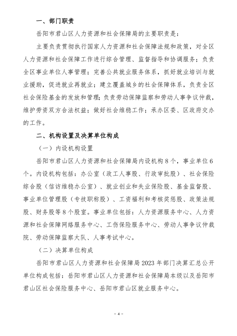 2023年度岳阳市君山区人力资源和社会保障局(汇总)决算公开