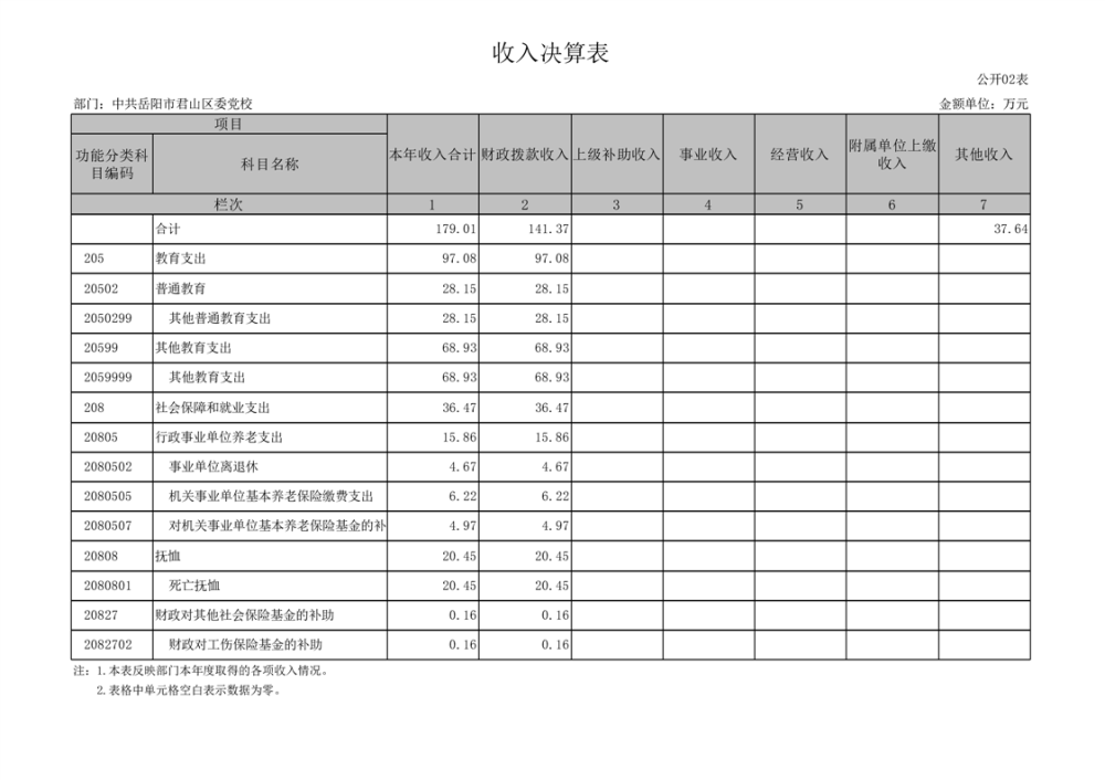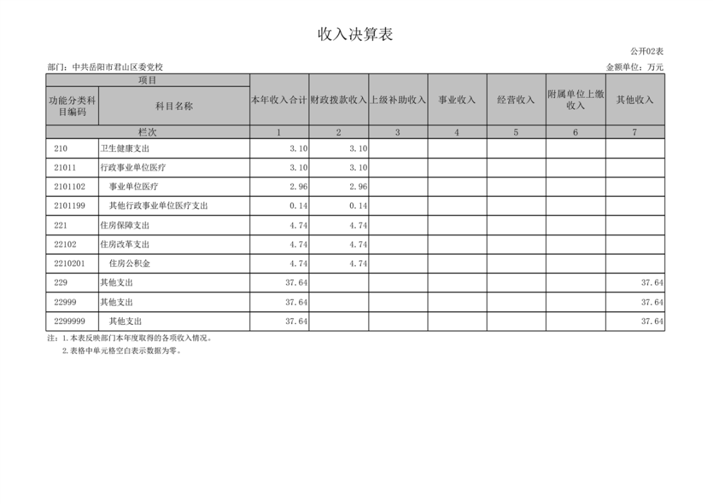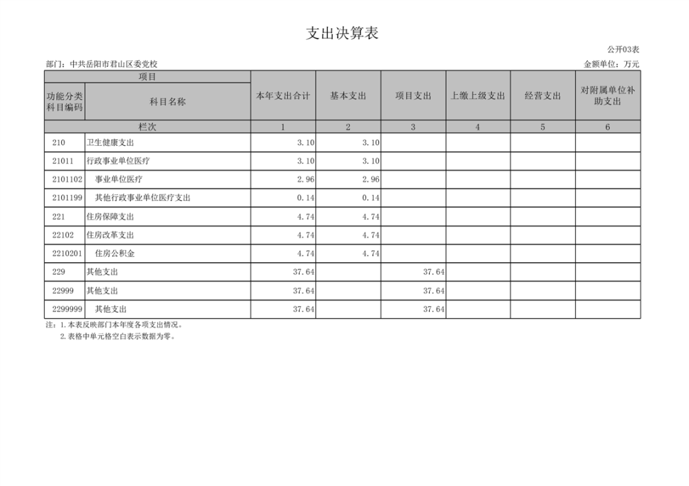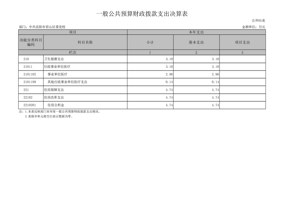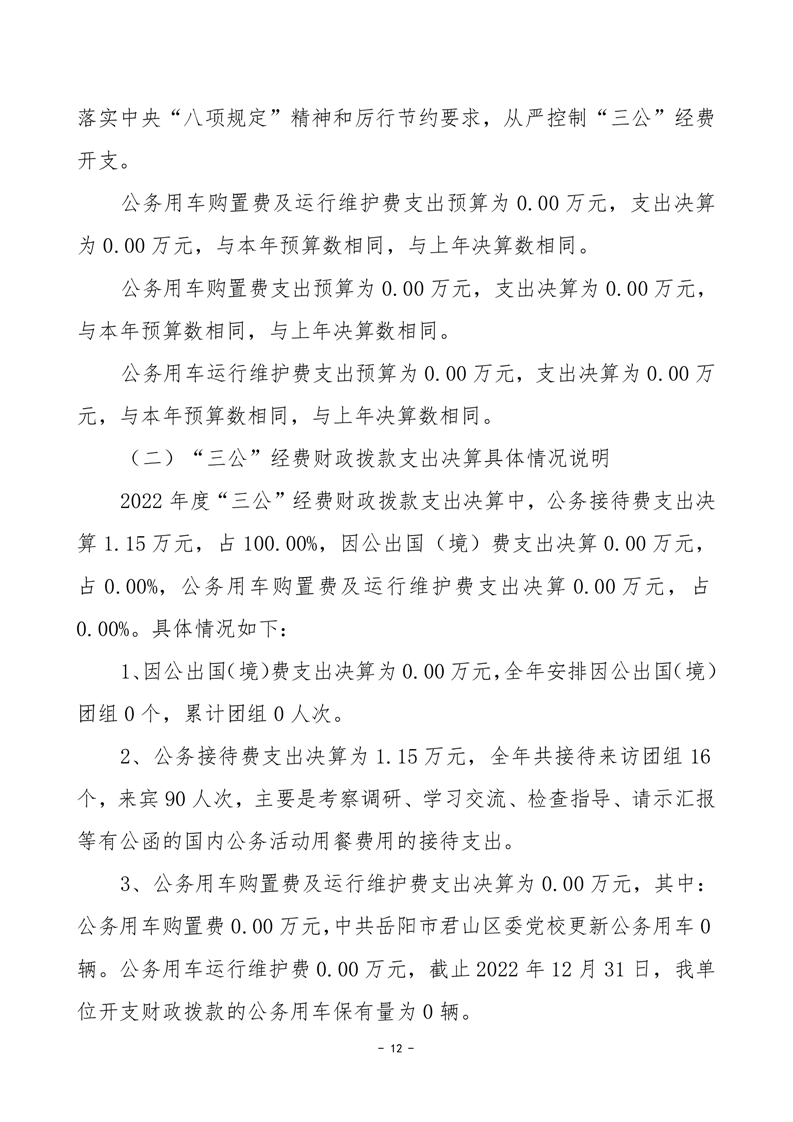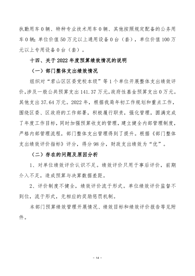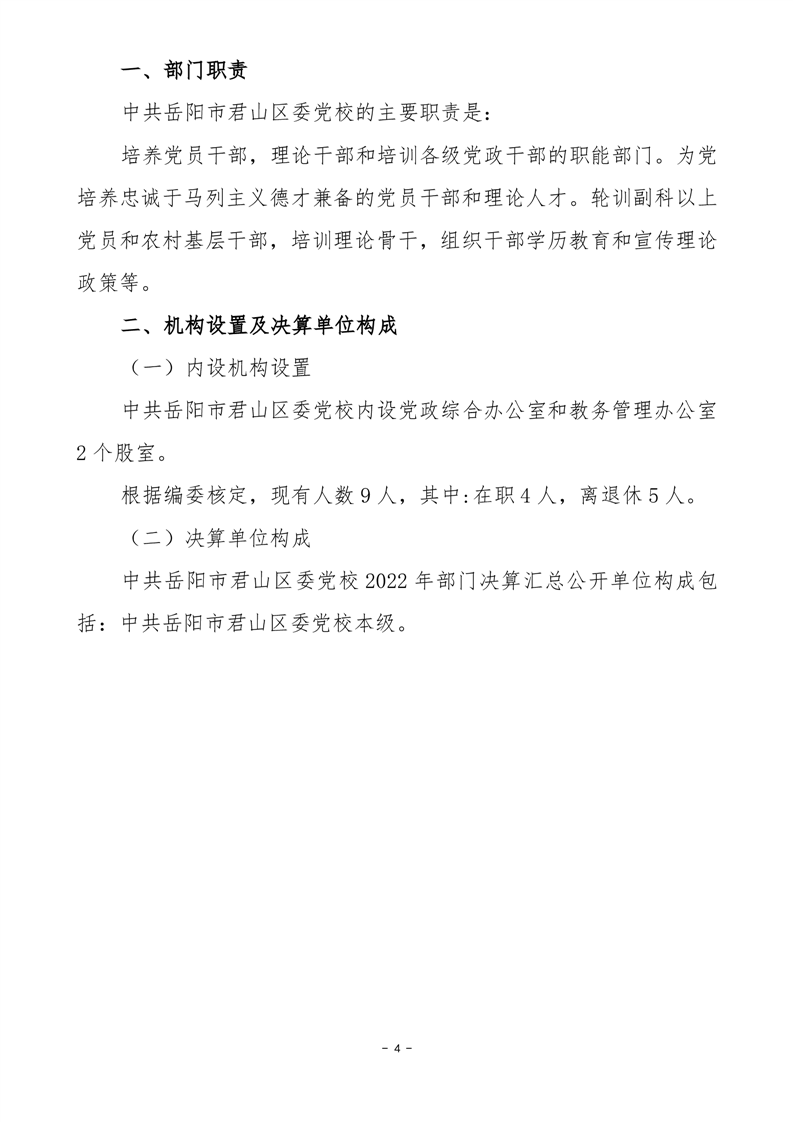 2022年度中共岳阳市君山区委党校部门决算公开说明