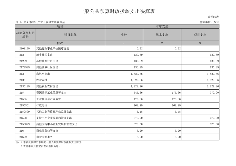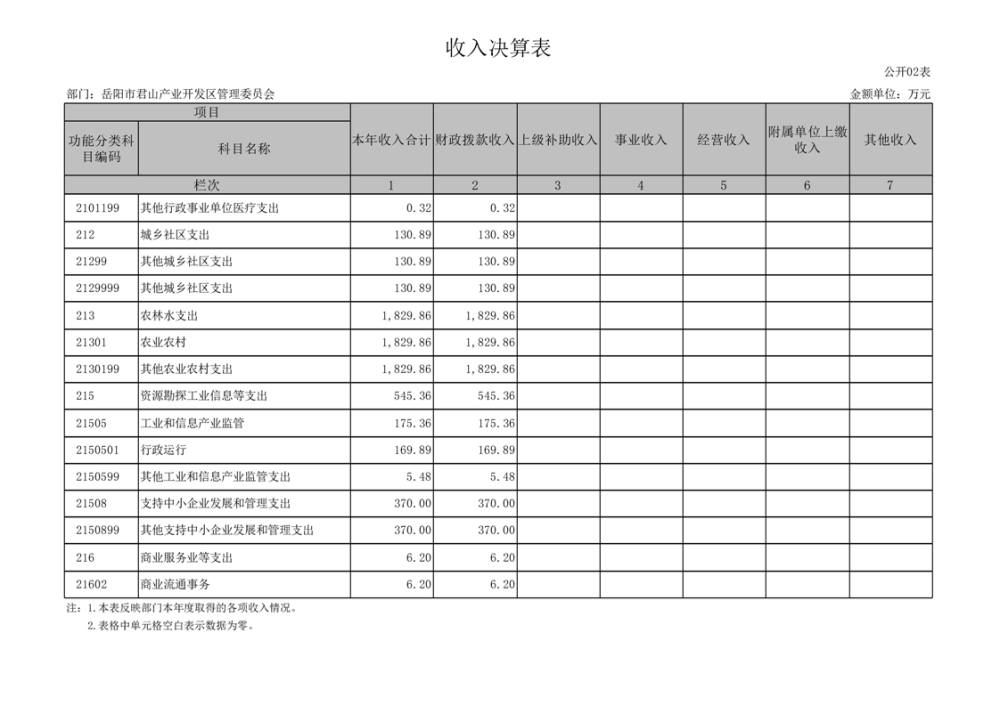 2024年度岳阳市君山产业开发区管理委员会部门决算公开