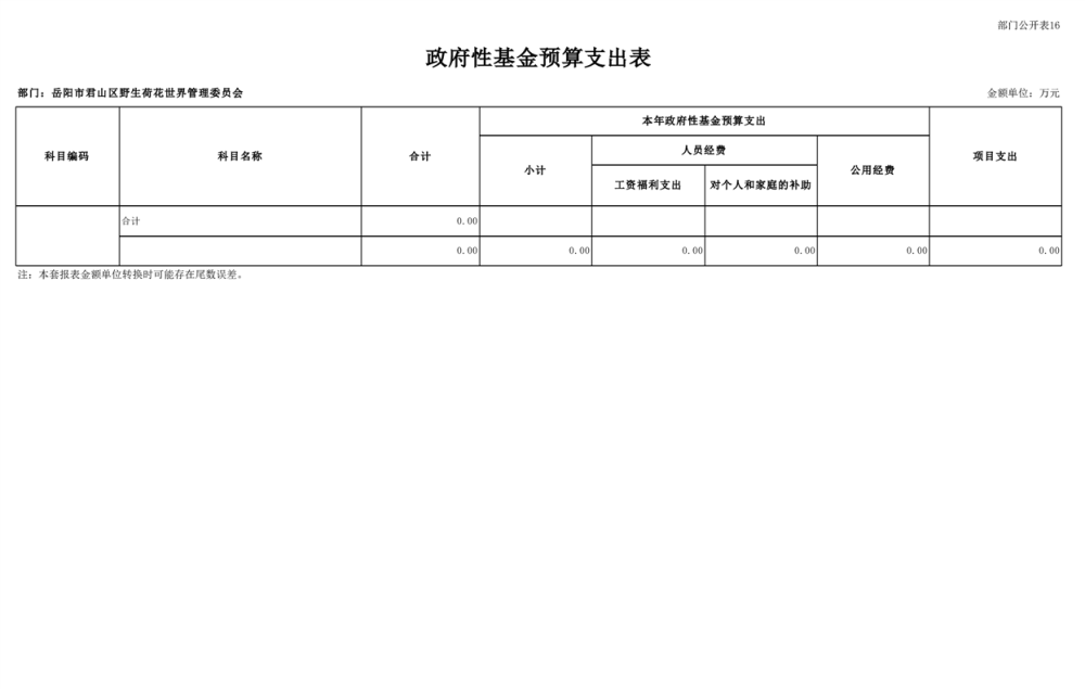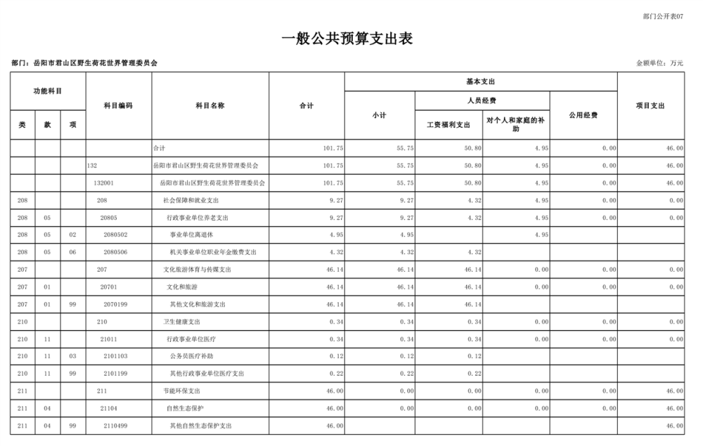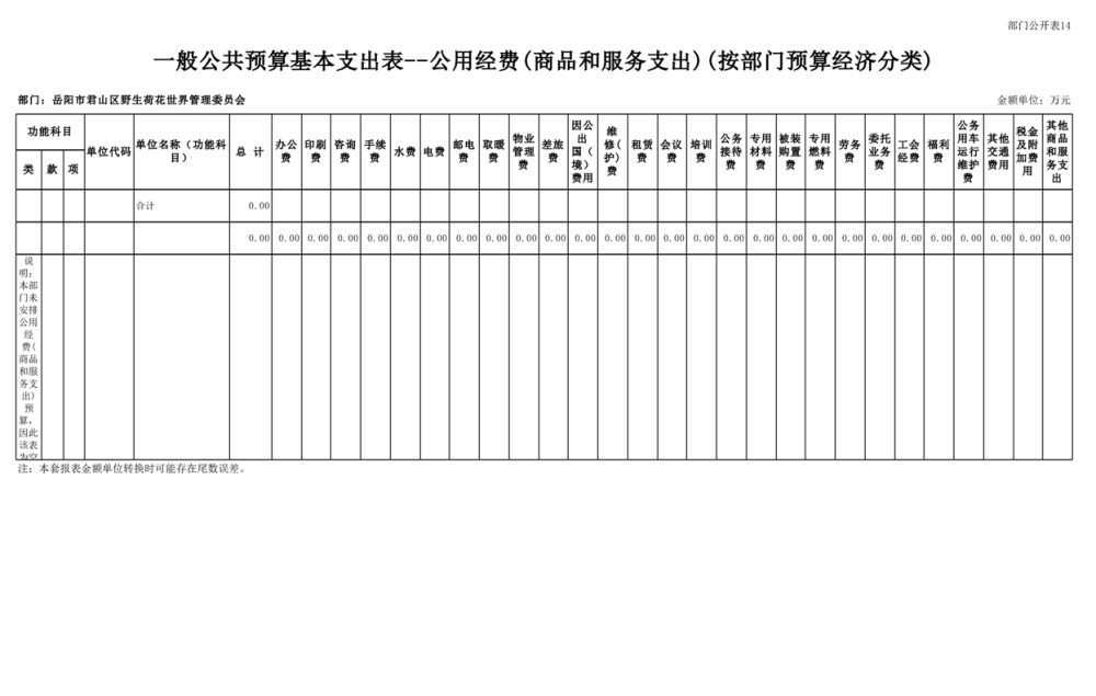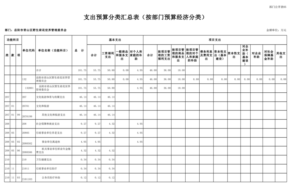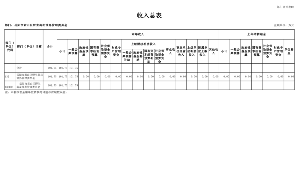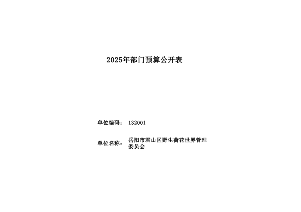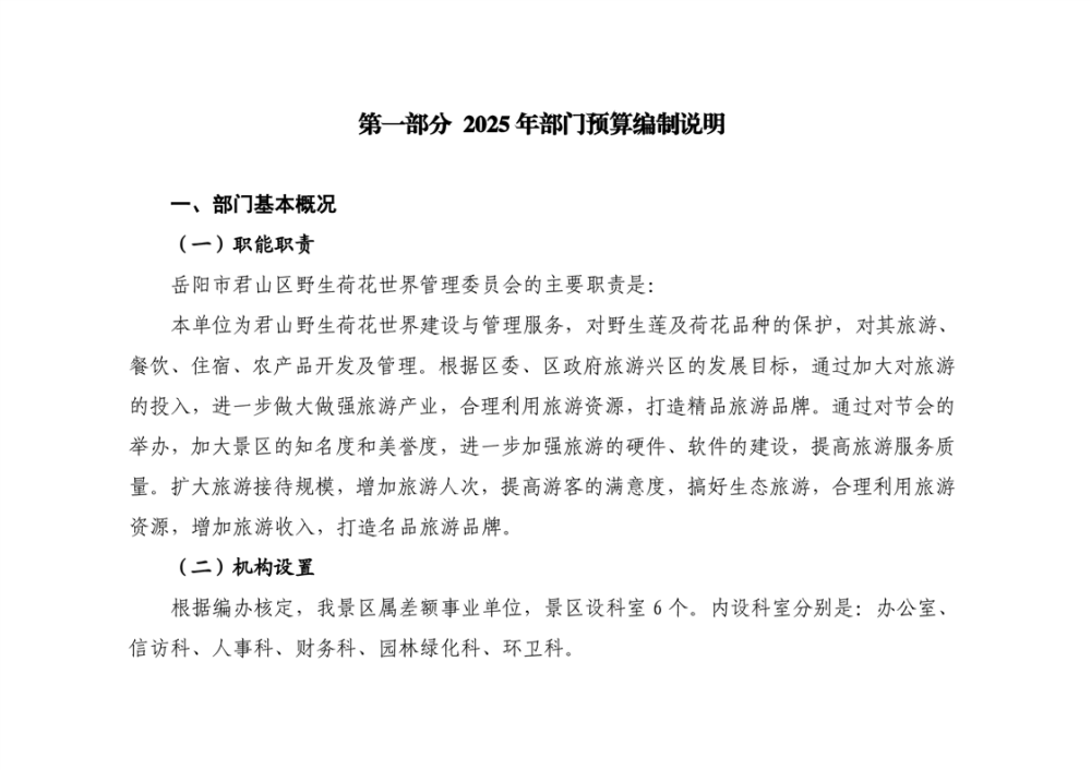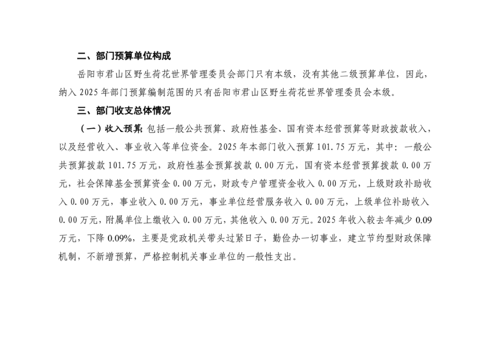 2025年岳阳市君山区野生荷花世界管理委员会部门预算公开