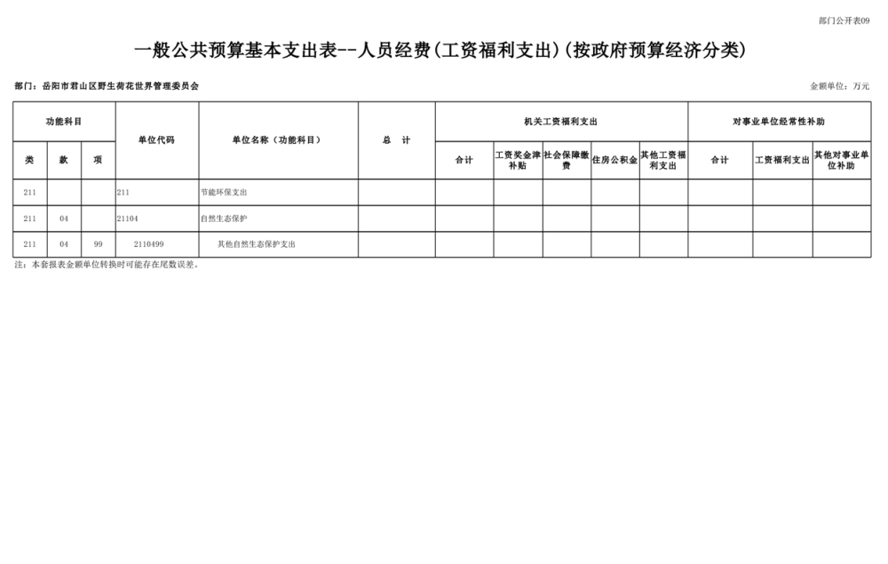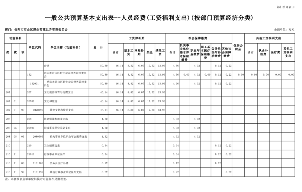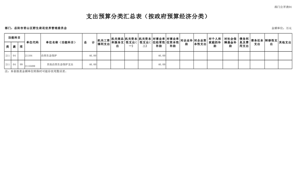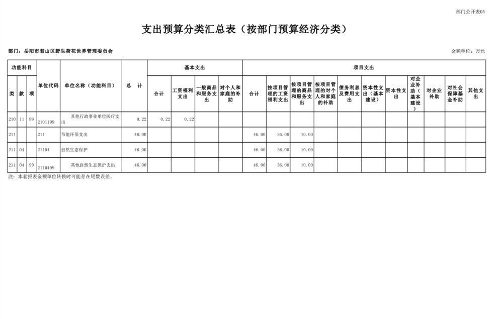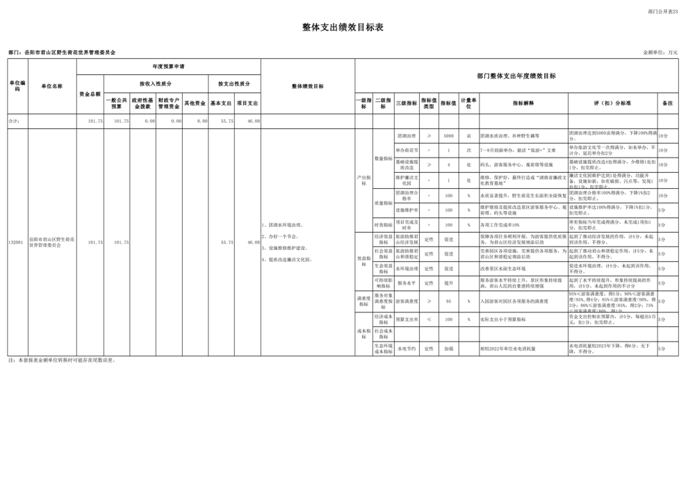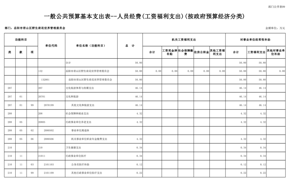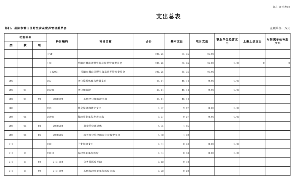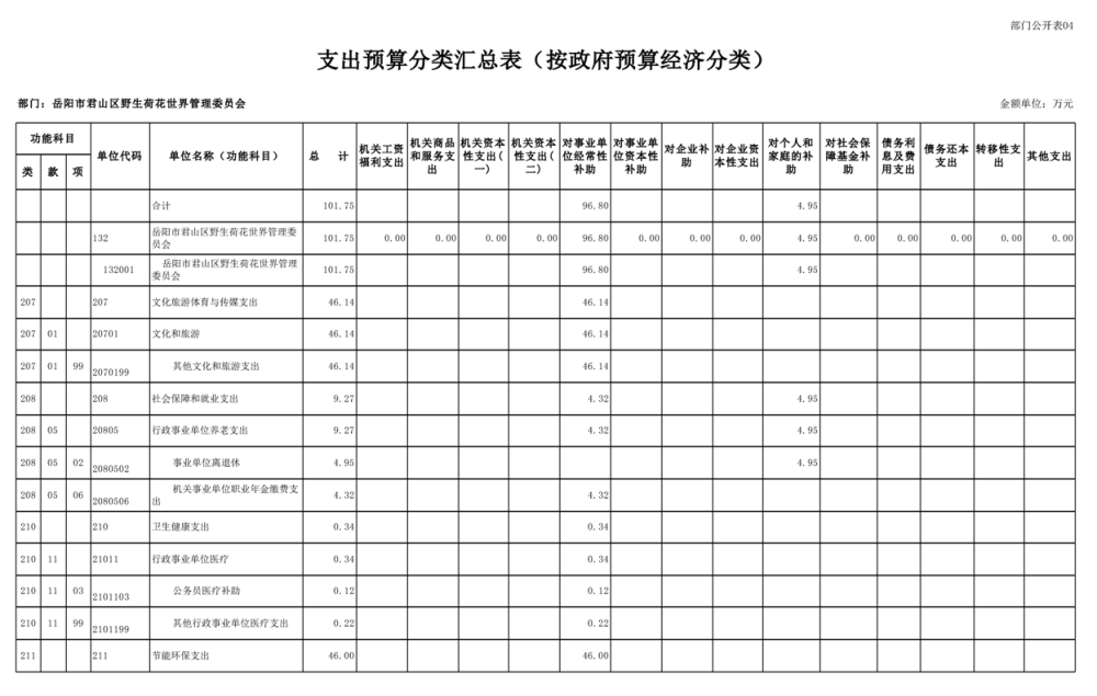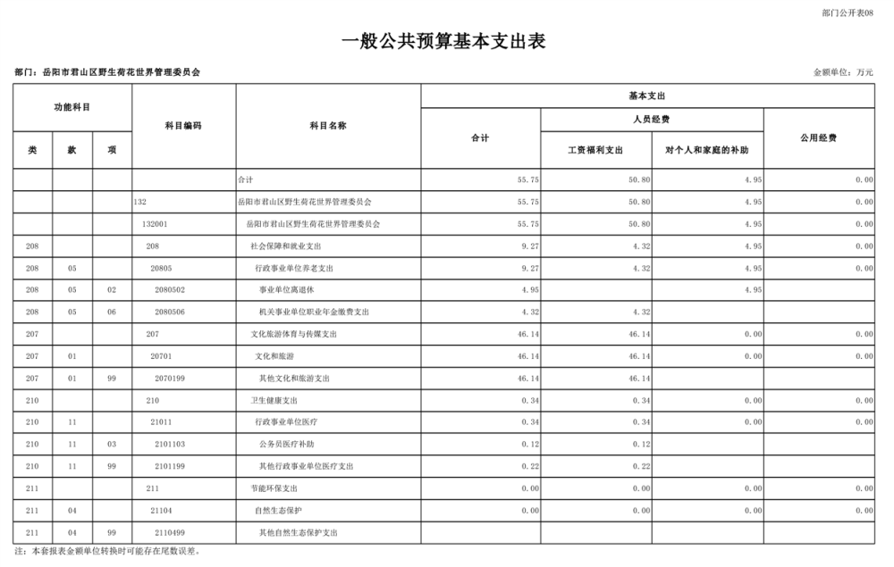 2025年岳阳市君山区野生荷花世界管理委员会部门预算公开