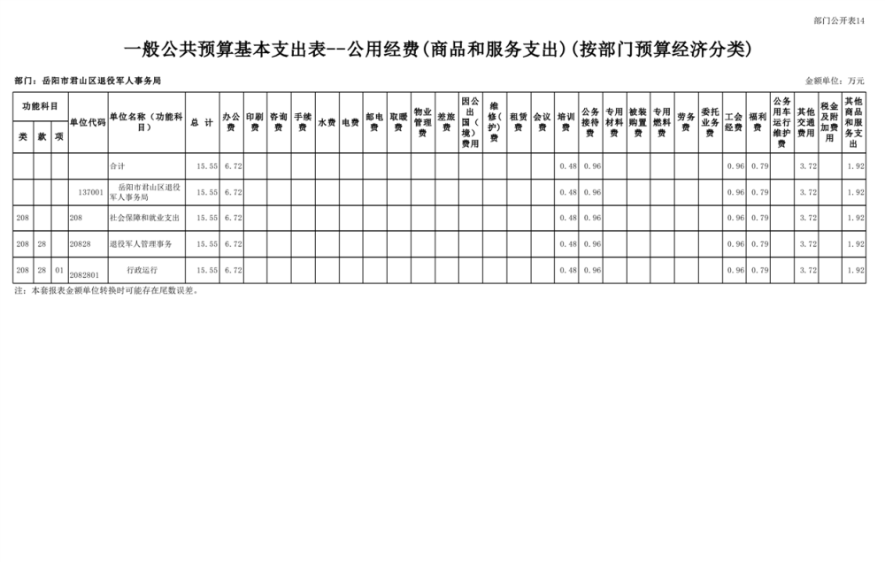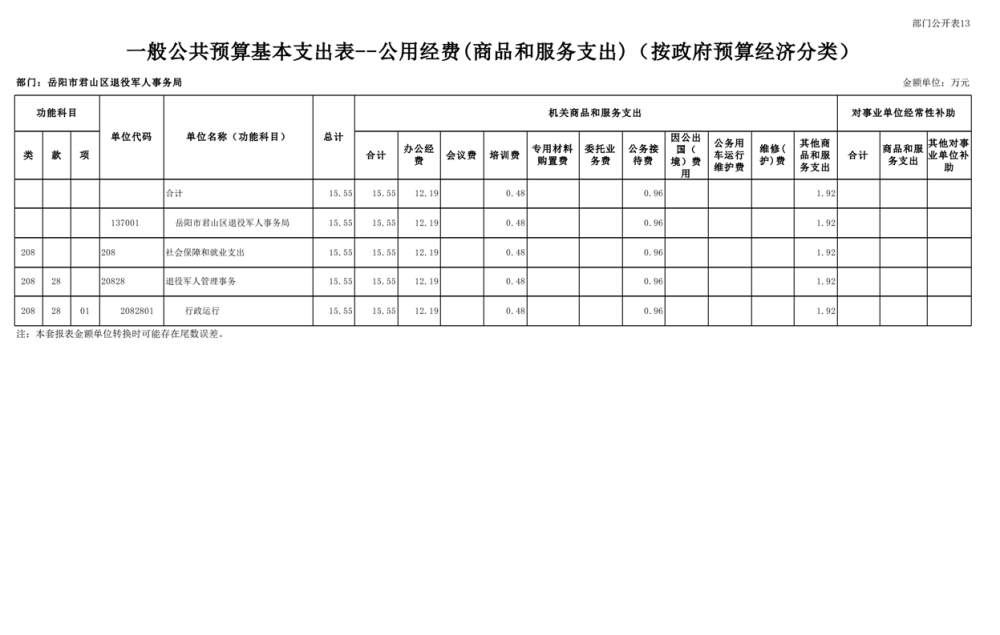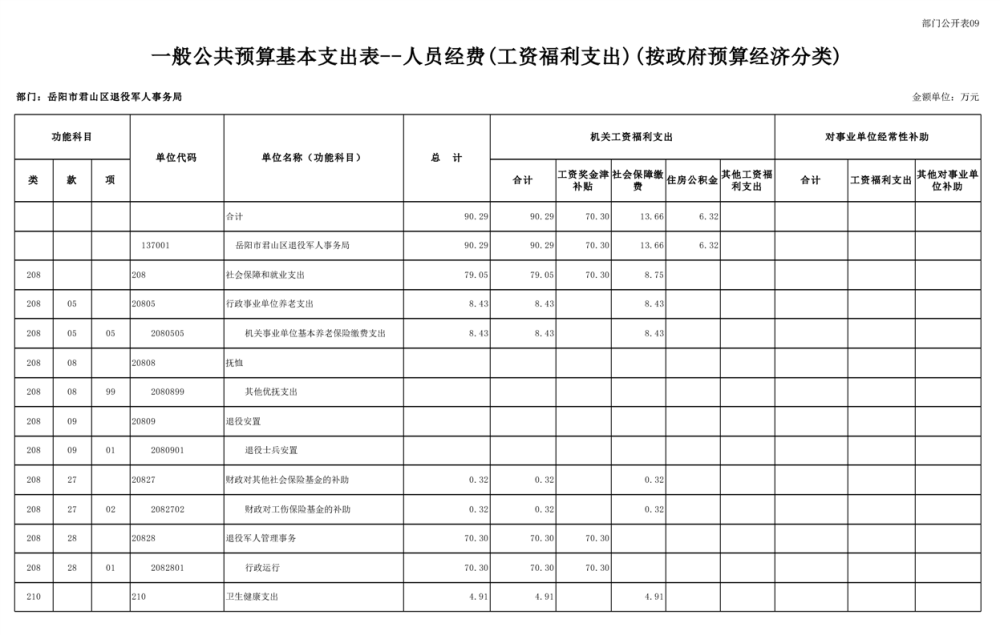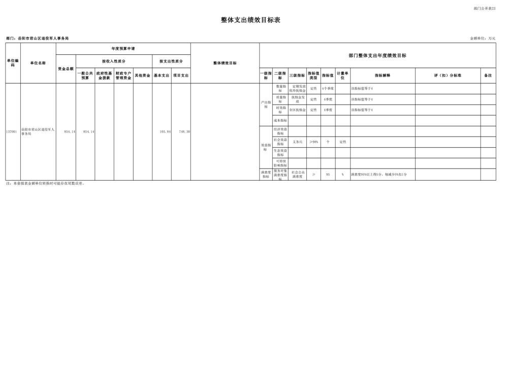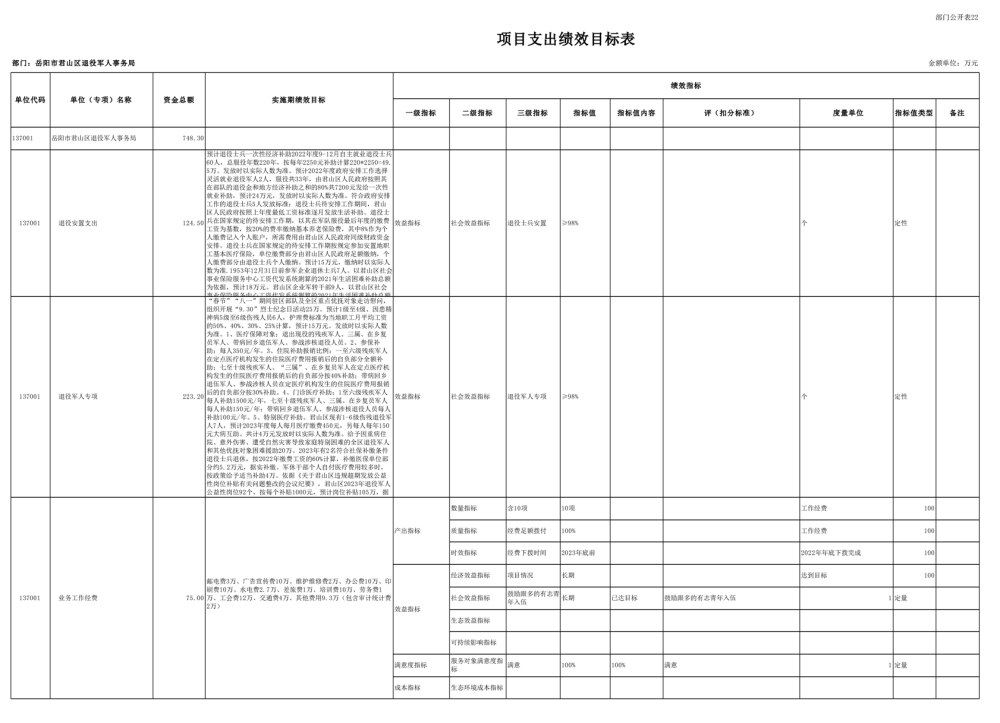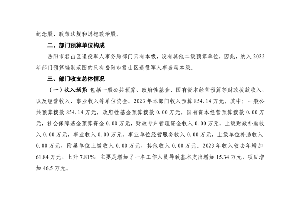 2023年岳阳市君山区退役军人事务局(本级)部门预算公开说明