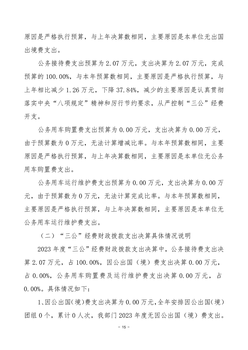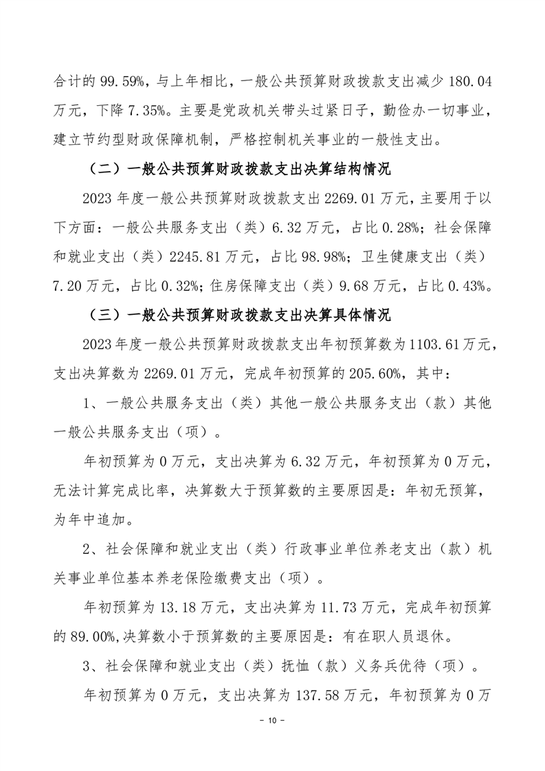 2023年度岳阳市君山区退役军人事务局(汇总)决算公开