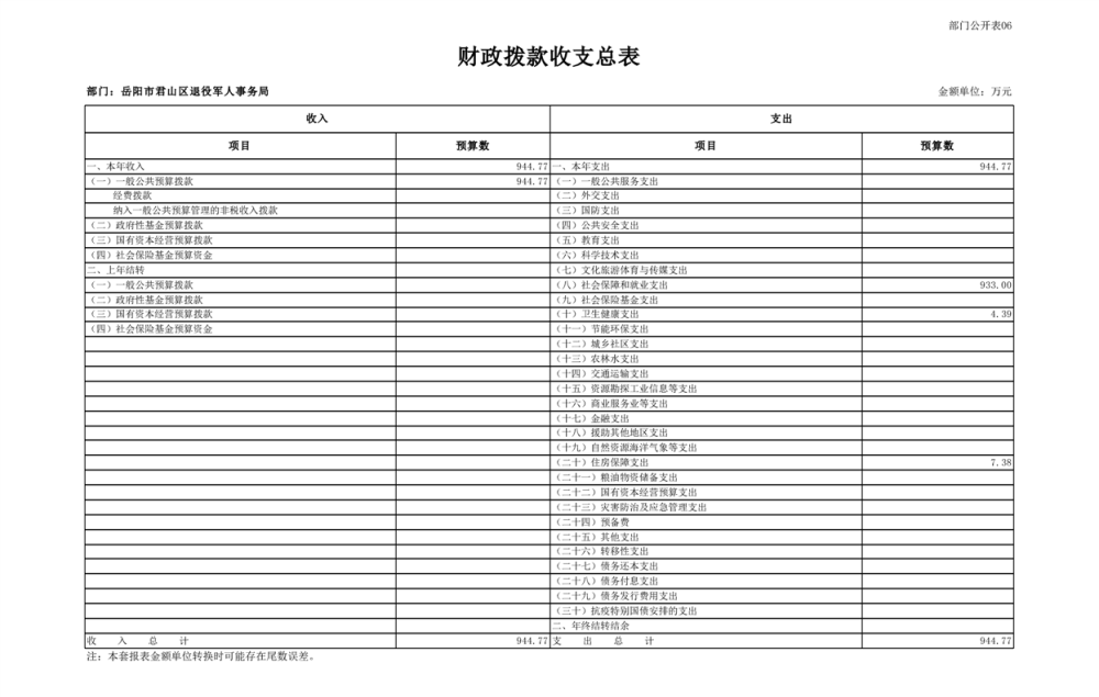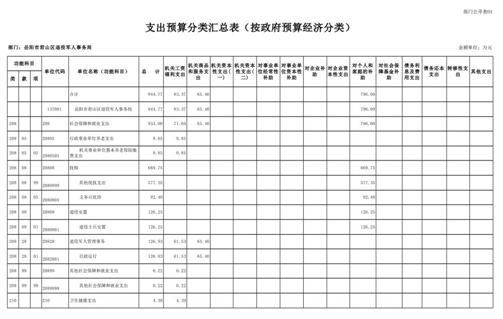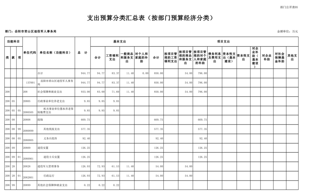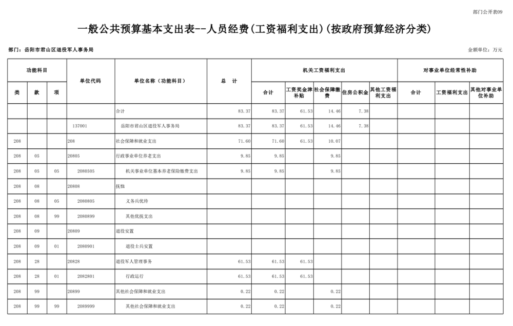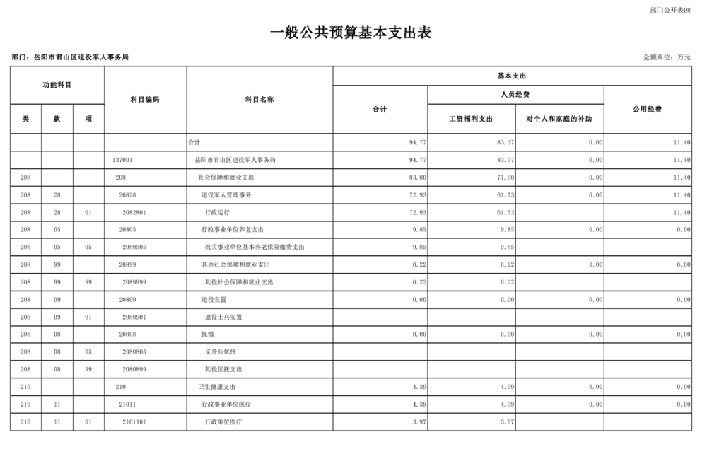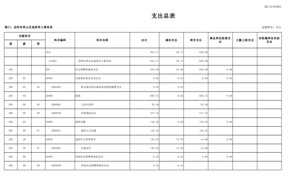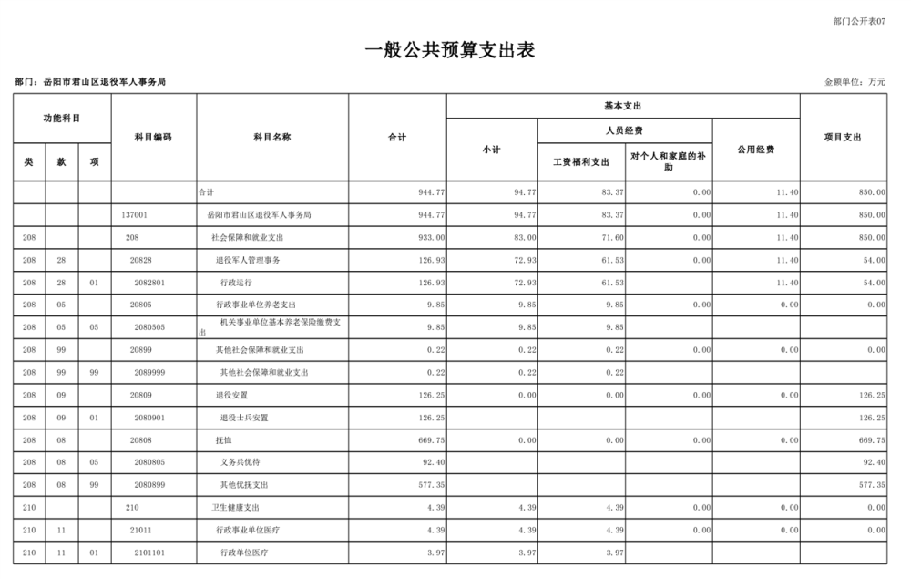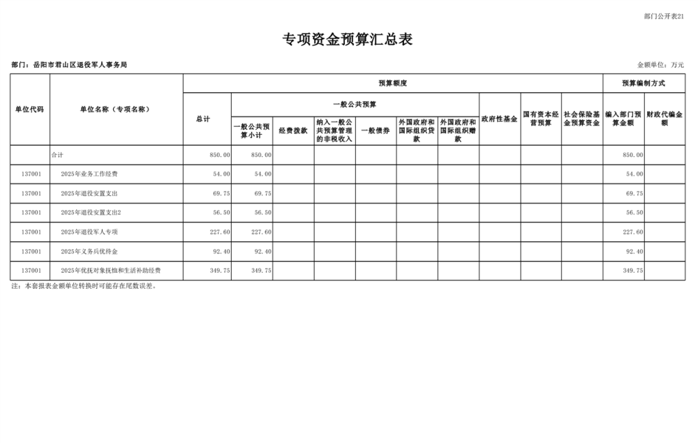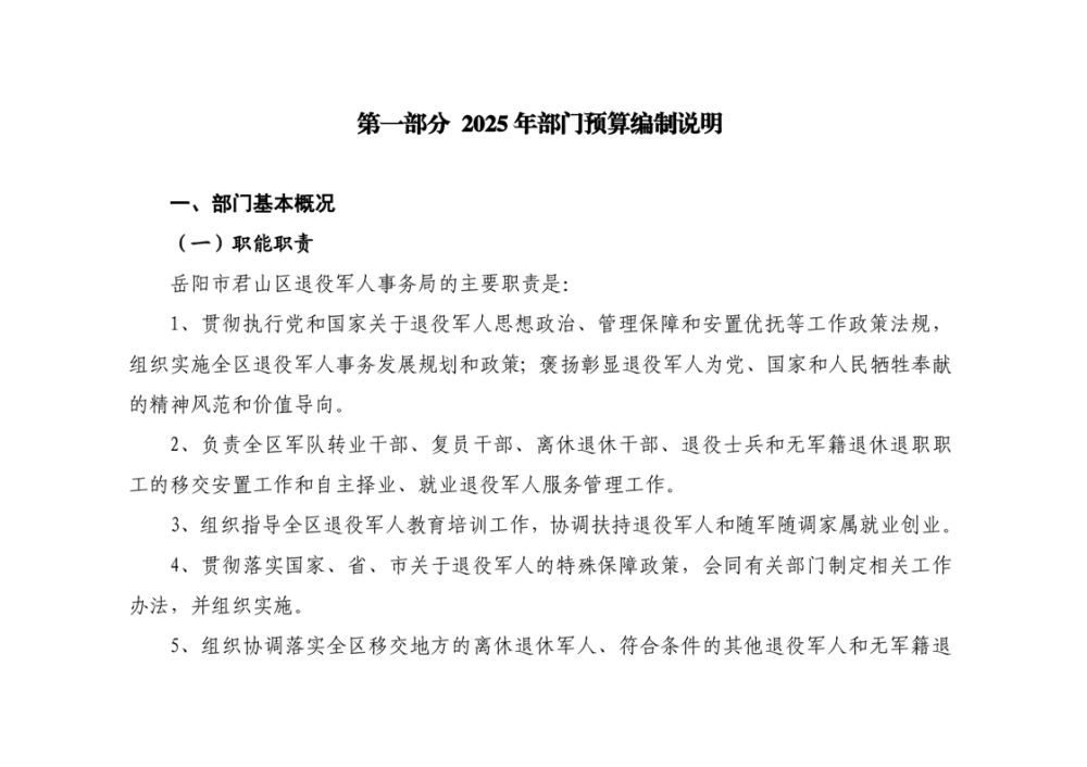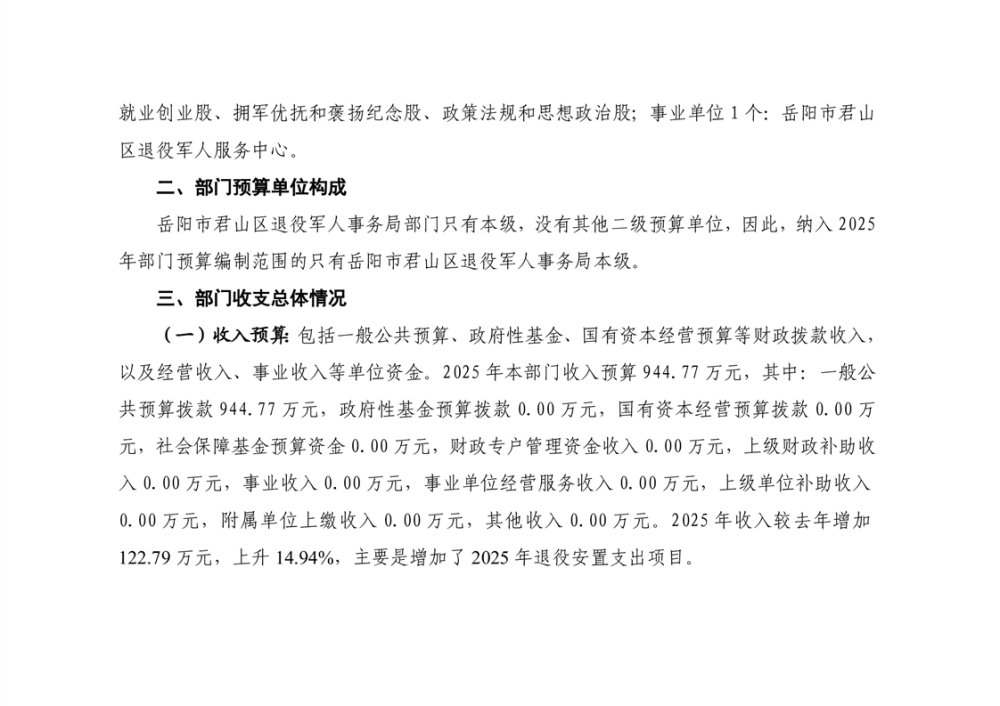 2025年岳阳市君山区退役军人事务局(本级)部门预算公开
