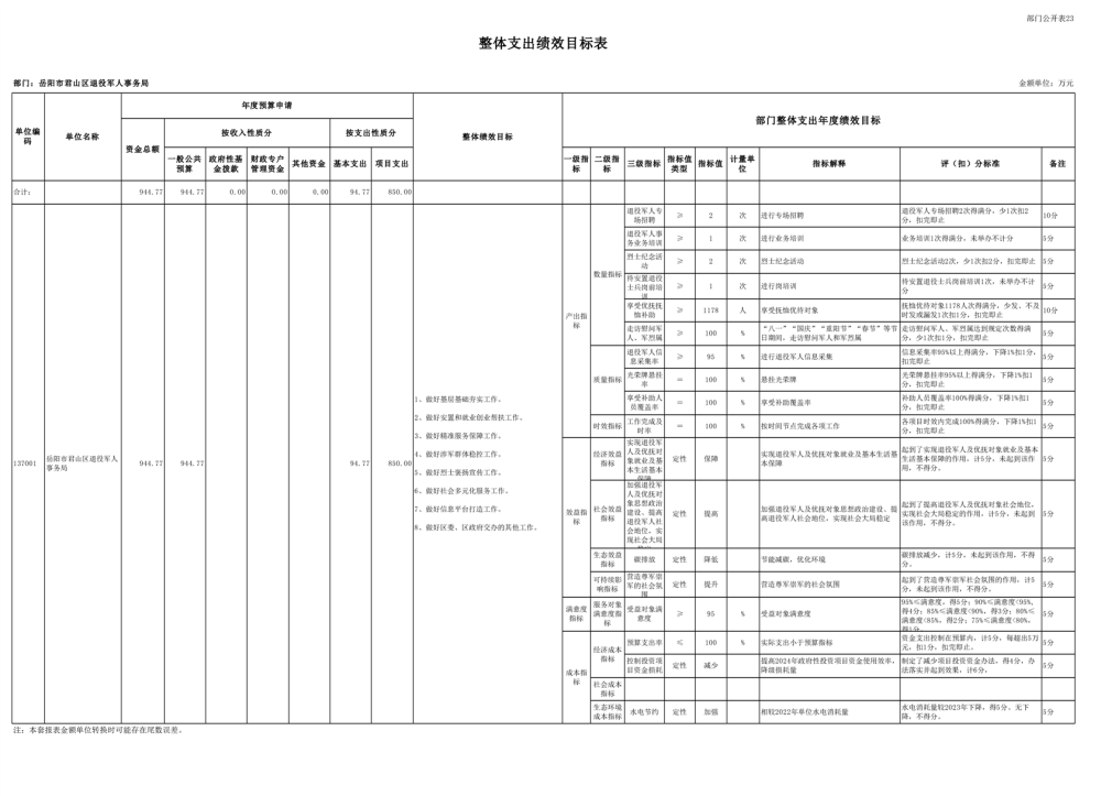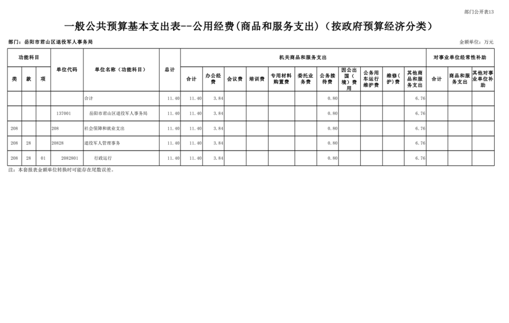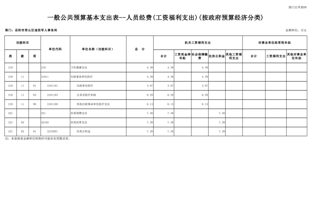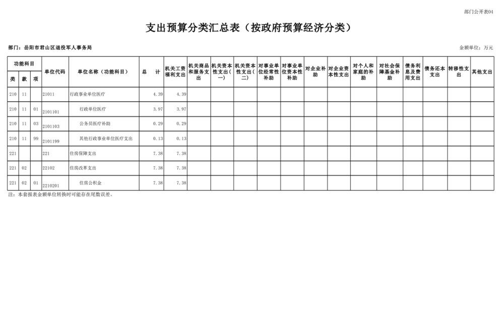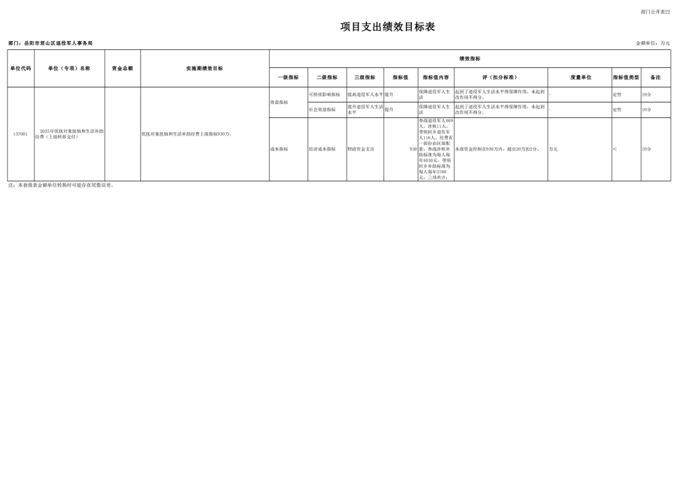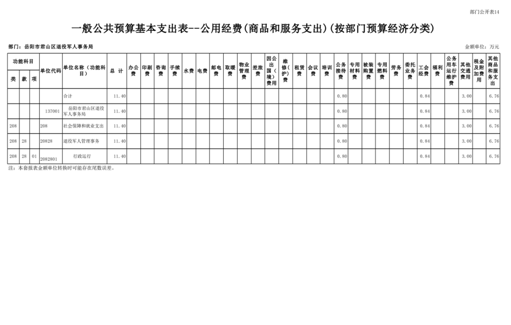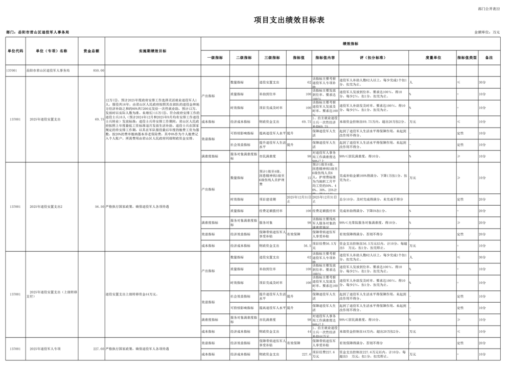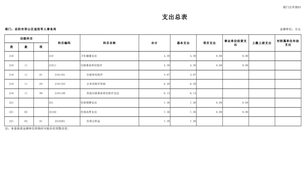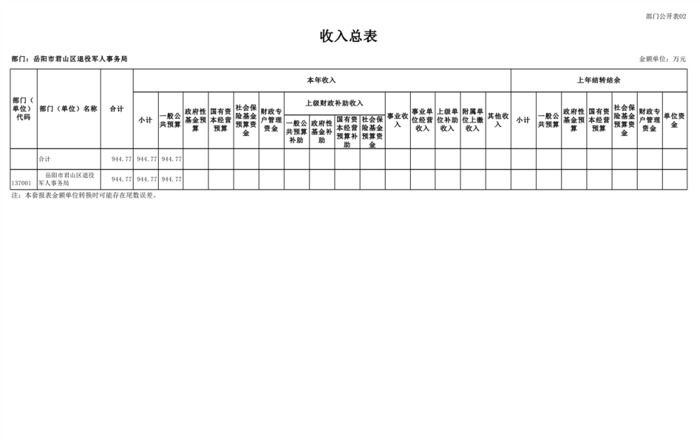 2025年岳阳市君山区退役军人事务局(本级)部门预算公开
