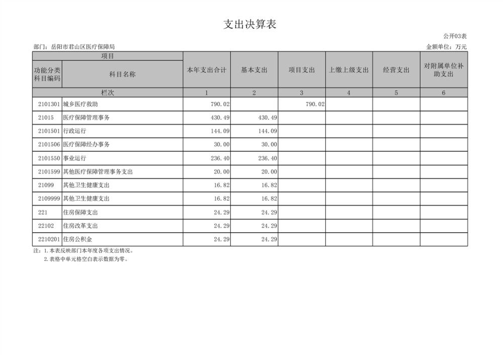 2024年度岳阳市君山区医疗保障局部门决算公开