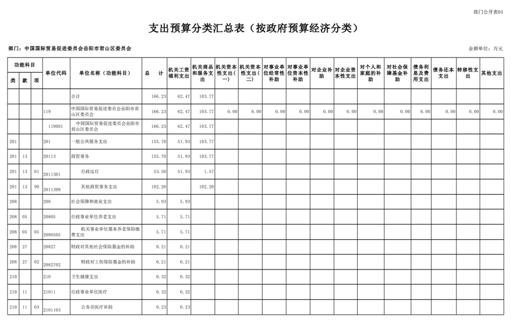 2023年中国国际贸易促进委员会岳阳市君山区委员会预算公开说明