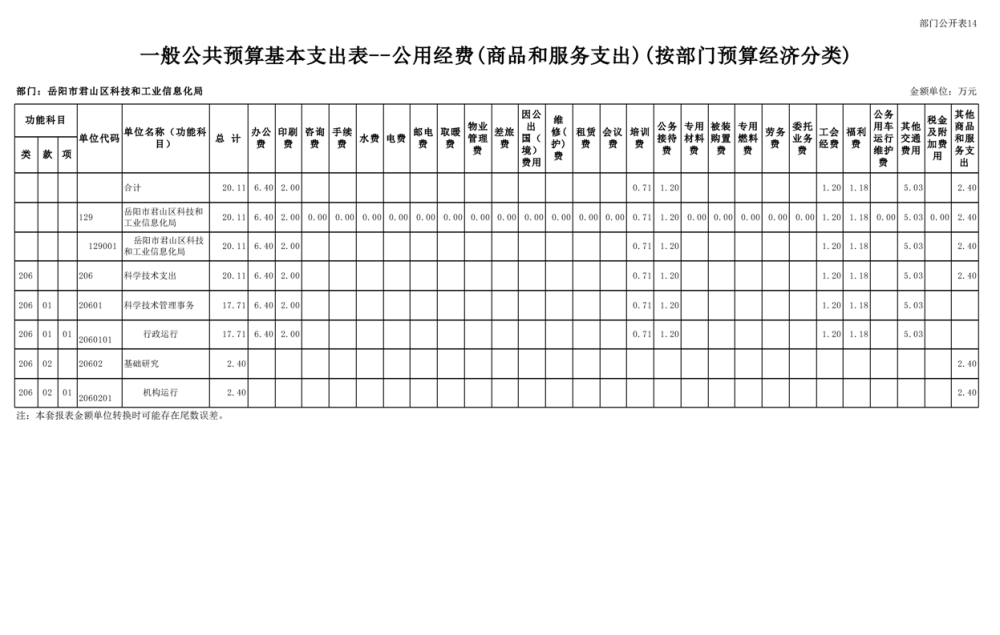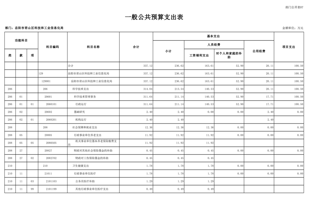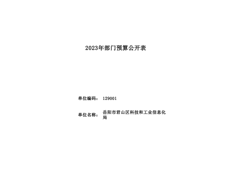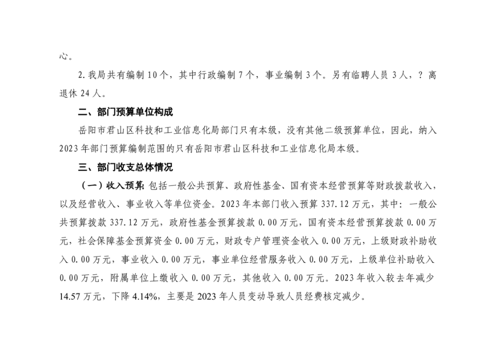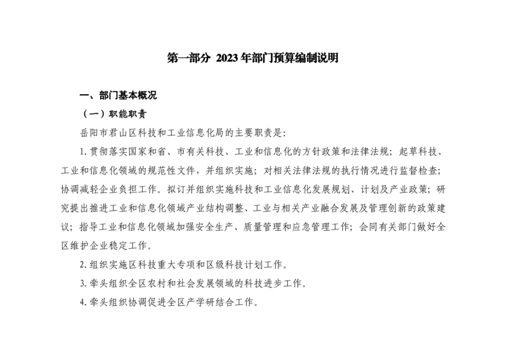 2023年岳阳市君山区科技和工业信息化局部门预算公开说明