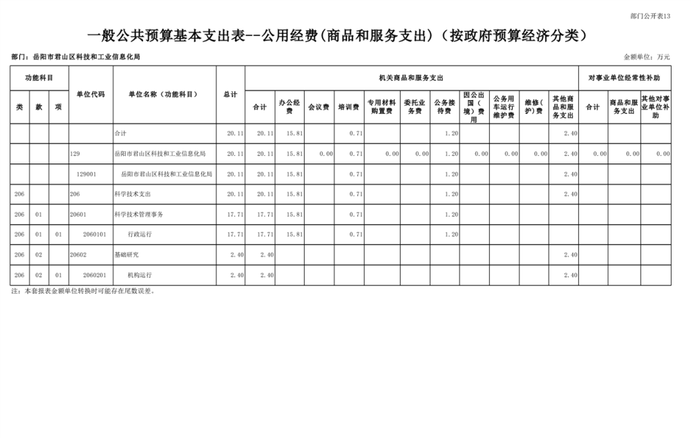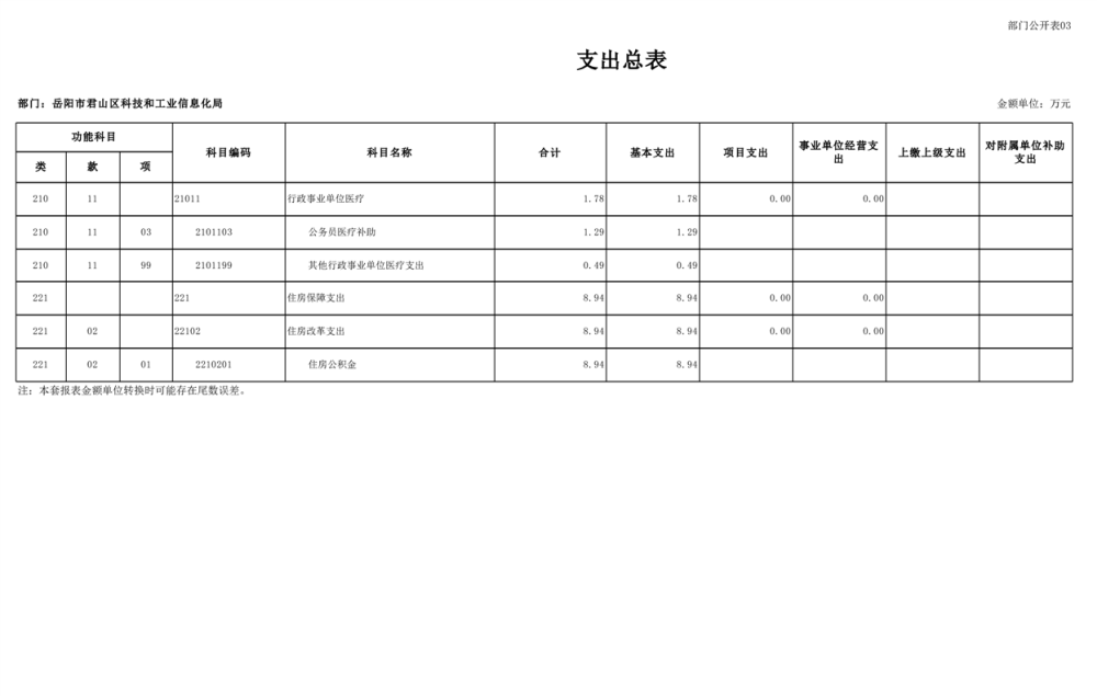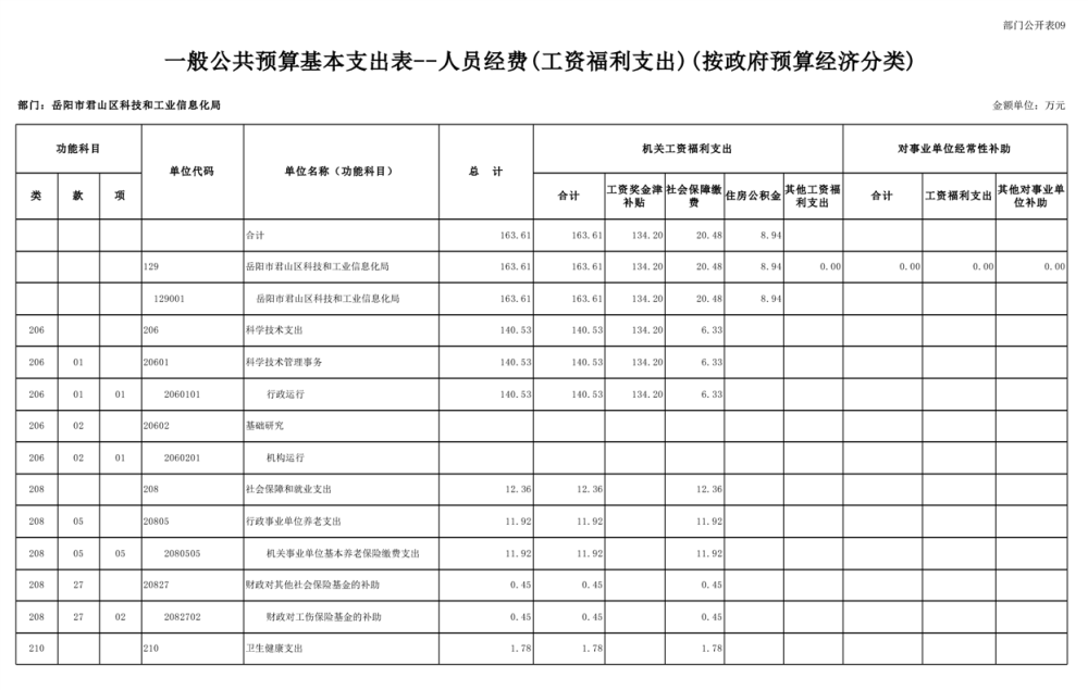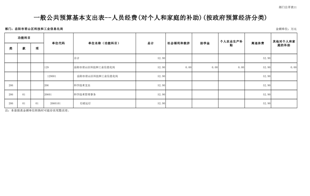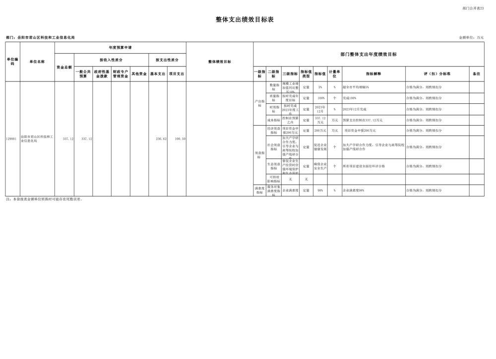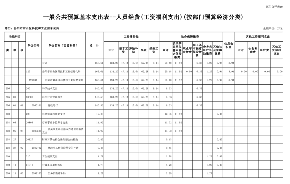 2023年岳阳市君山区科技和工业信息化局部门预算公开说明