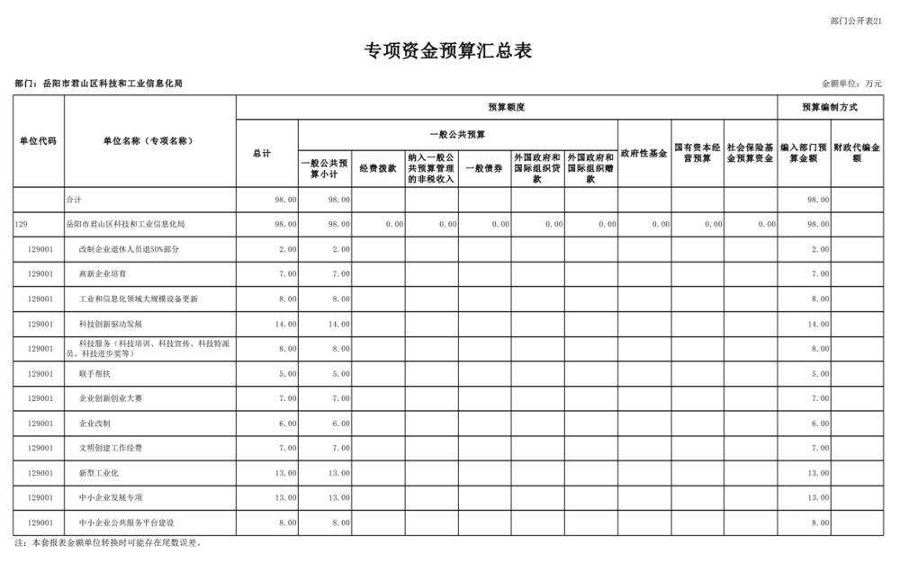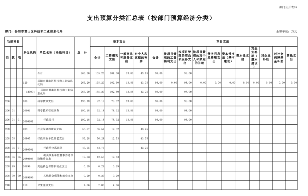 2025年岳阳市君山区科技和工业信息化局部门预算公开