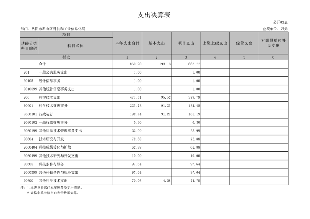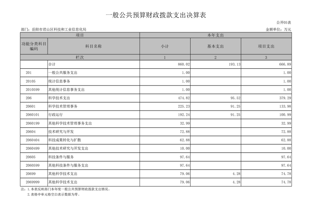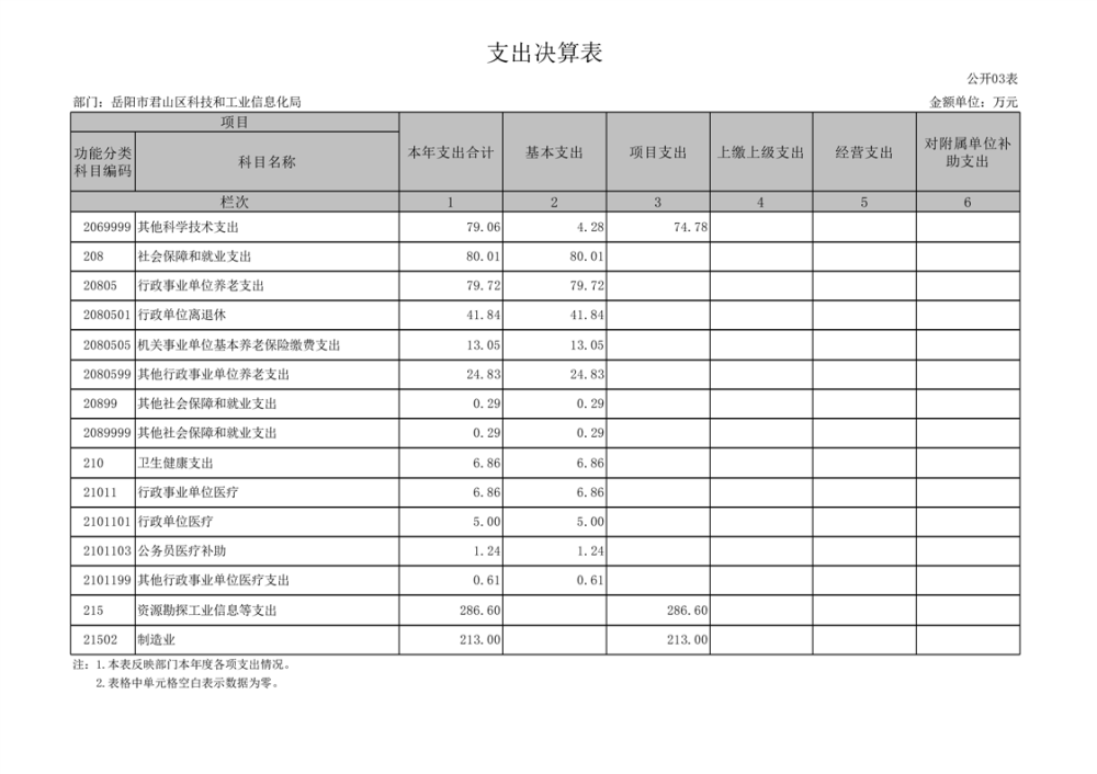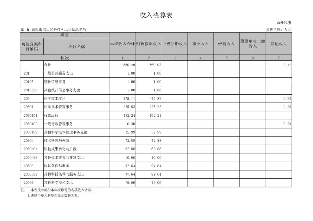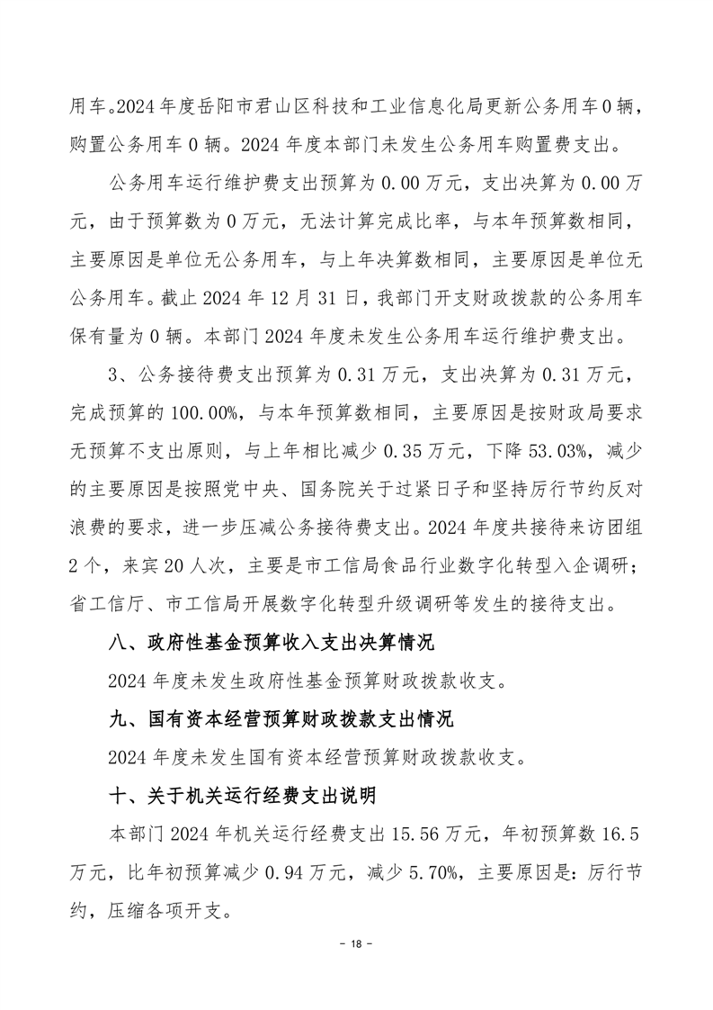 2024年度岳阳市君山区科技和工业信息化局部门决算公开