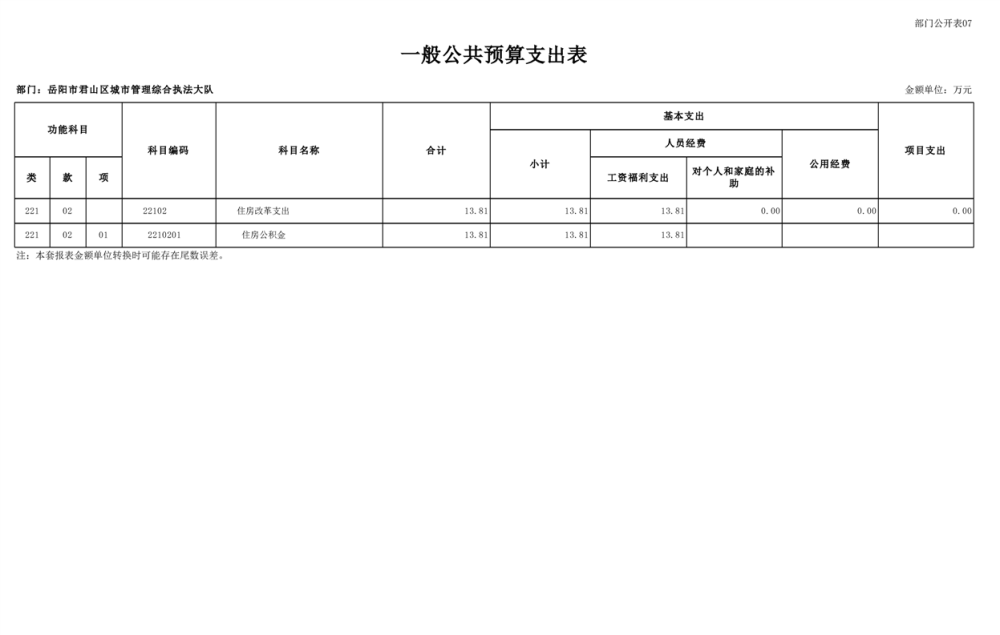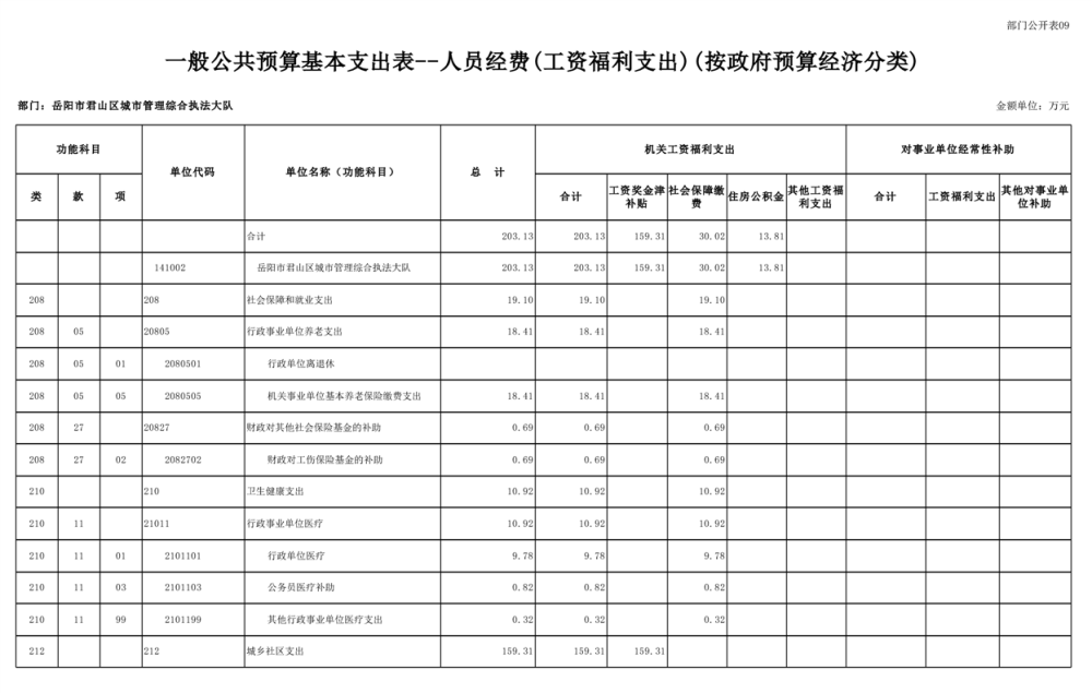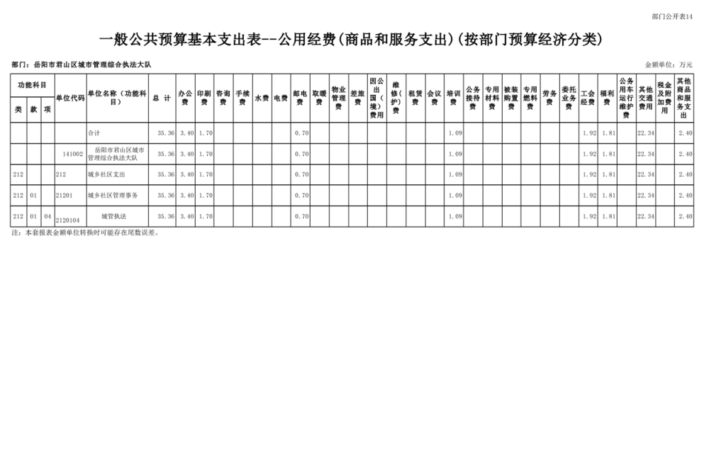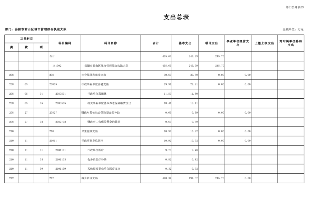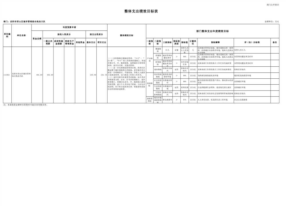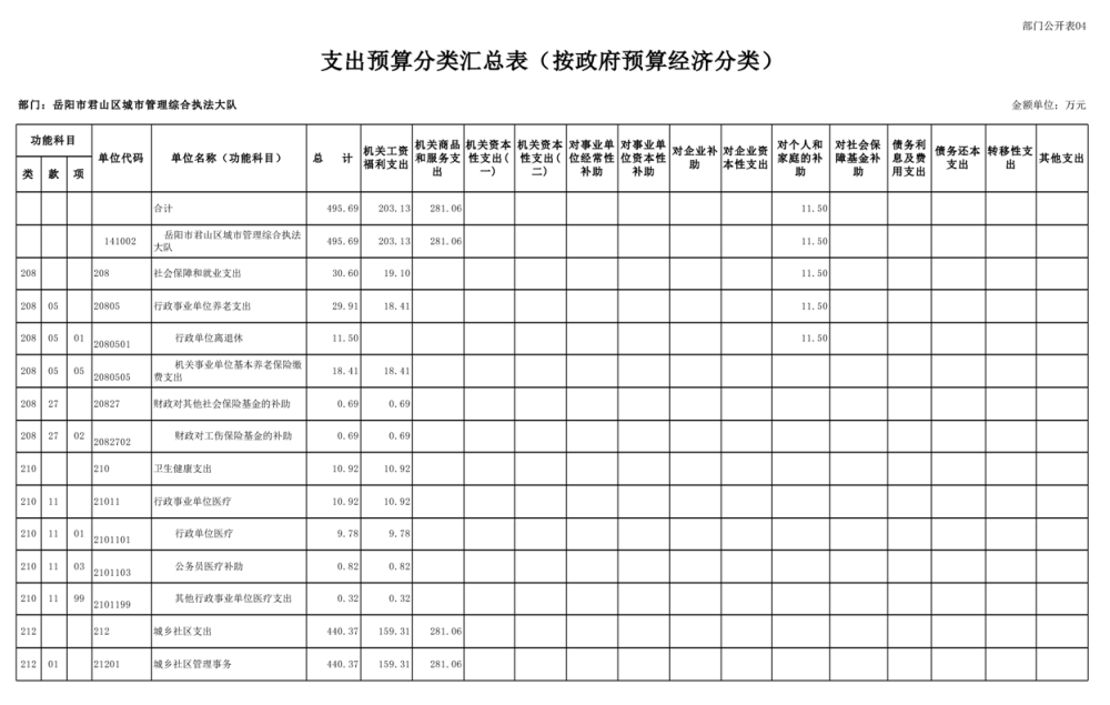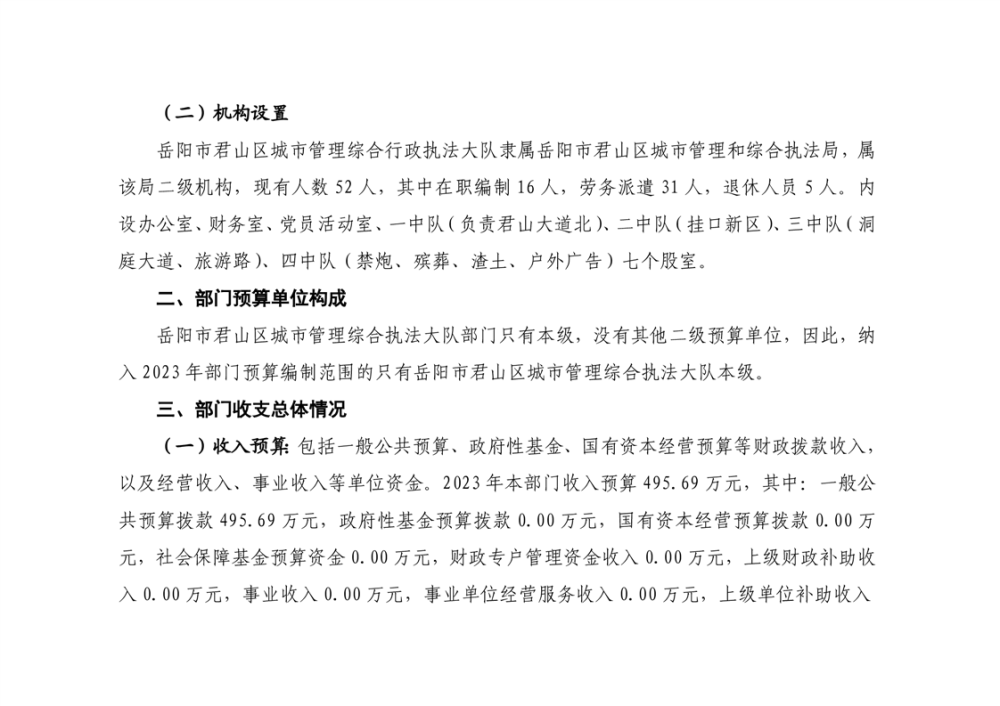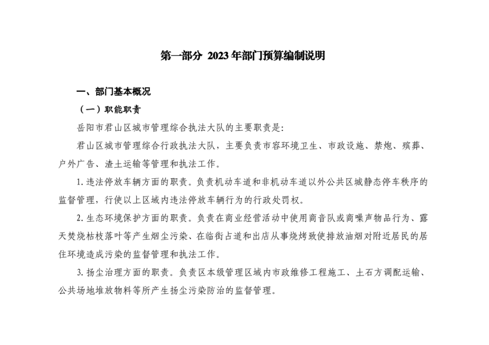 2023年君山区城市管理综合行政执法大队部门预算公开说明