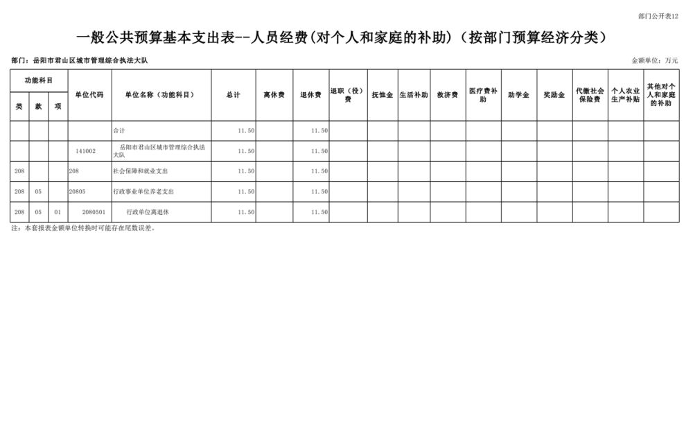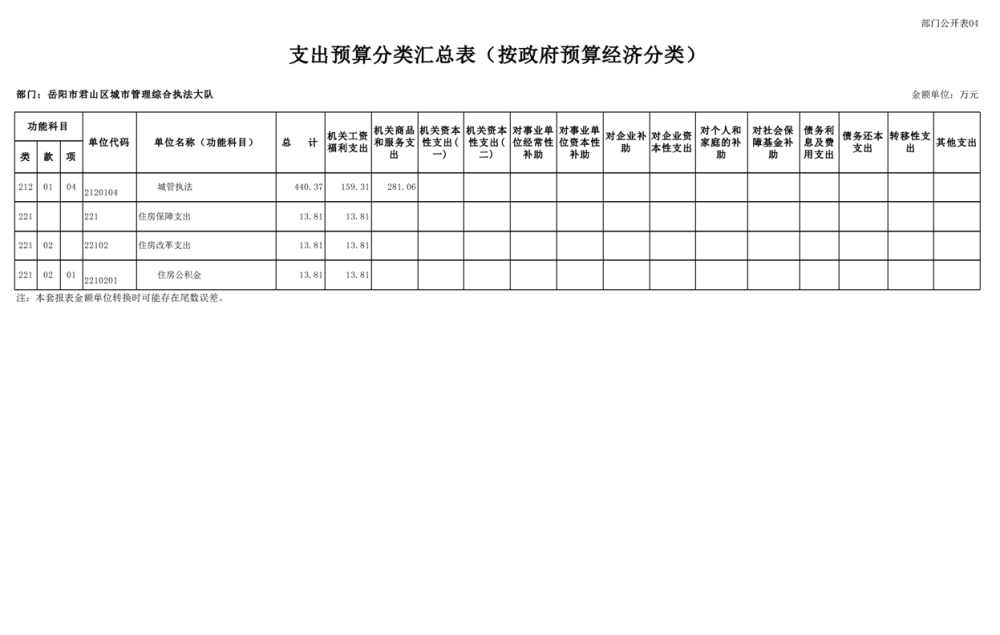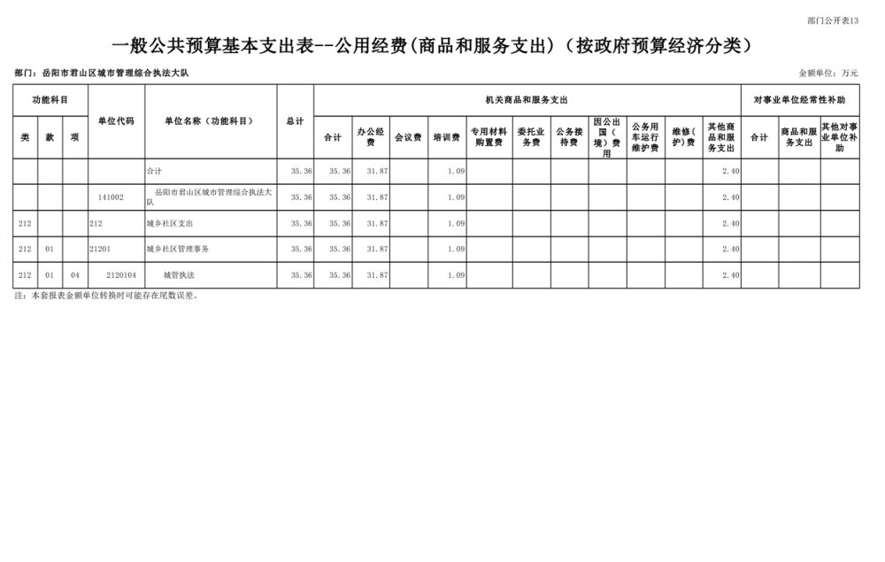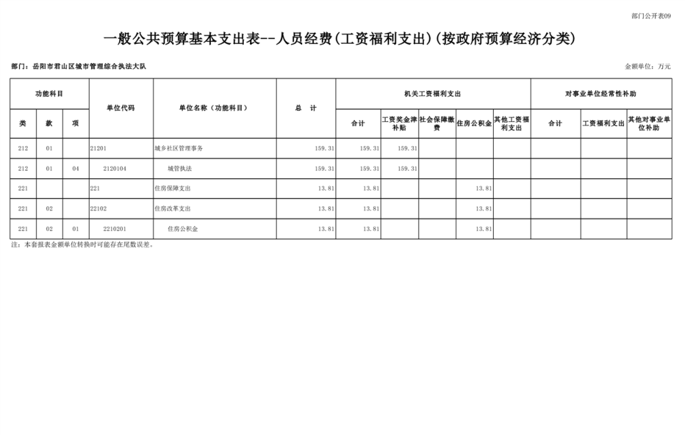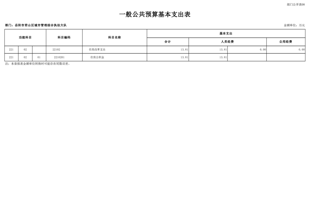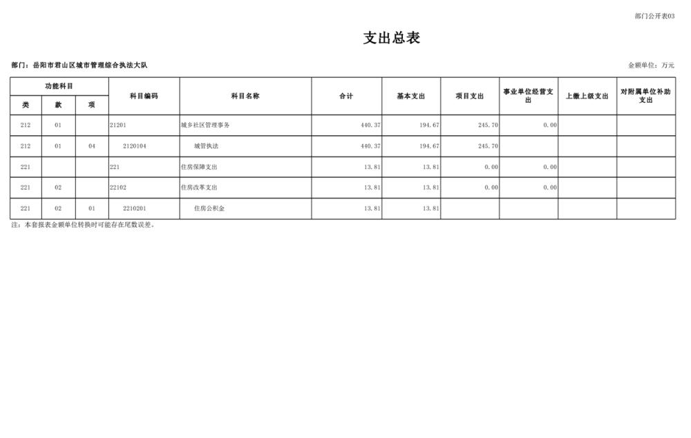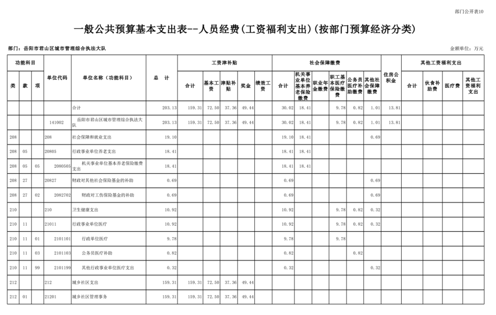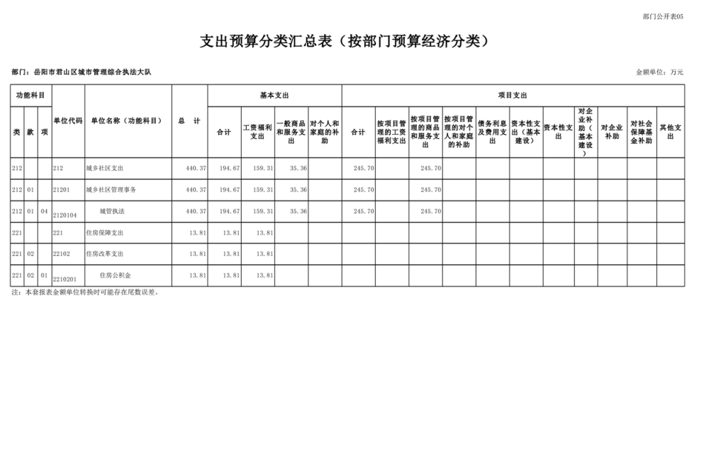 2023年君山区城市管理综合行政执法大队部门预算公开说明