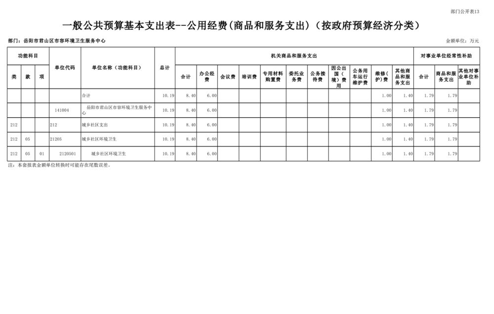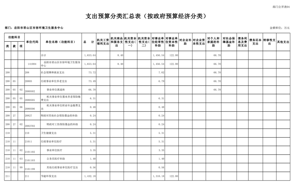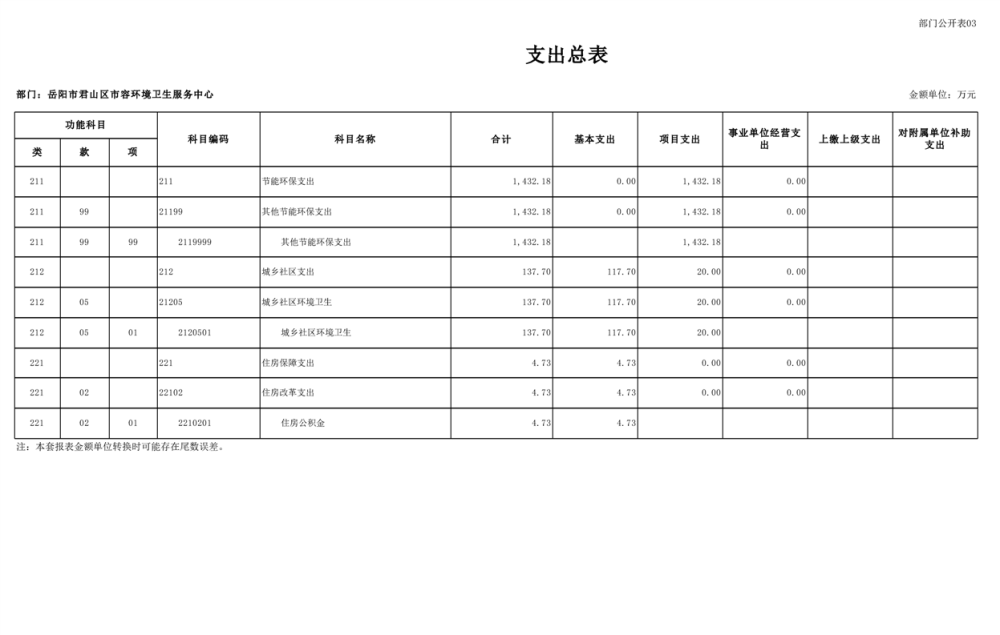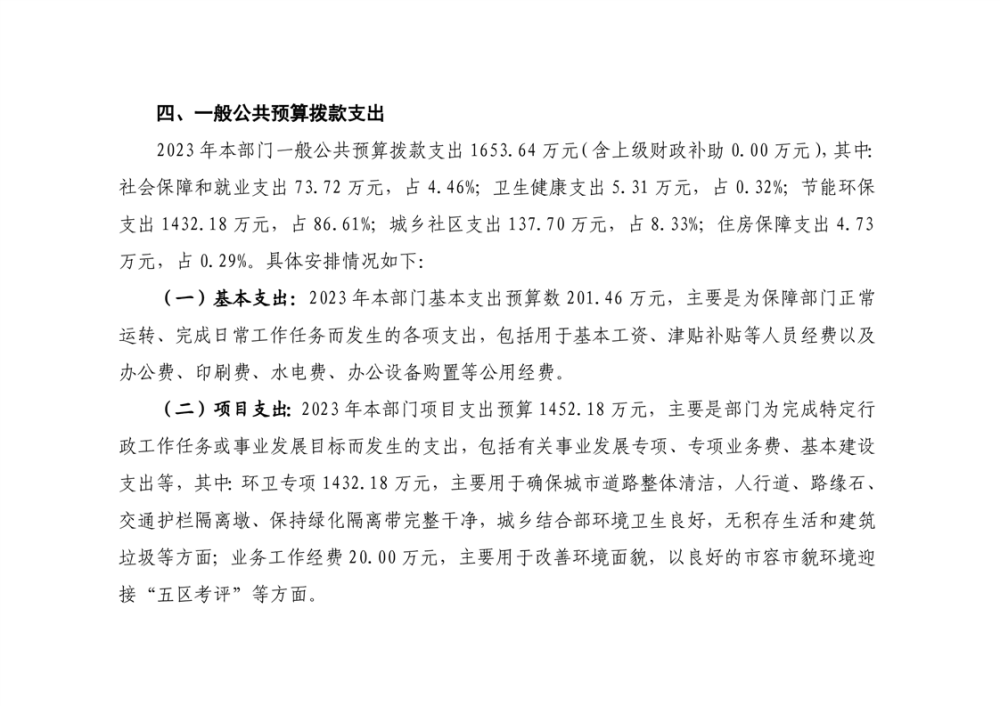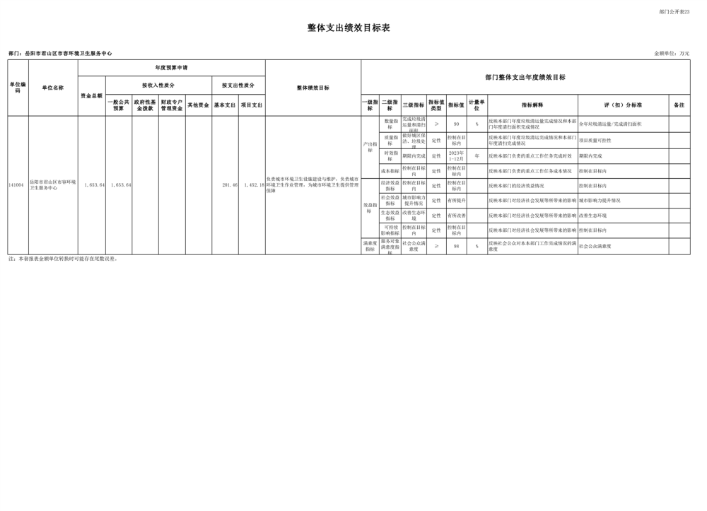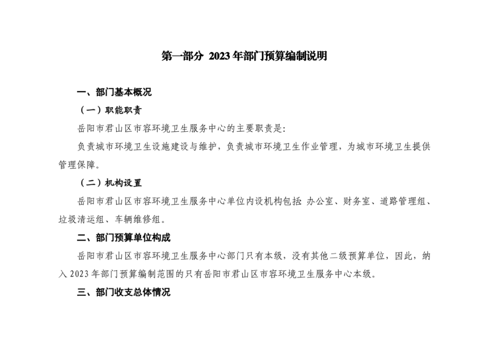 2023年君山区市容环境卫生服务中心部门预算公开说明