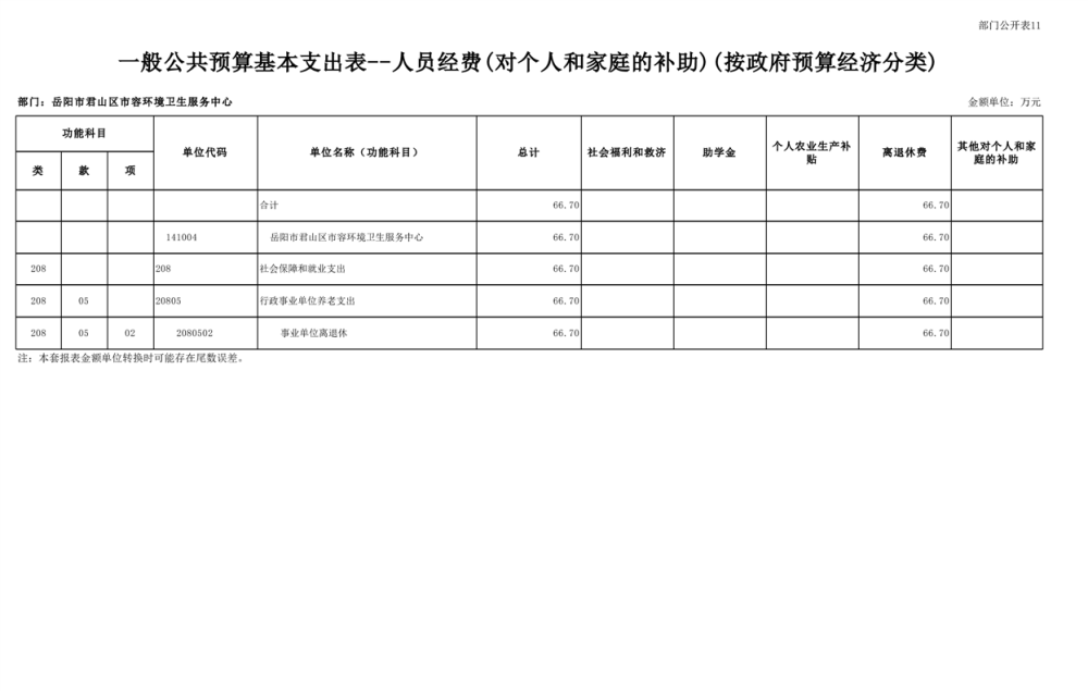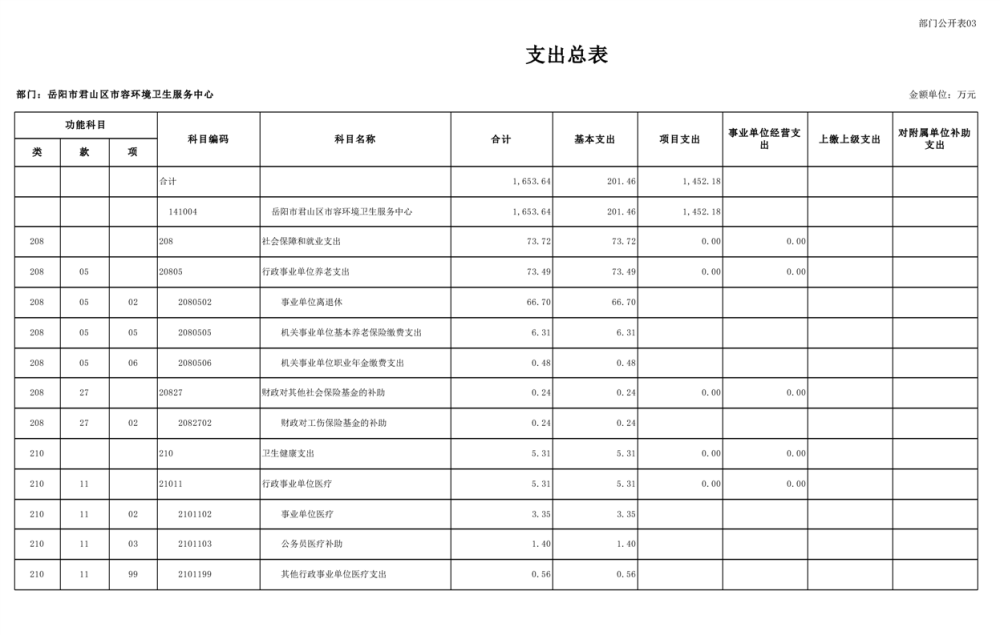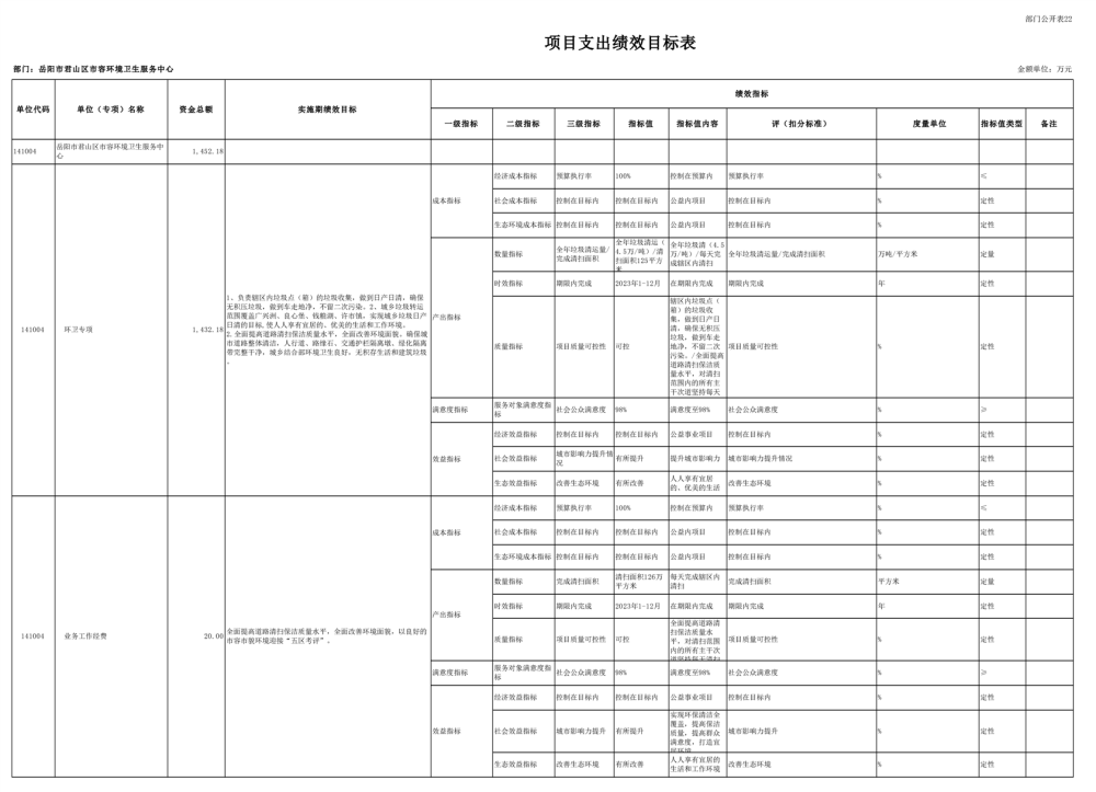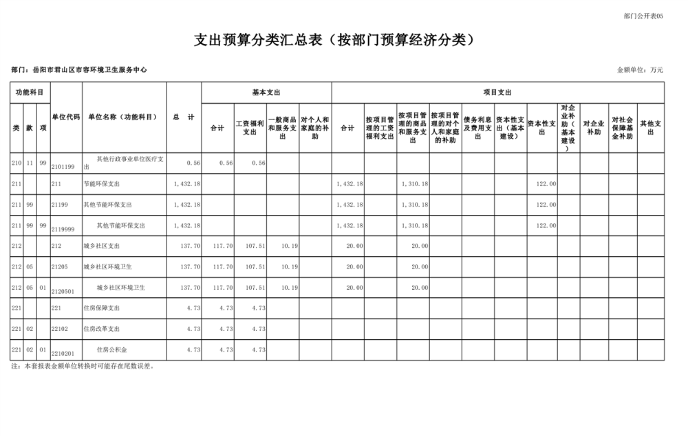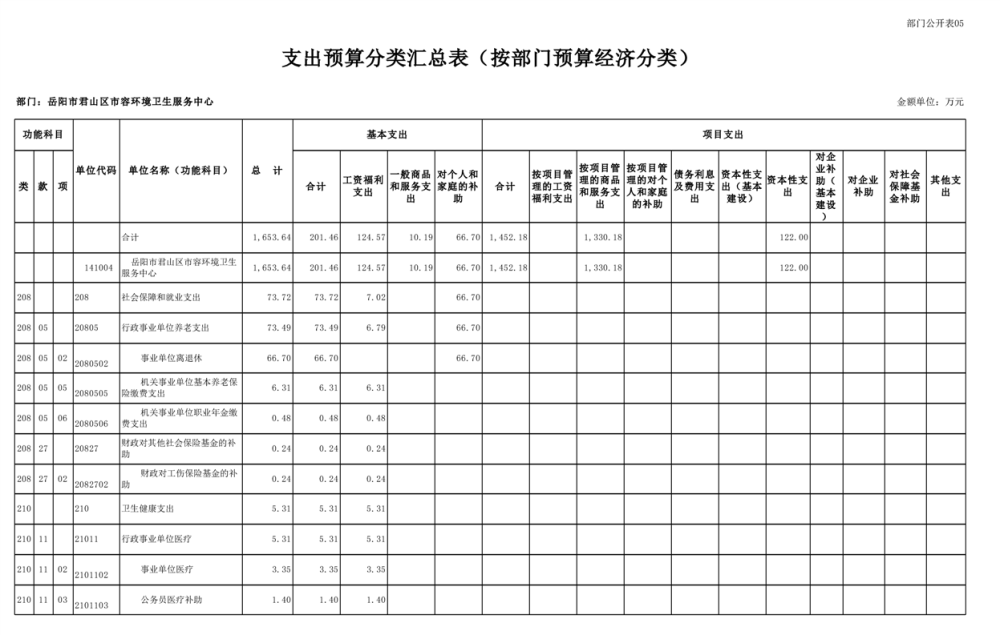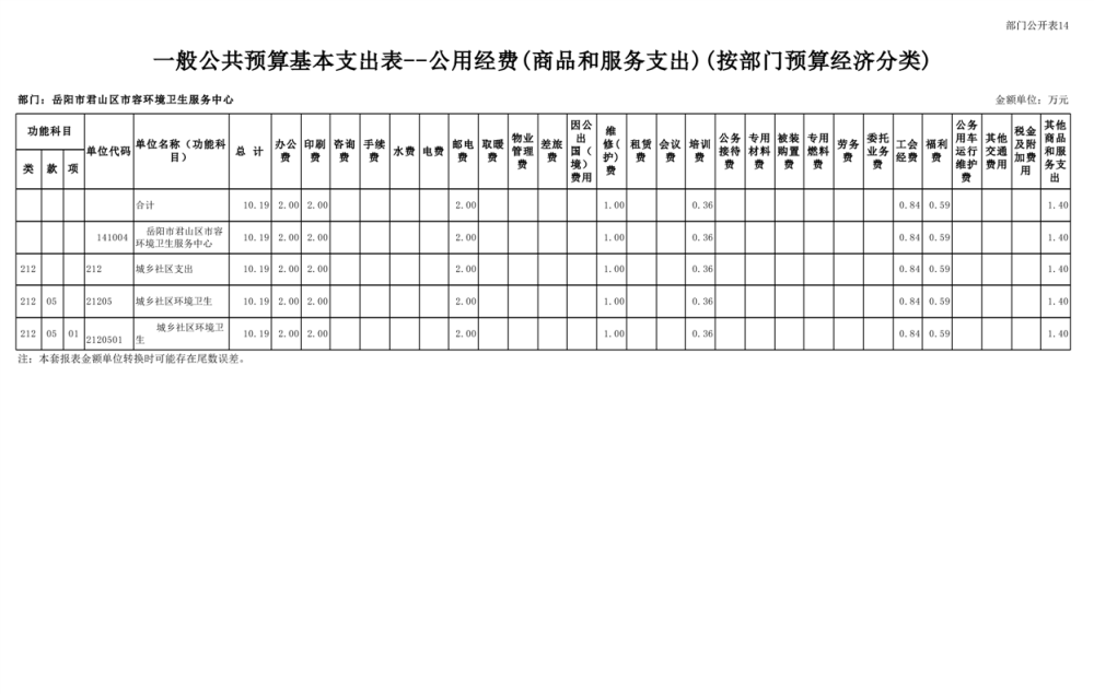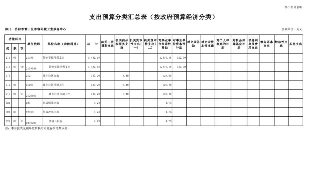 2023年君山区市容环境卫生服务中心部门预算公开说明