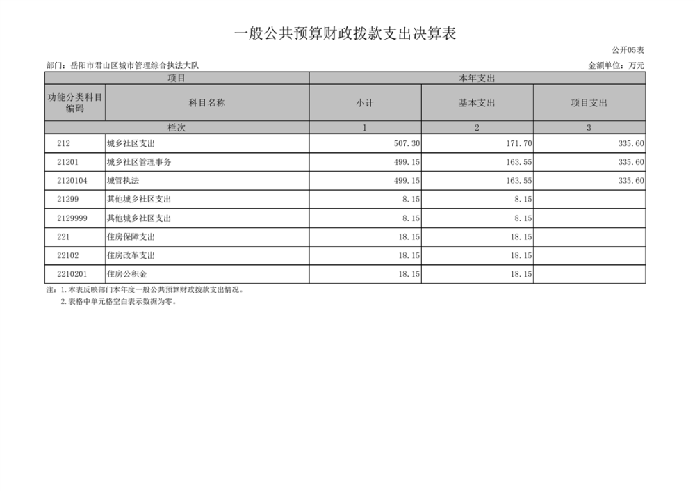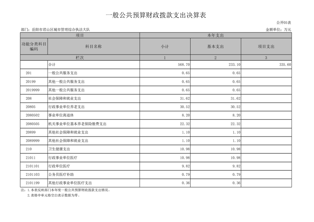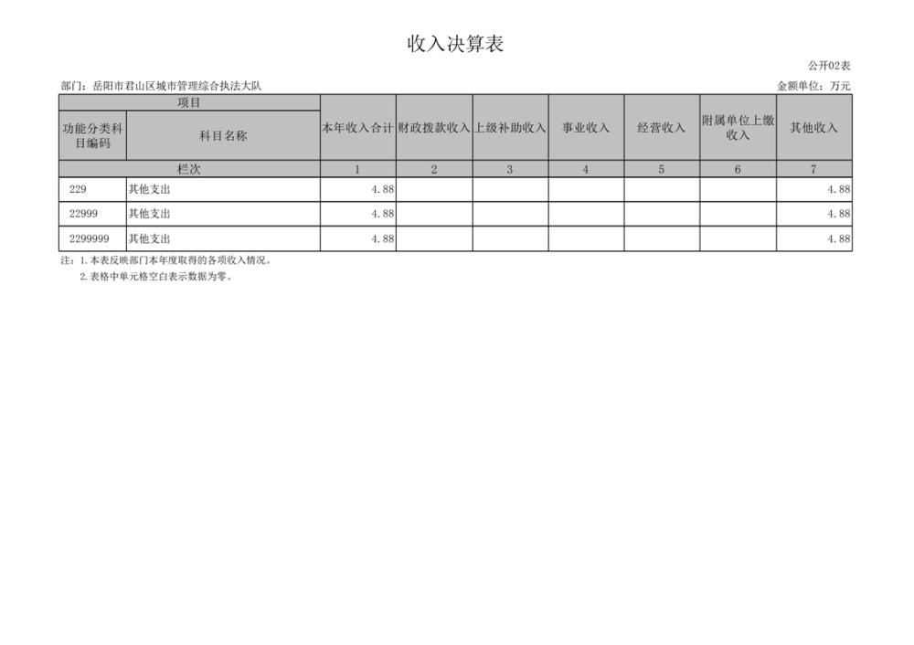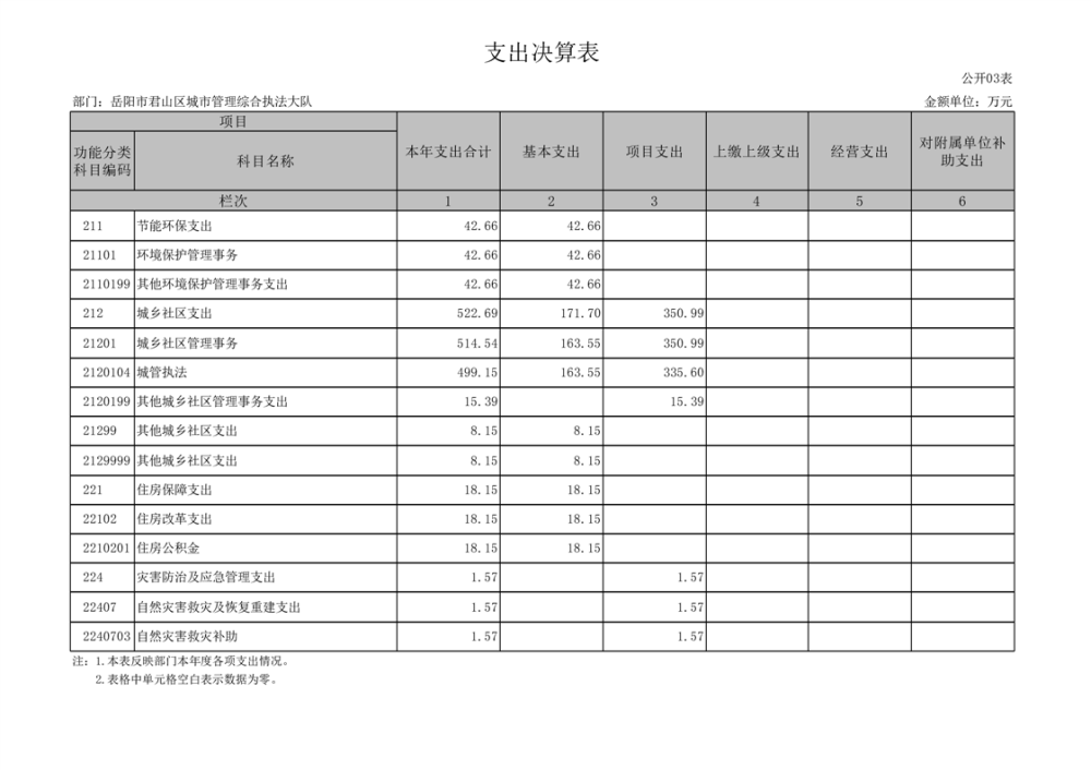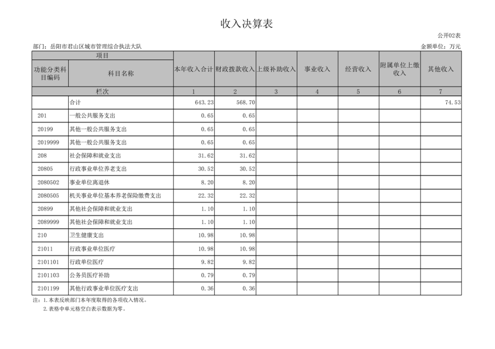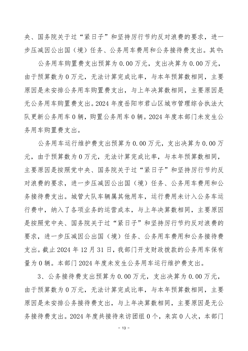 2024年度岳阳市君山区城市管理综合执法大队部门决算公开